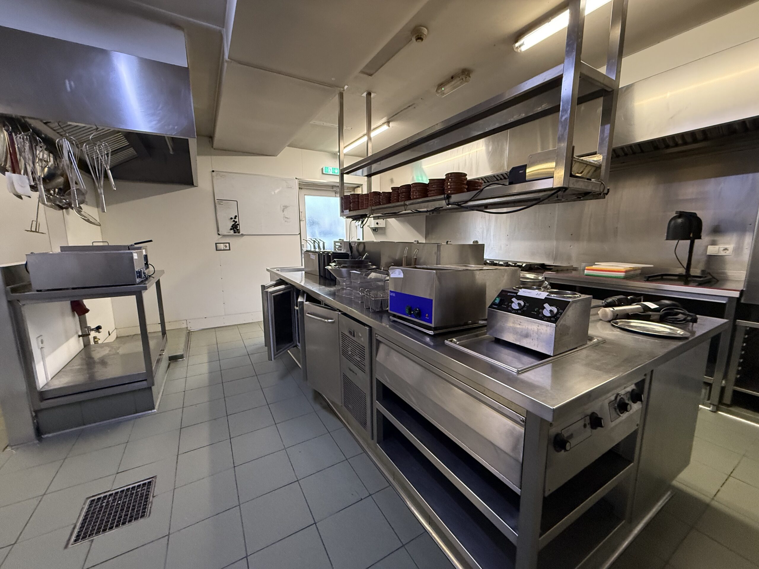 Buiten bevinden zich meerdere terrassen (met uitbreidingsmogelijkheden) en een fraai aangelegde tuin. Centraal in het pand ligt een ruime, nagenoeg complete professionele keuken met wasstraat. In de naastgelegen schuur zijn zeer ruime koel- en vriescellen aanwezig.