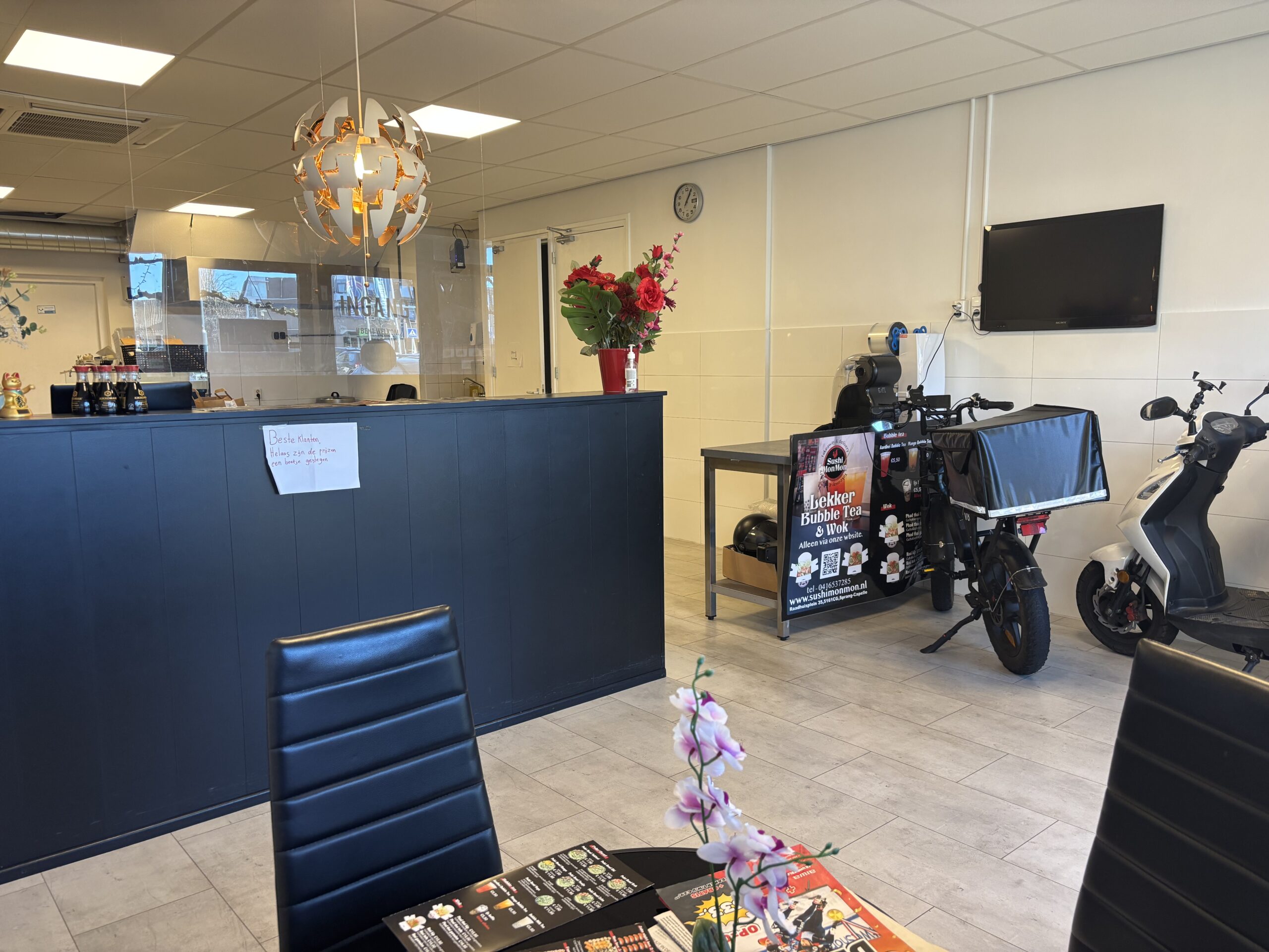 Na bijna vijf succesvolle jaren hebben de huidige eigenaren van Sushi MonMon besloten om een nieuwe uitdaging aan te gaan. Met veel plezier hebben zij op deze locatie een goedlopende sushi afhaal- en bezorgzaak opgebouwd met een vaste klantenkring.
