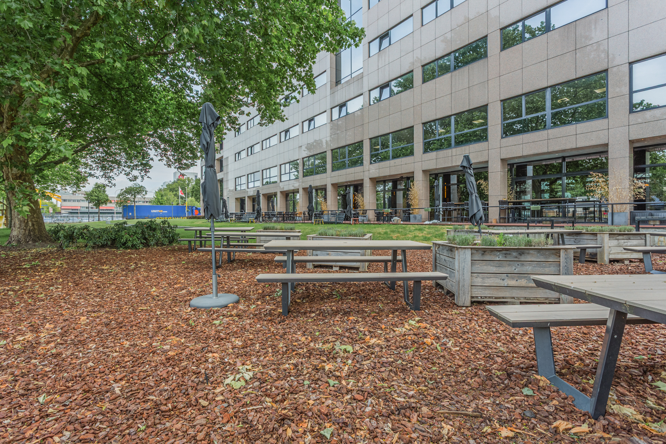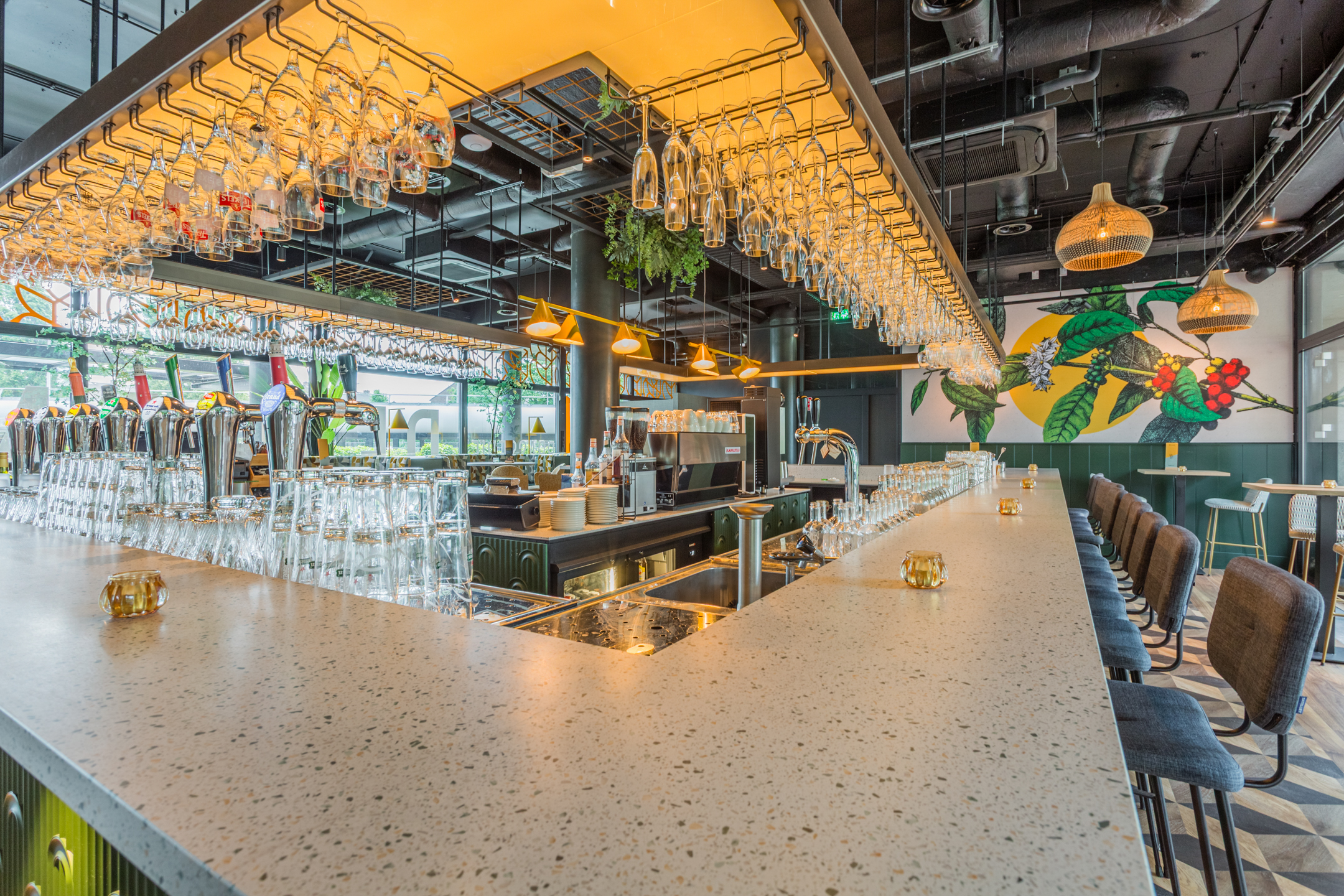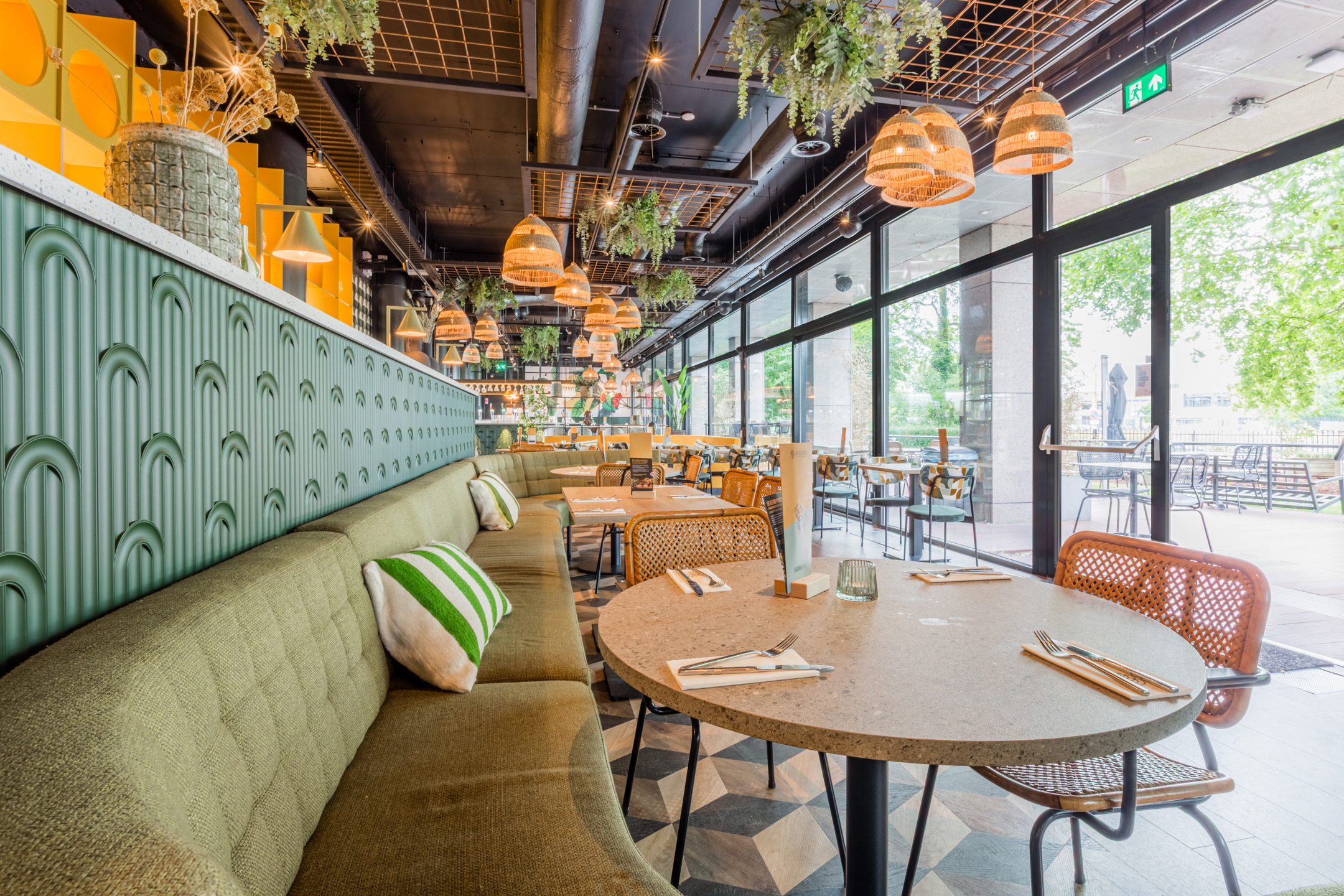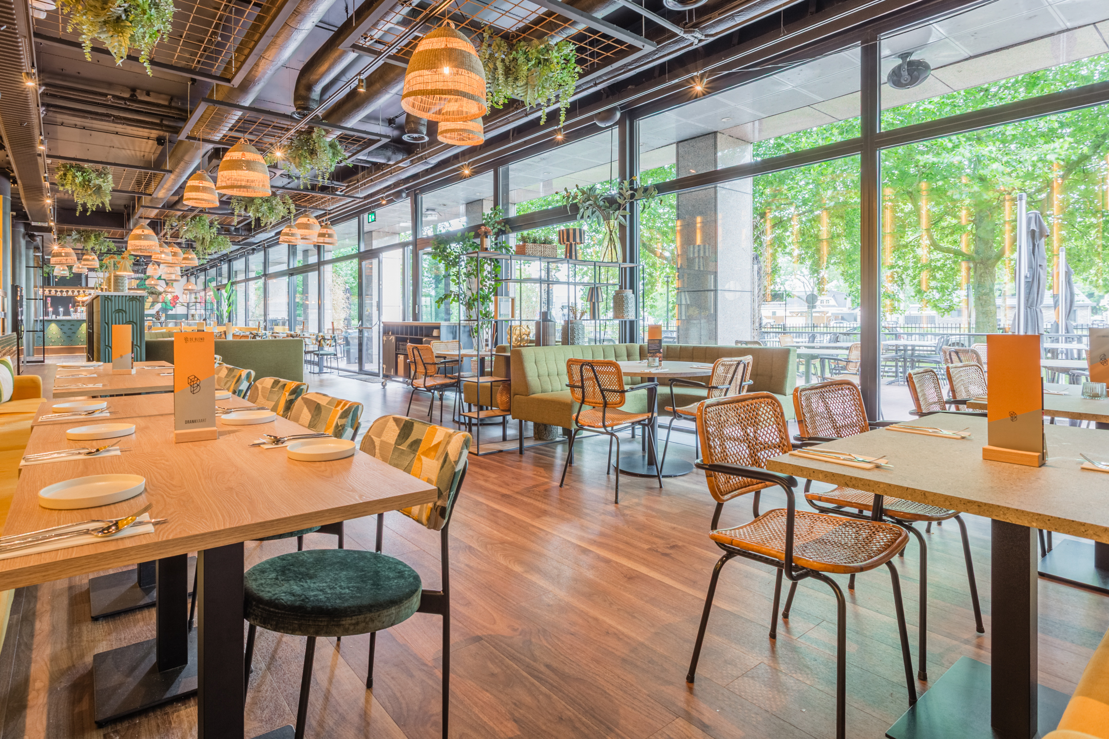 Bar Brasserie De Blend bevindt zich op de begane grond met terras en tuin van kantoor- en hotelcomplex, de Blend. Tevens beschikt de Blend over een verschillende vergaderruimtes en een fantastische skylounge op de vijfde verdieping. Bar Brasserie De Blend is gelegen in het voormalige hoofdkantoor van Jacob Douwe Egberts, hier vind je ook een uniek aparthotel met 70 ruime studio’s en suites en verschillende kantoorruimtes.