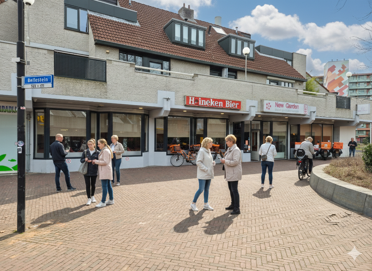 Winkelcentrum Bellestein is het kern-wijkwinkelcentrum van de wijk Veldhuizen, met een divers aanbod aan dagelijkse voorzieningen waaronder meerdere supermarkten (Lid en Jumbo), drogisterijen (o.a. Kruitvat), mode- en detailhandel en diverse horecagelegenheden. Het centrum biedt gratis parkeergelegenheid en is goed bereikbaar vanuit de omliggende woonwijken. Deze combinatie van voorzieningen en bereikbaarheid resulteert dagelijks in een stabiel bezoekersniveau, gedragen door de lokale verzorgingspopulatie van Ede en directe omgeving. Het woon-werkverkeer en de dagelijkse koopstromen versterken de potentiële klantenstroom naar horeca-exploitanten.