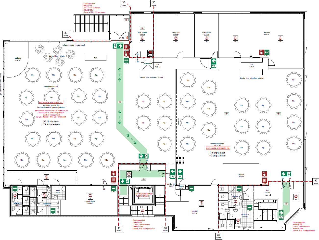 Staanplaatsen zalen eerste verdieping 350 + 200 staanplaatsen.
