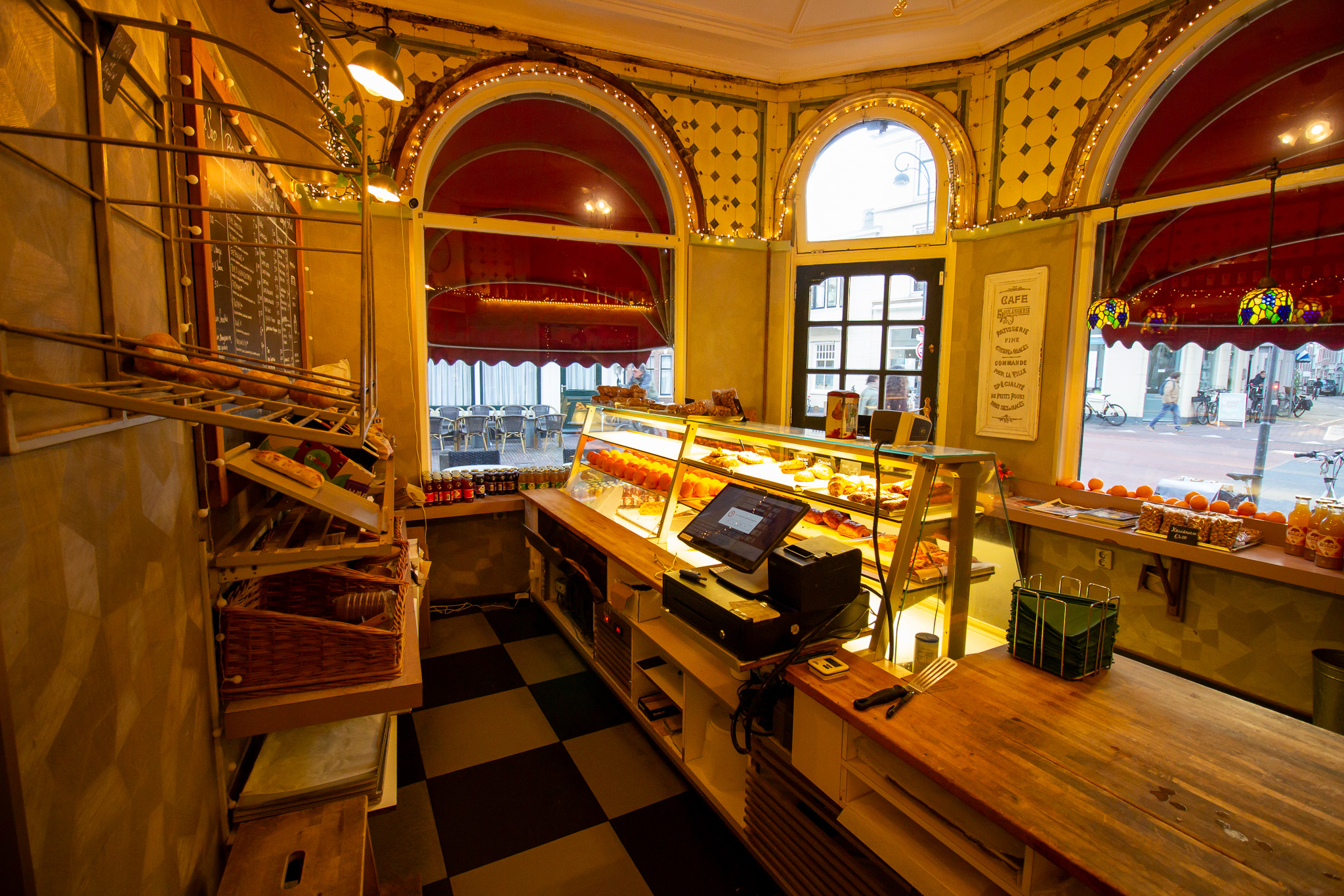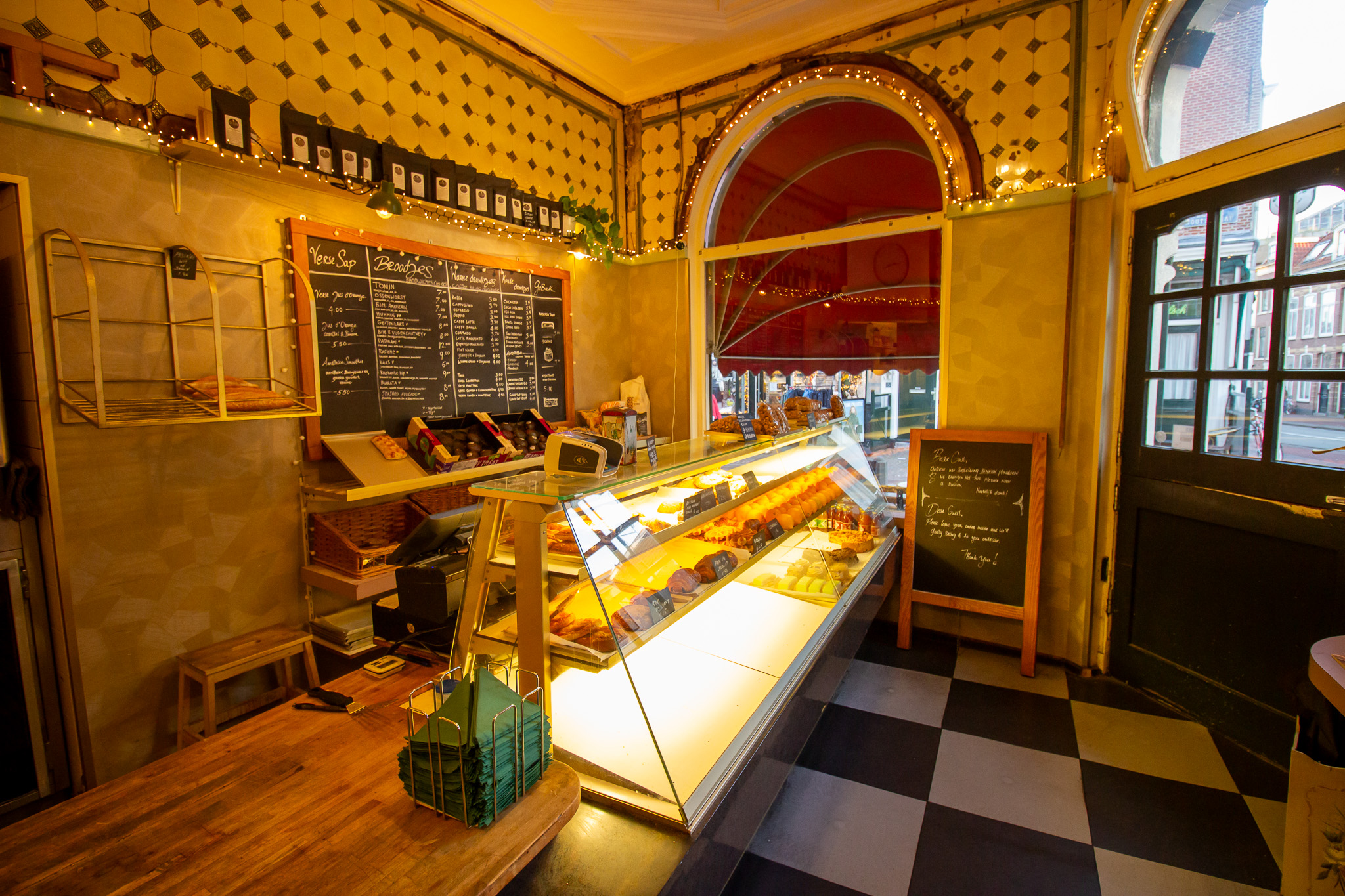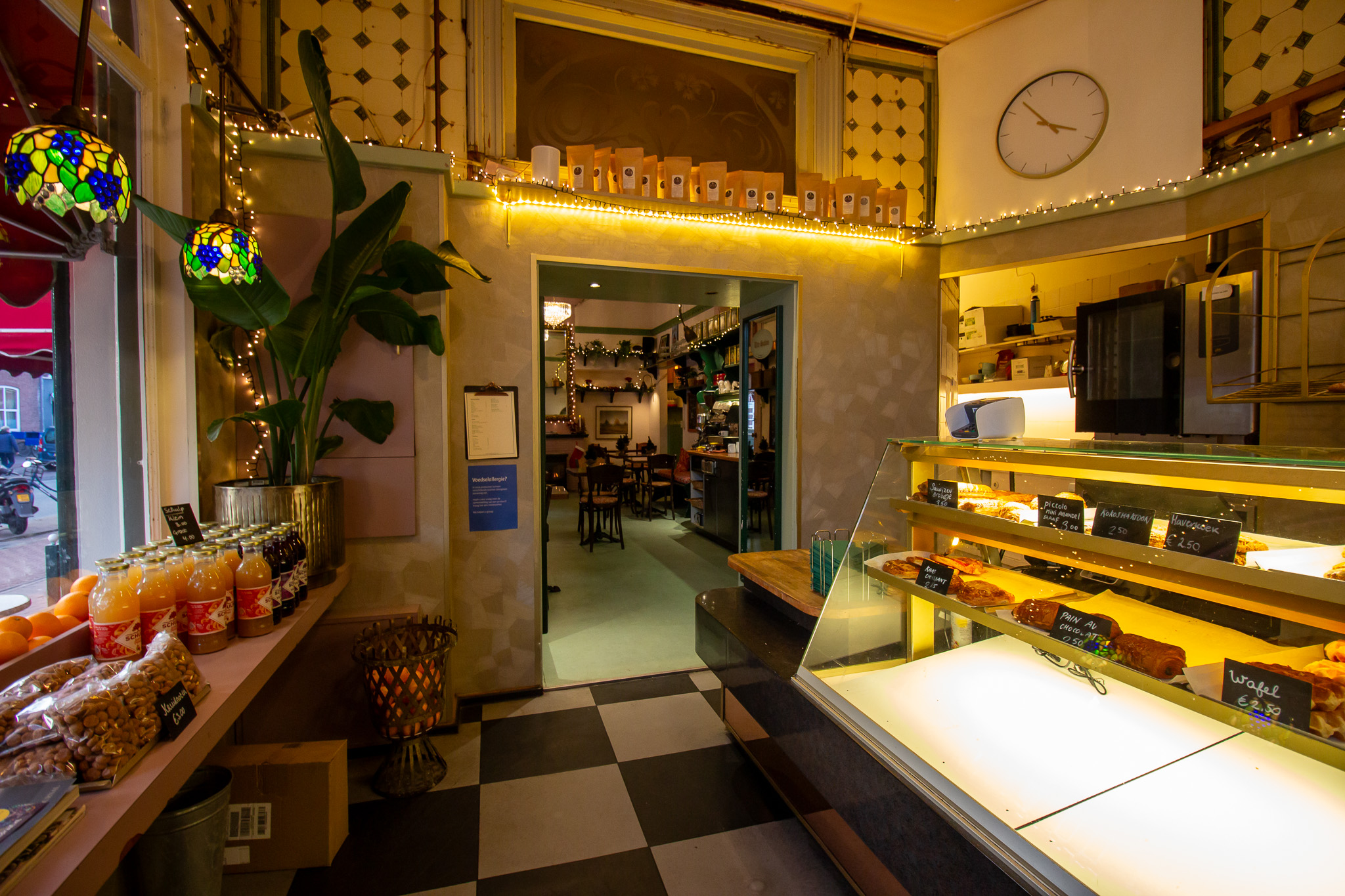 Achter de vitrine van Broodmand is de gang zichtbaar die naar de voorbereidingsruimte achterin leidt, waar zich tevens de koel- en opslagfaciliteiten bevinden. Zowel binnen als buiten straalt Broodmand de sfeer uit van een echte traditionele, warme lunchroom. De inrichting en het interieur roepen een gevoel van nostalgie en gezelligheid op, passend bij de lange historie van Broodmand.
