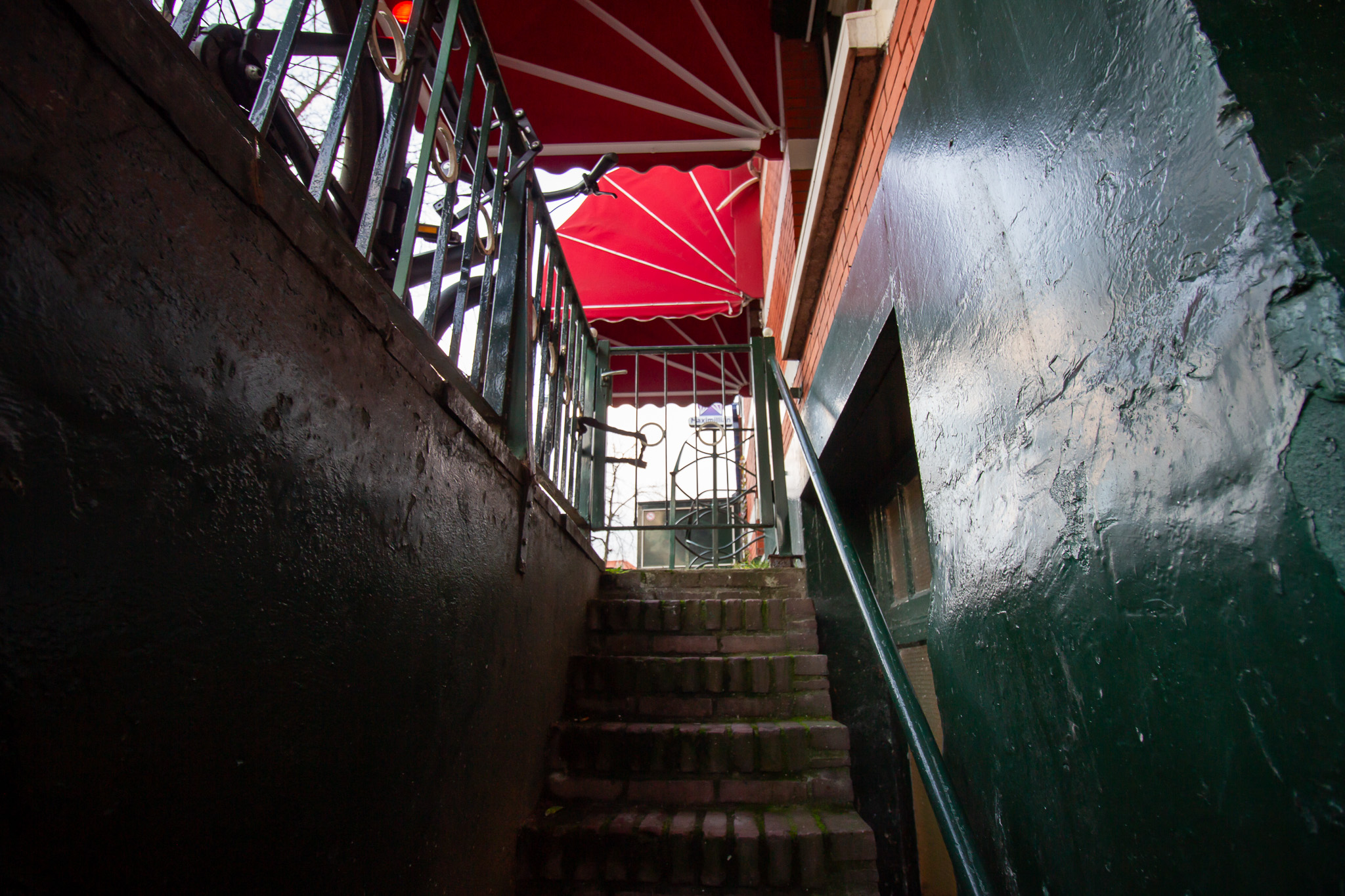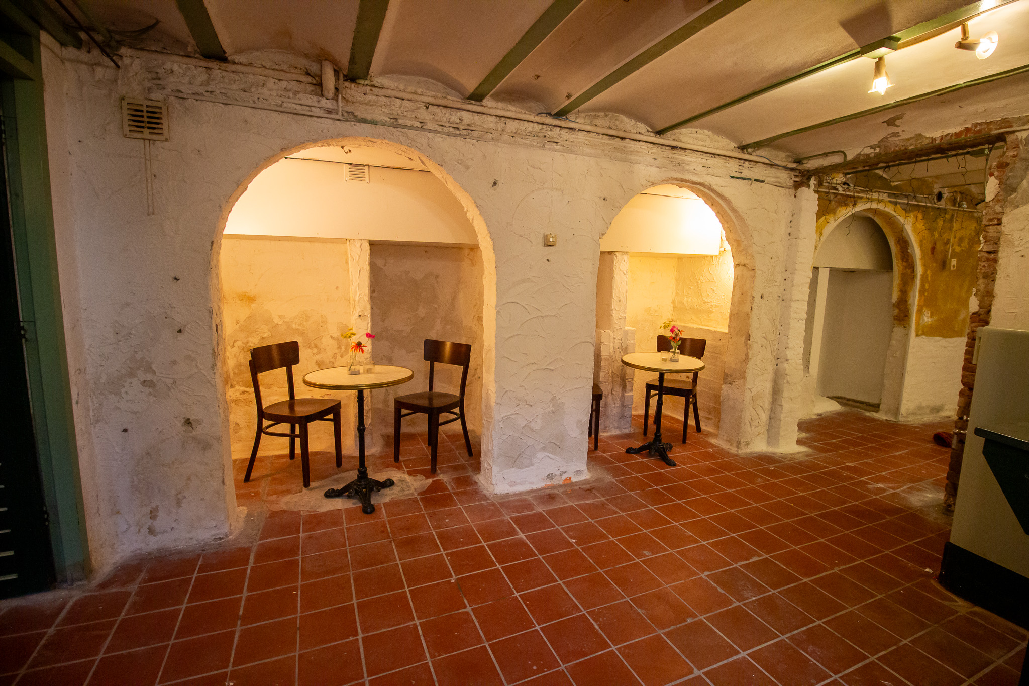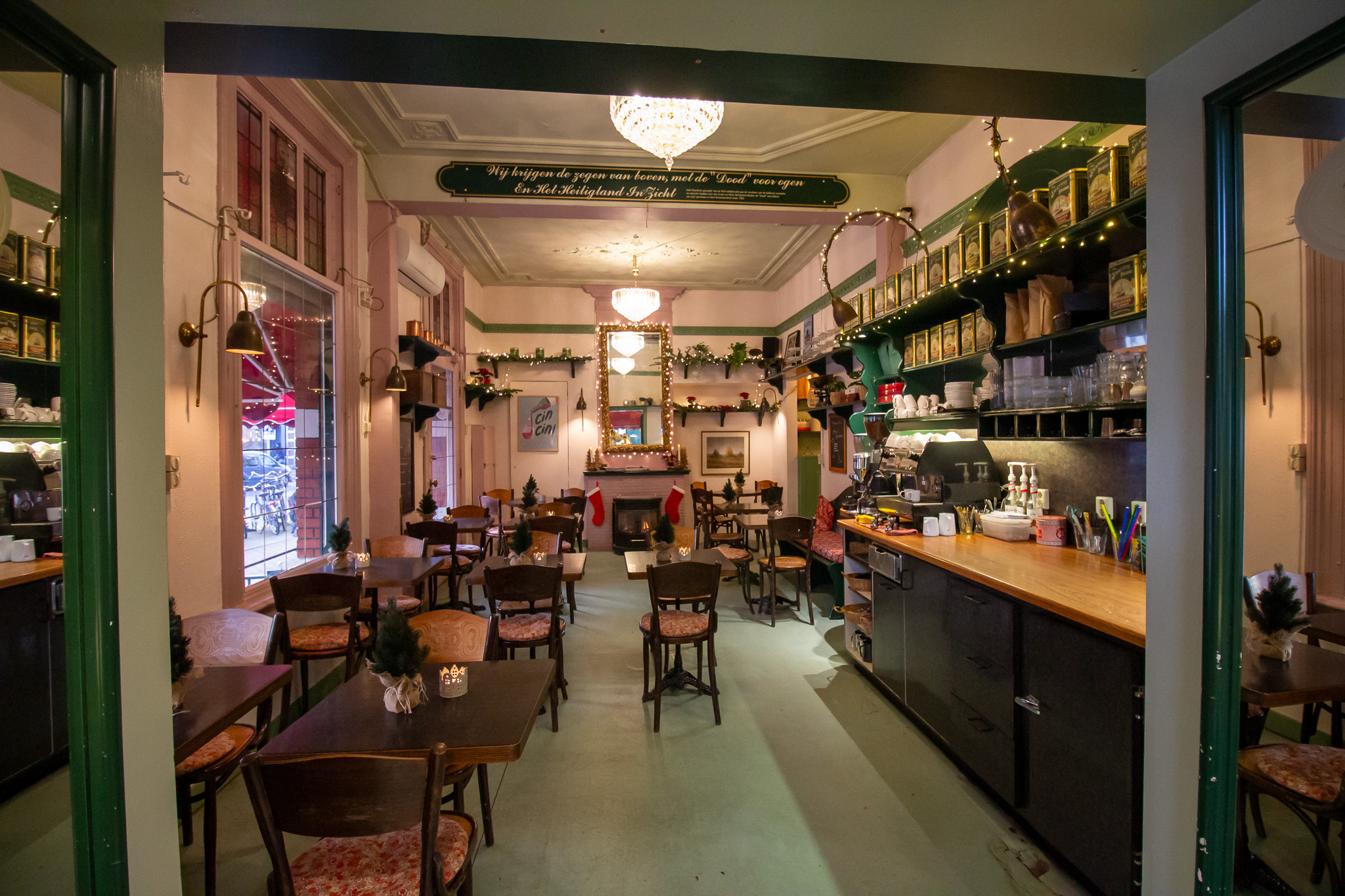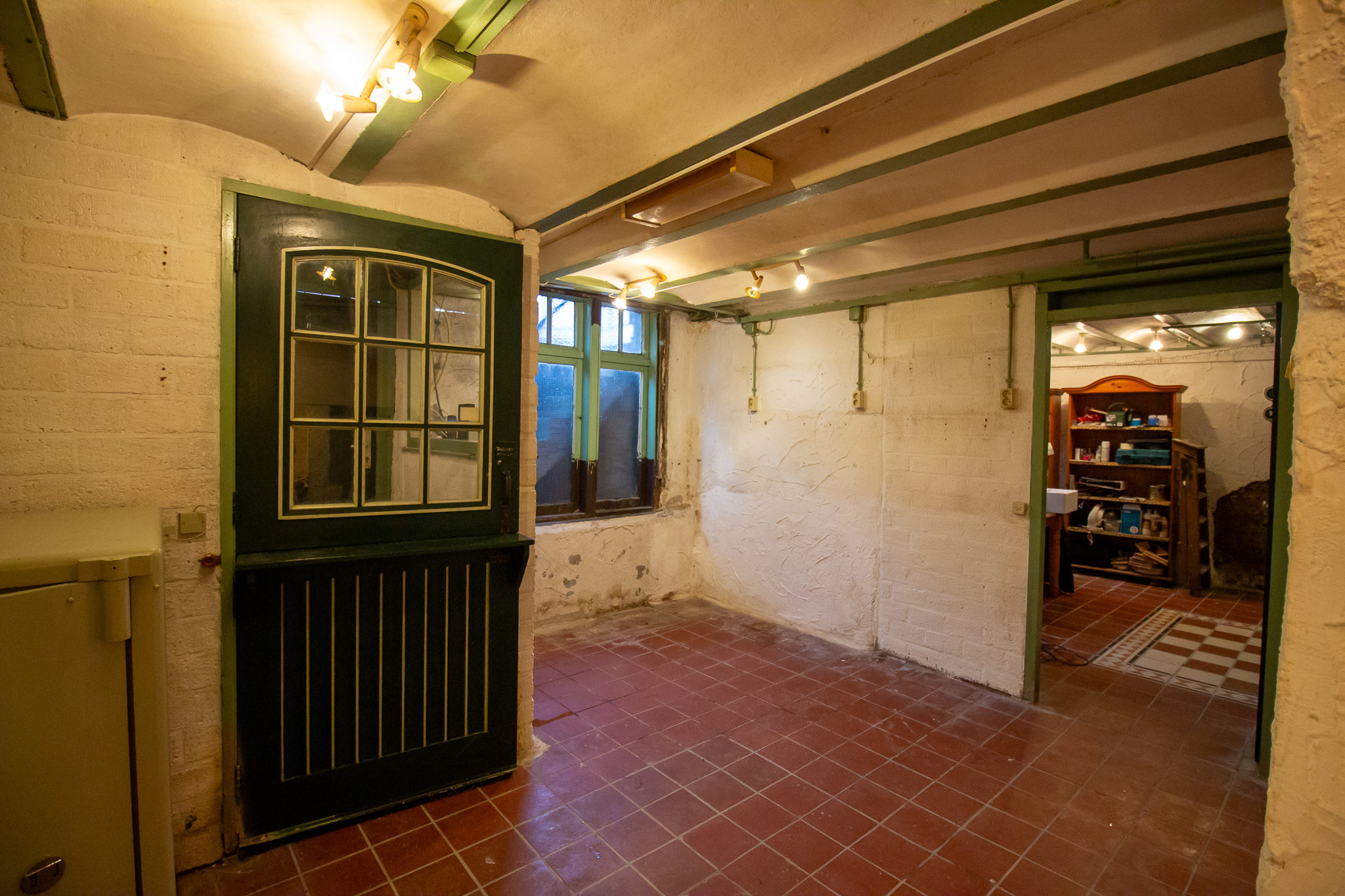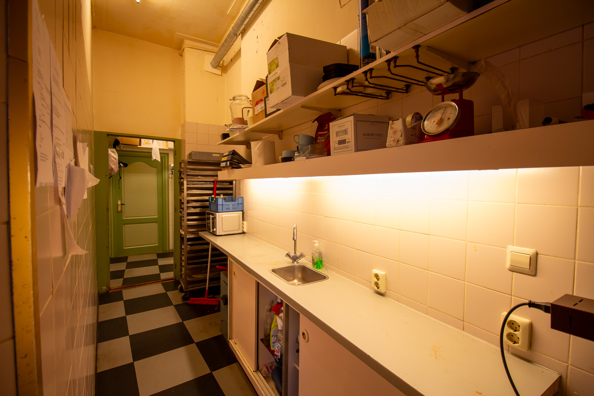 In de lunchroom bevindt zich rechts de stijlvolle werkbank waar de verse koffie, broodjes en andere specialiteiten worden bereid. Aan de achterzijde bevindt zich rechts de nette, gescheiden toiletgroep. Vlak daarvoor staat een trap die toegang geeft tot het ruime souterrain, dat momenteel in gebruik is als opslagruimte, maar dankzij de oppervlakte ook andere functionele mogelijkheden biedt.