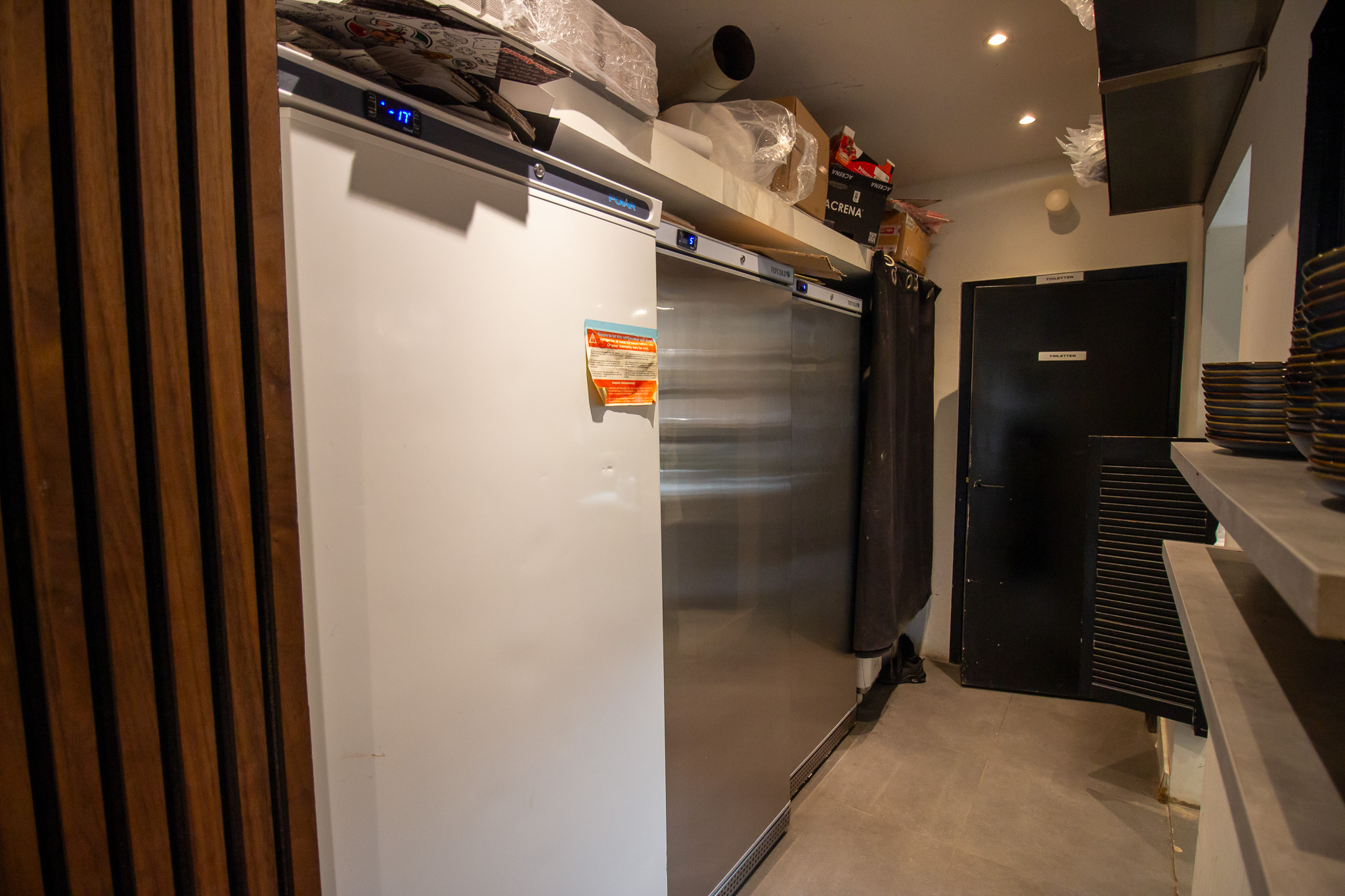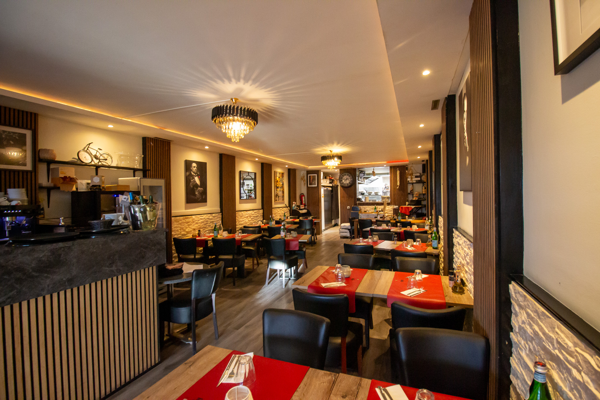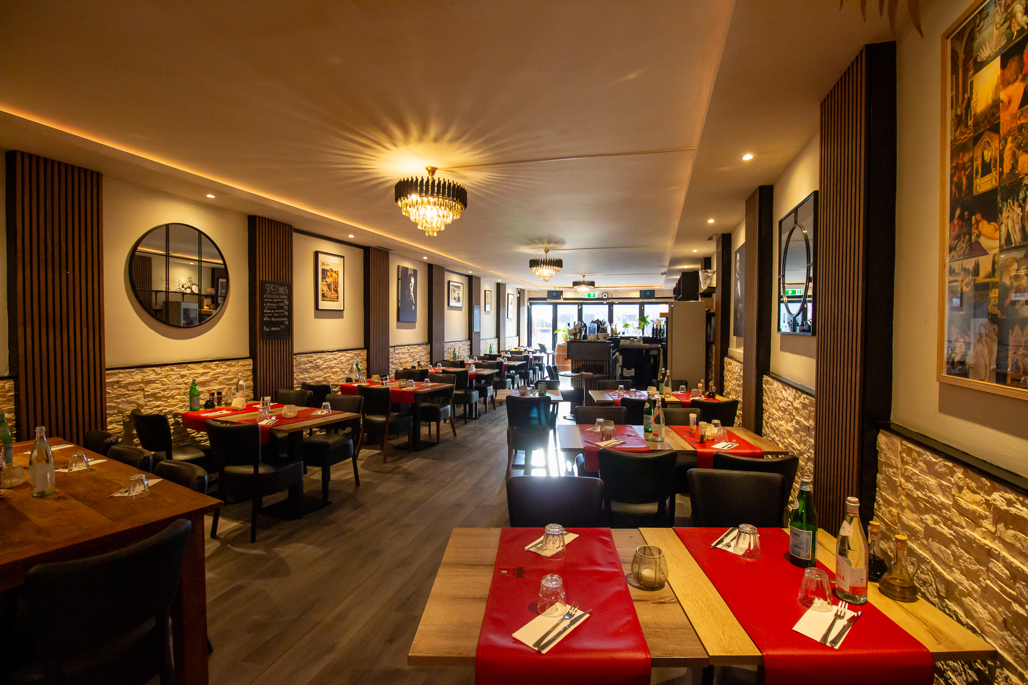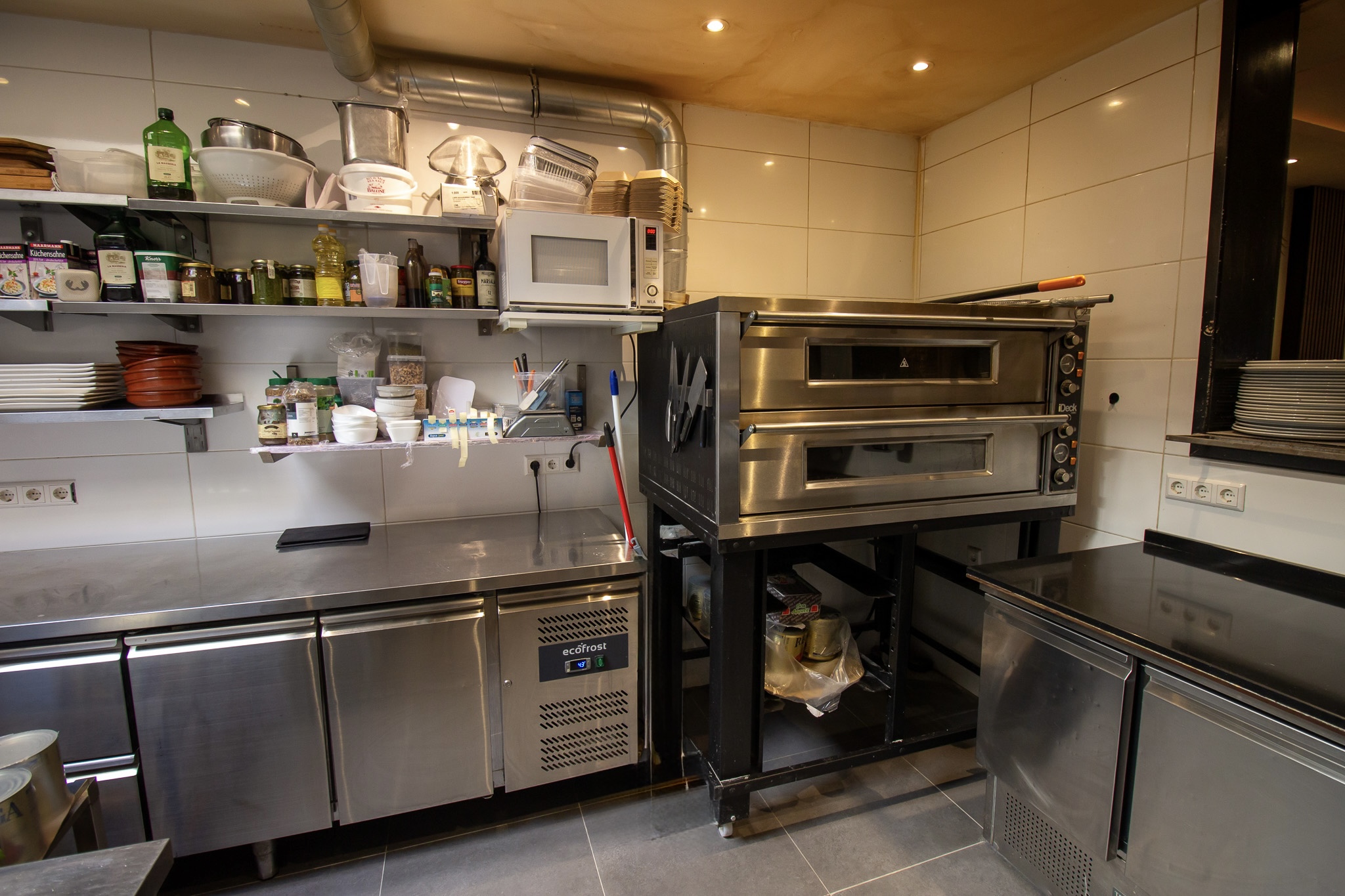 De rechterzijde van het restaurant is ingericht met voornamelijk vierpersoons tafels die eenvoudig gecombineerd kunnen worden. In het midden bevinden zich extra zitplaatsen. Achterin bevindt zich de keuken, die in directe verbinding staat met het restaurant voor een efficiënte workflow. De gescheiden dames- en herentoiletten en extra opslagruimte bevinden zich eveneens aan de achterzijde.