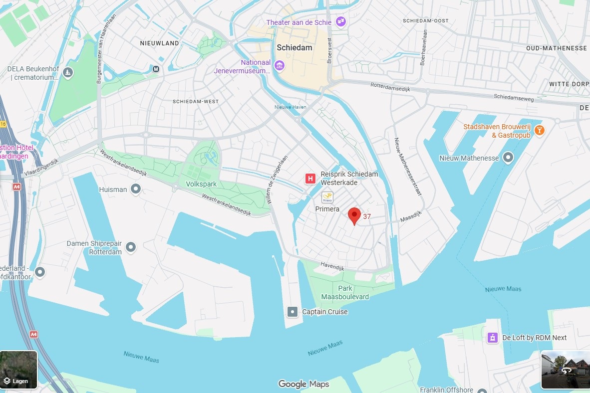 Schiedam is een stad aan de Waterweg tussen Rotterdam en Vlaardingen. Het heeft ca 80.000 inwoners. De stad is wereldwijd bekend om haar jeneverproductie, de oude binnenstad met historische havens (in andere Hollandse steden zouden die ‘grachten’ heten) en de hoogste windmolens ter wereld.