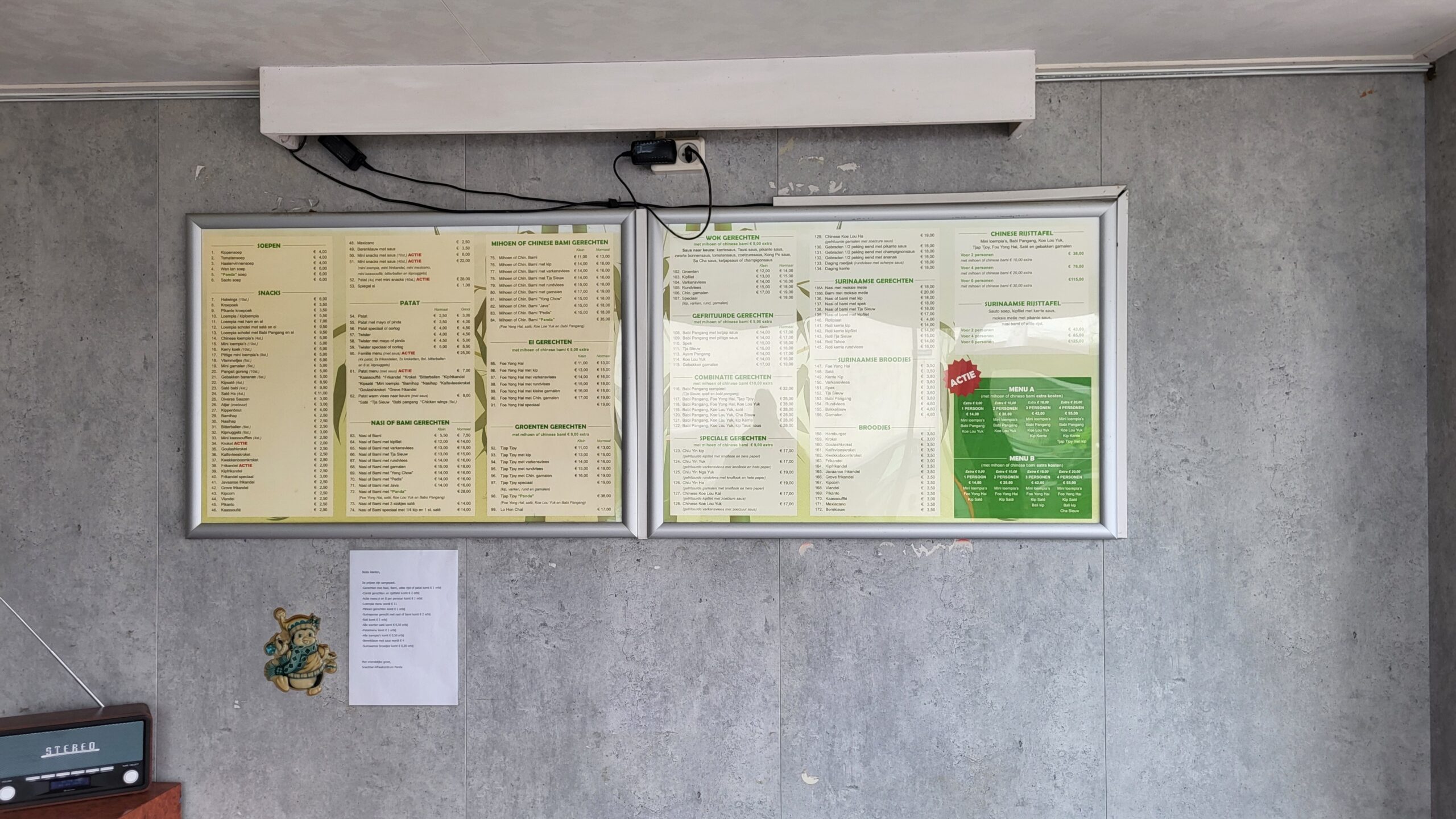 De verkopers runnen hier al vele jaren hun afhaal / bezorg bedrijf en hebben een trouwe schare aan vaste klanten opgebouwd. Het huidige assortiment is zeer uitgebreid: Friet • Snackbar • Chinees • Surinaams • Aziatisch • Hamburgers • Soep •