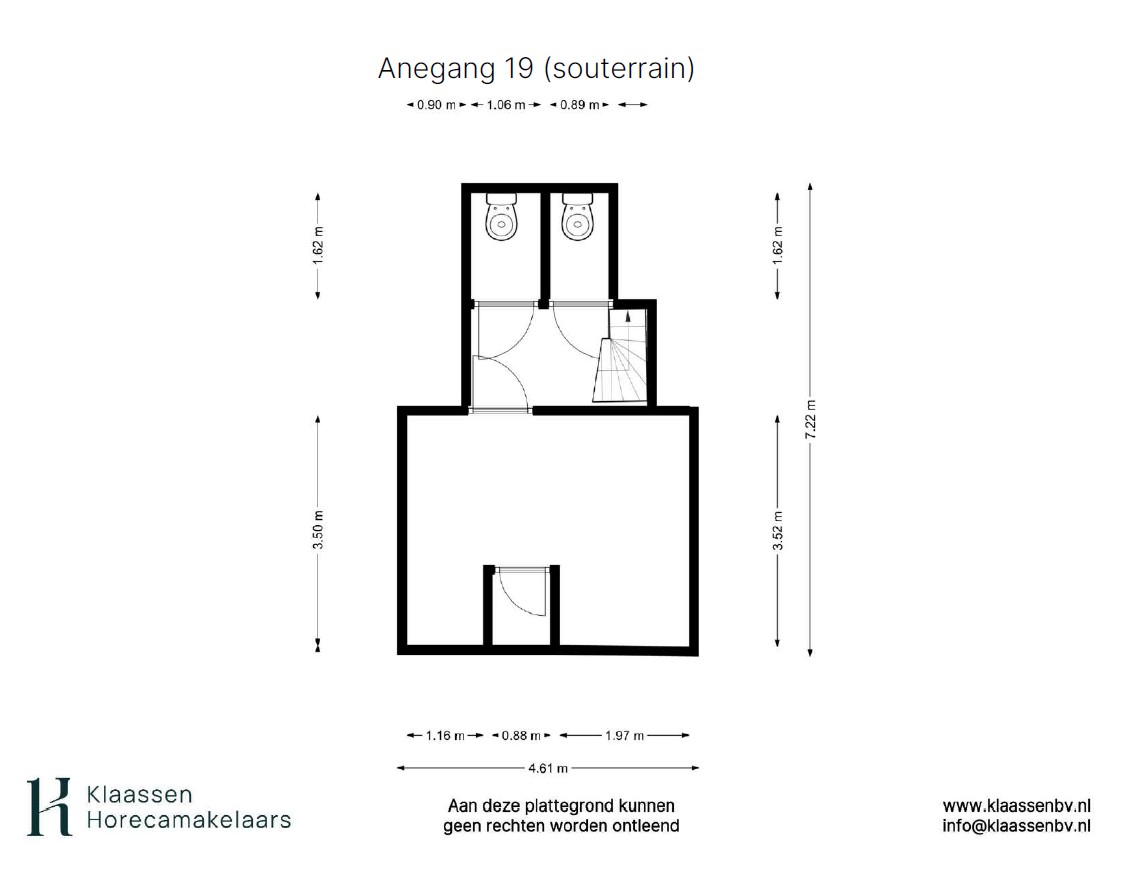 Net voor de bar bevindt zich een trap naar de toiletgroepen en een opslagruimte in het souterrain. De ruime opslagruimte biedt de mogelijkheid om grotere voorraden aan te houden. Ook is er een personeelstoilet.
