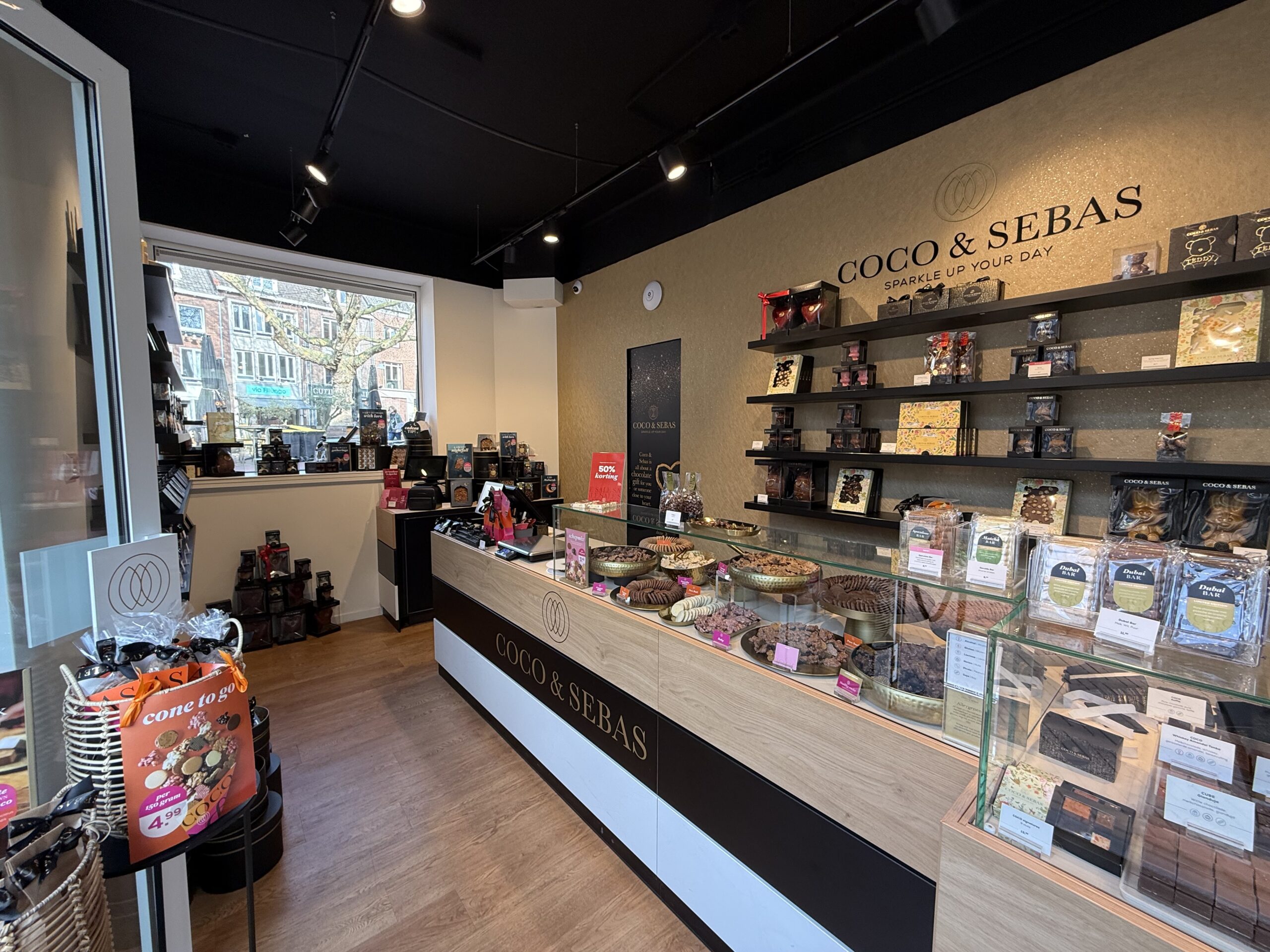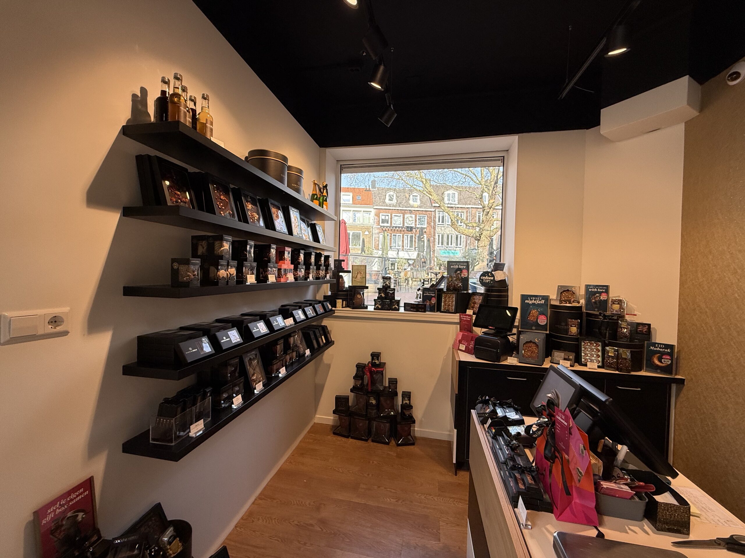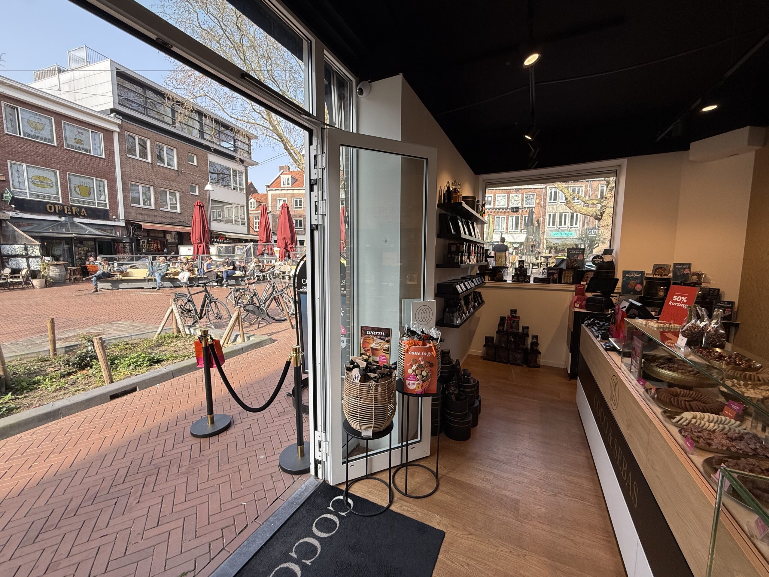 De verkoopruimte onderscheidt zich door de karakteristieke, openslaande pui aan de voorzijd