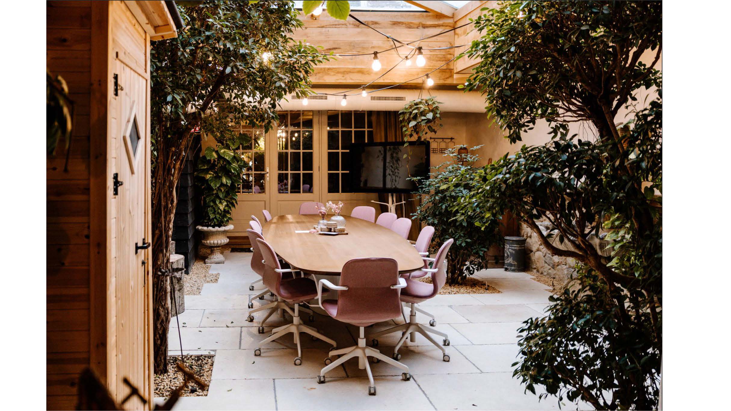De begane grond bestaat uit meerdere ruimtes, die onderling goed op elkaar zijn afgestemd: een grote bar met barstoelen en diverse knusse zitjes, afgescheiden vergader units, een grote tuinkamer en een “mancave”, alles zeer kleurrijk ingericht met mooie decoratie aan de wanden. In het souterrain is nog een ruime hal waarin zich ook de toiletten en opslag bevinden en nog een extra bedrijfsruimte van ca 18 m2. Momenteel is er geen (ingerichte) keuken, deze kan wel eenvoudig gerealiseerd worden.