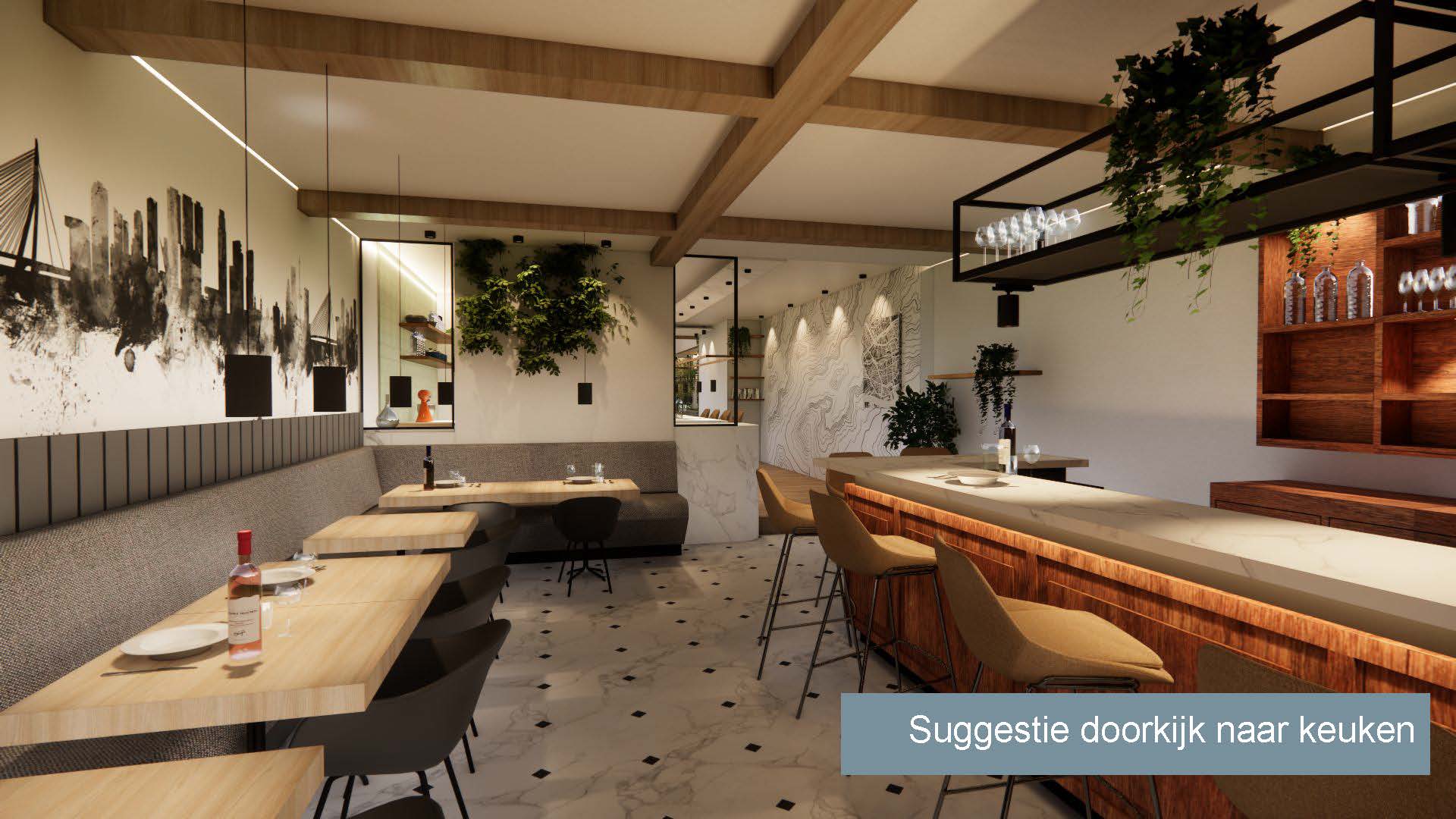 Casco bedrijfsruimte met volledige inrichting en huurdersbelang voor exploitatie van een horecabedrijf, m.u.v. keuken faciliteiten (die wel gerealiseerd kunnen worden, zie als voorbeeld de suggesties in de foto’s)
