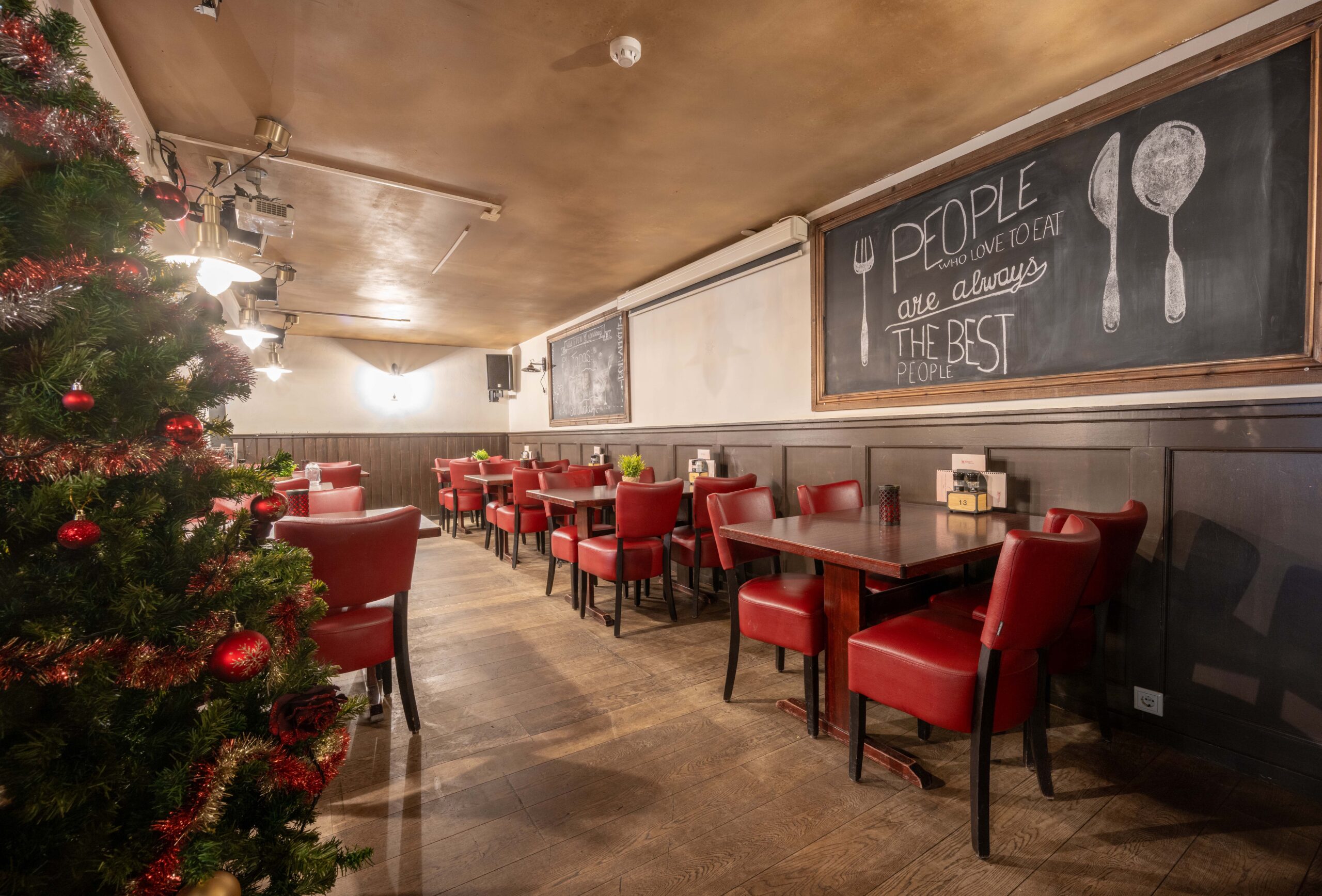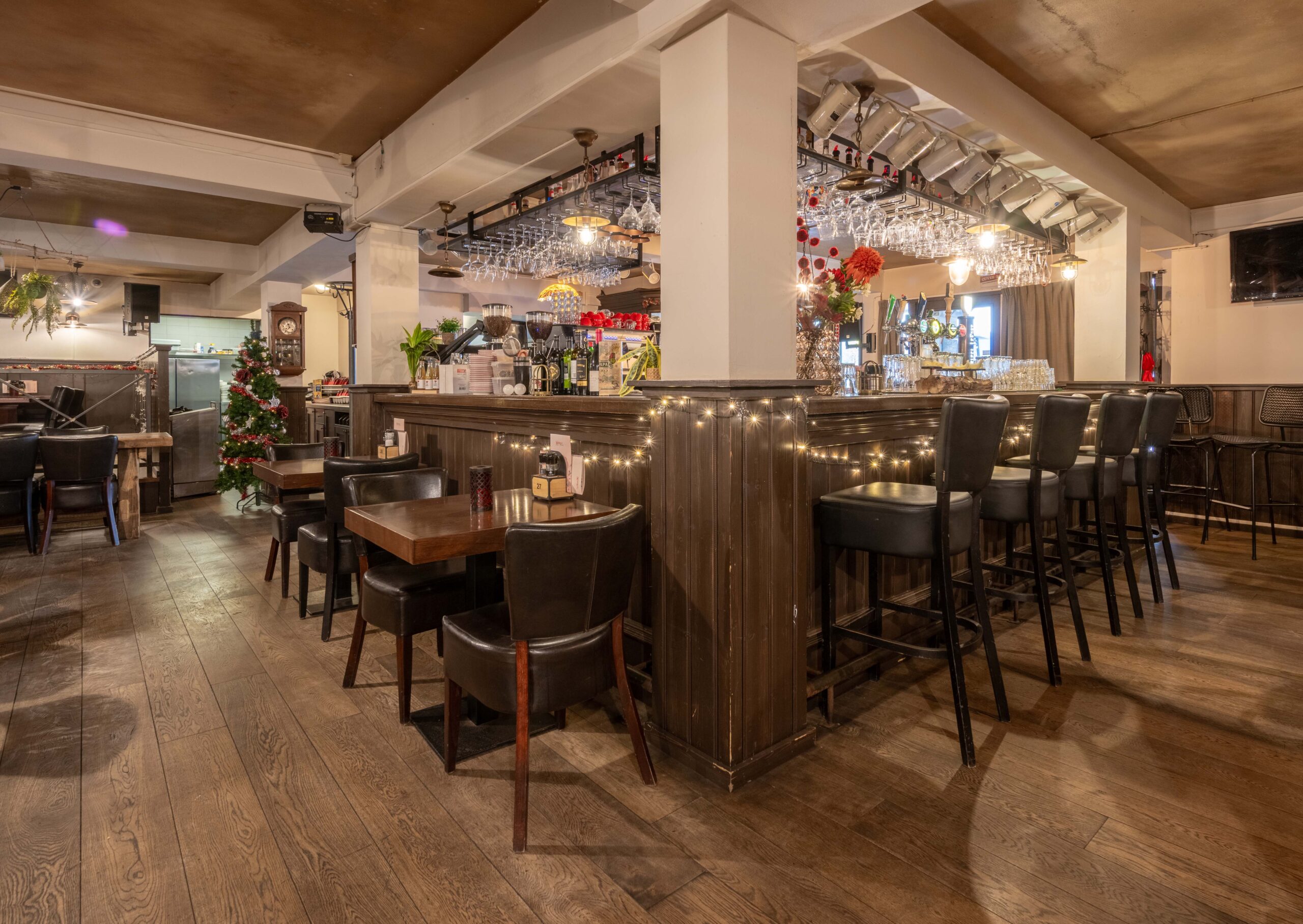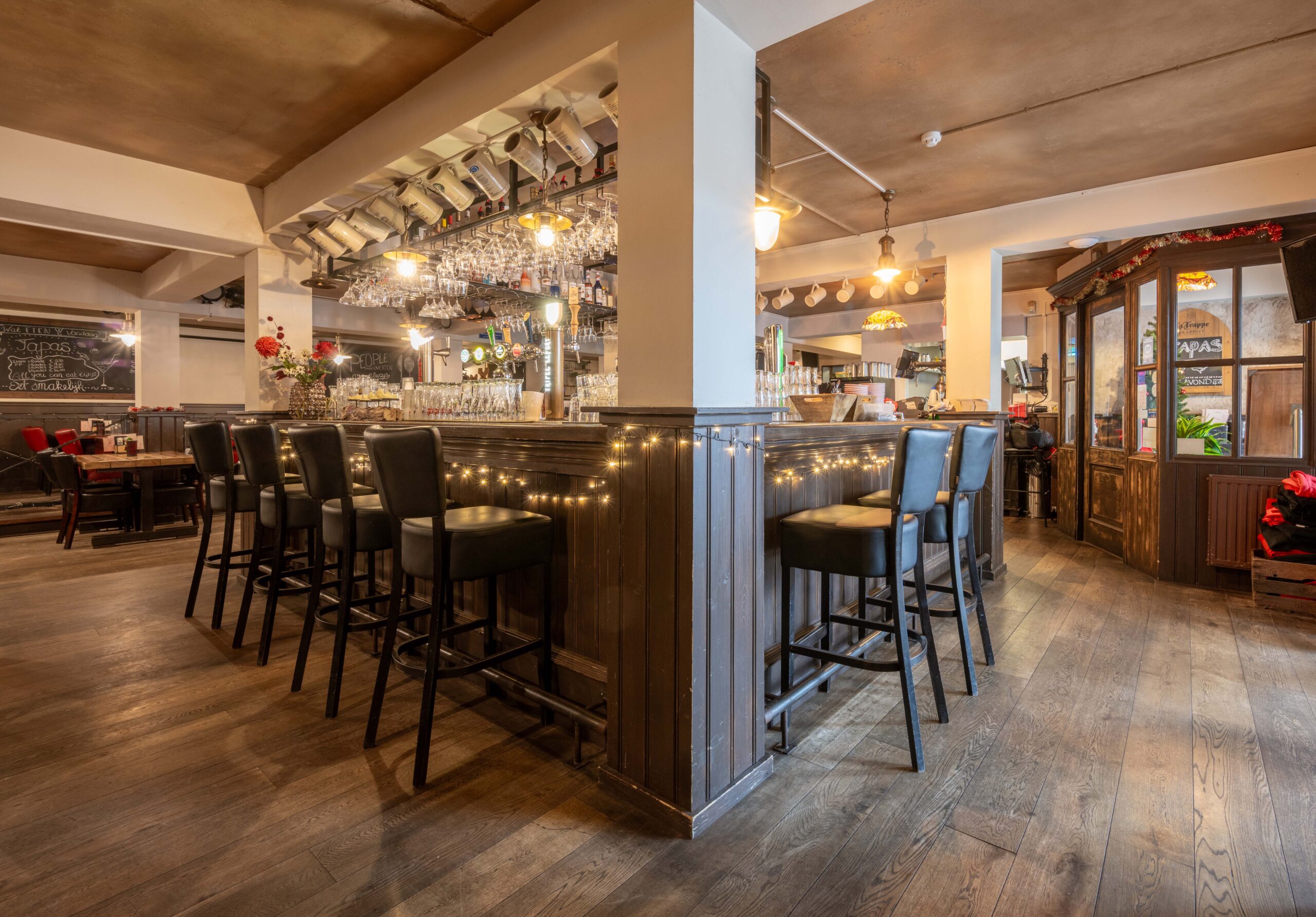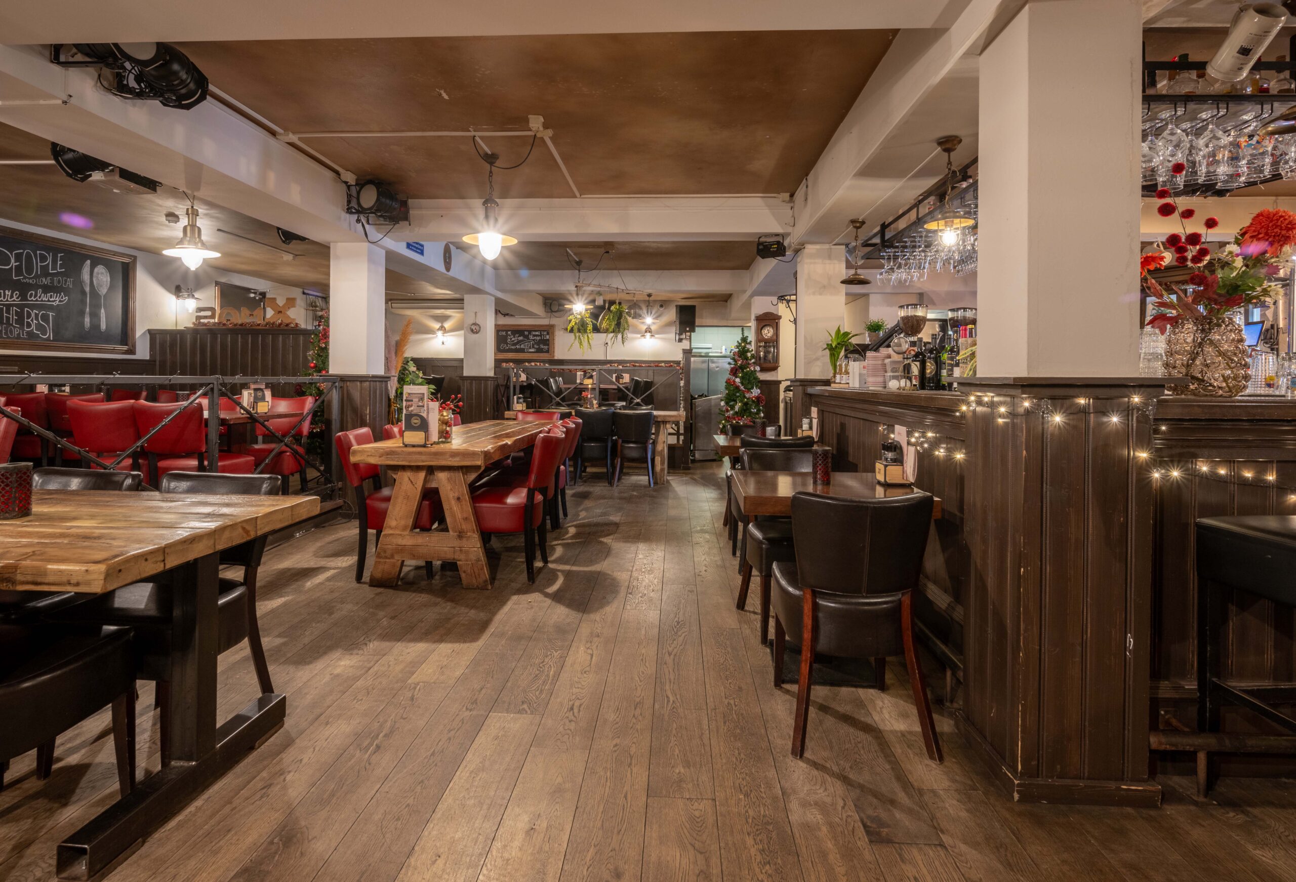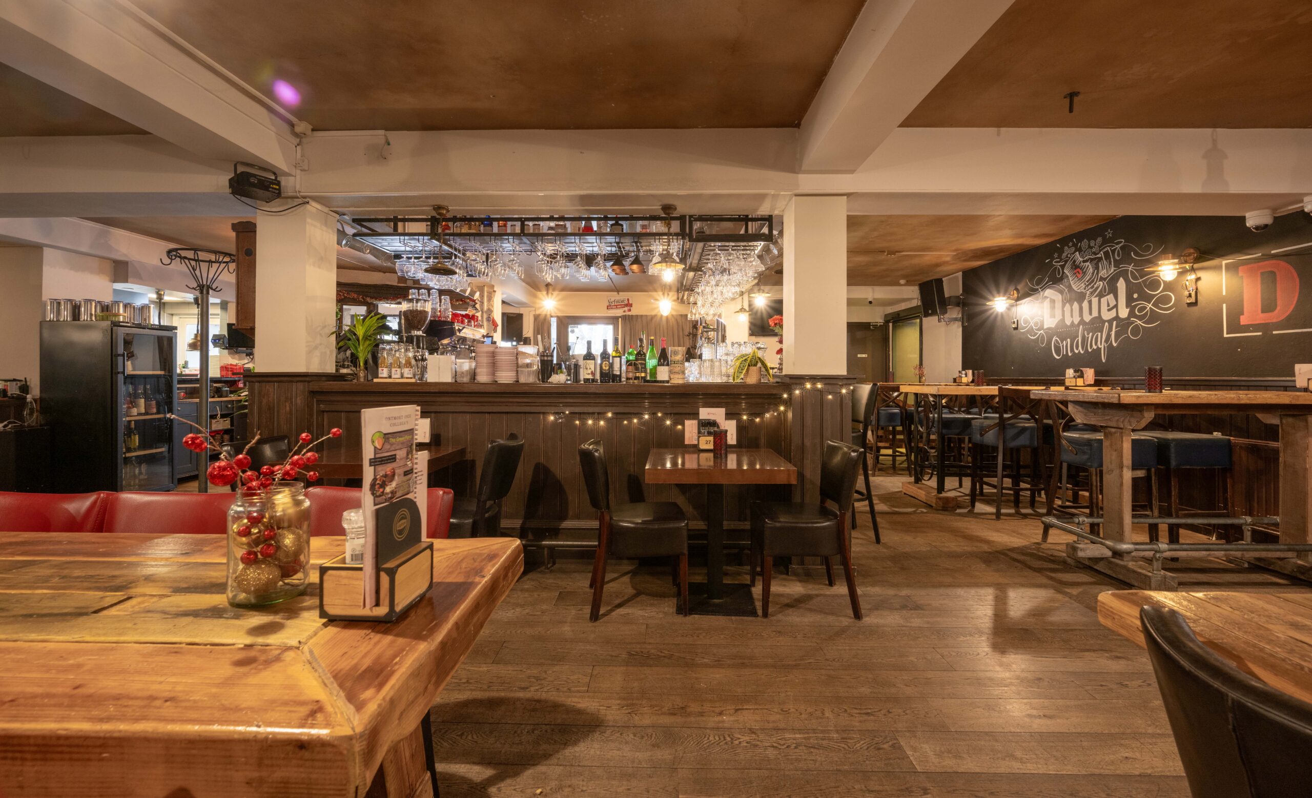 Het pand bestaat eigenlijk uit twee afzonderlijke panden, die momenteel met een smalle gang met elkaar verbonden zijn. Afhankelijk van de wensen van de toekomstige eigenaar(s) kan deze doorgang eenvoudig worden afgesloten. In het linkerpand bevindt zich Davila’s Bar & Kitchen. Bij binnenkomst stap je via een kleine entreehal een gezellige, sfeervolle ruimte binnen die doet denken aan een bruin café of een knusse kroeg. Een stoere zwarte bar, houten lambrisering, hoge tafels en rode en zwarte stoelen zorgen voor een ongedwongen en huiselijke sfeer, waar gasten zich direct welkom voelen. De ruimte biedt plek aan ongeveer 90 gasten. Links bij binnenkomst valt de grote bar op. Hoewel er regelmatig gasten aan plaatsnemen, functioneert deze vooral als uitgiftebar voor dranken. De bar is volledig uitgerust met diverse tapinstallaties, waaronder een Duvel-tap en een 5-tapskraan voor speciaalbieren. Daarnaast zijn er meerdere bier- en friskoelingen, een osmose-glaswasmachine, een nieuwe Lattiz-melkmachine, een koffiemachine en een bonenmaler aanwezig, waardoor de zaak direct volledig operationeel is. In het restaurant is verder een gescheiden toiletgroep voor mannen en vrouwen.
