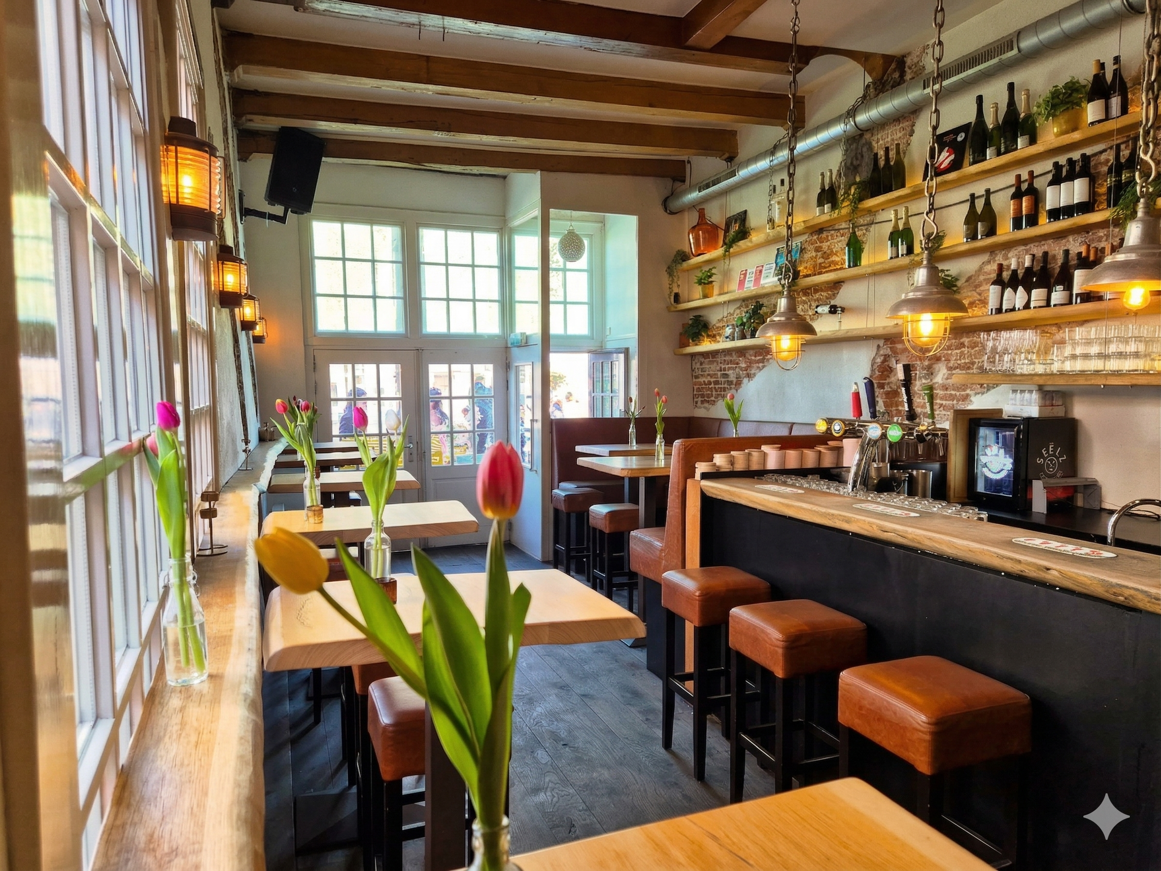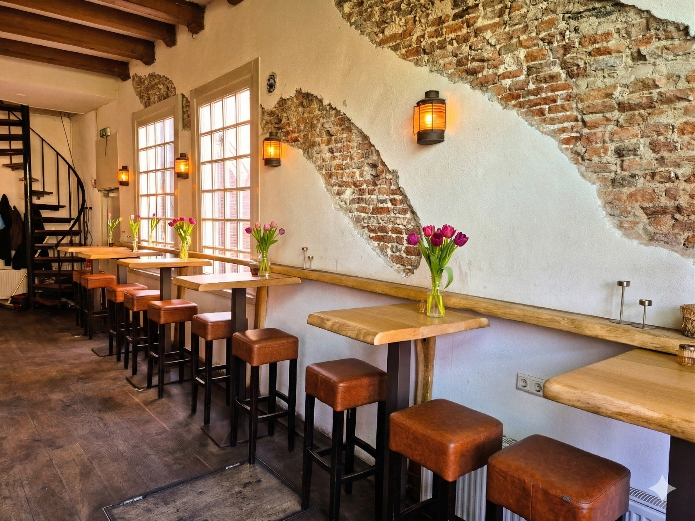 Het interieur is verzorgd en sfeervol ingericht, met een warme uitstraling die aansluit bij zowel borrelmomenten als avondbezoek. De indeling biedt voldoende zitplaatsen en een efficiënte baropstelling. Hoewel de ligging niet direct aan de zonzijde is, beschikt de zaak over een prettig en goed te exploiteren terras dat bijdraagt aan de levendigheid en aantrekkingskracht van de exploitatie.