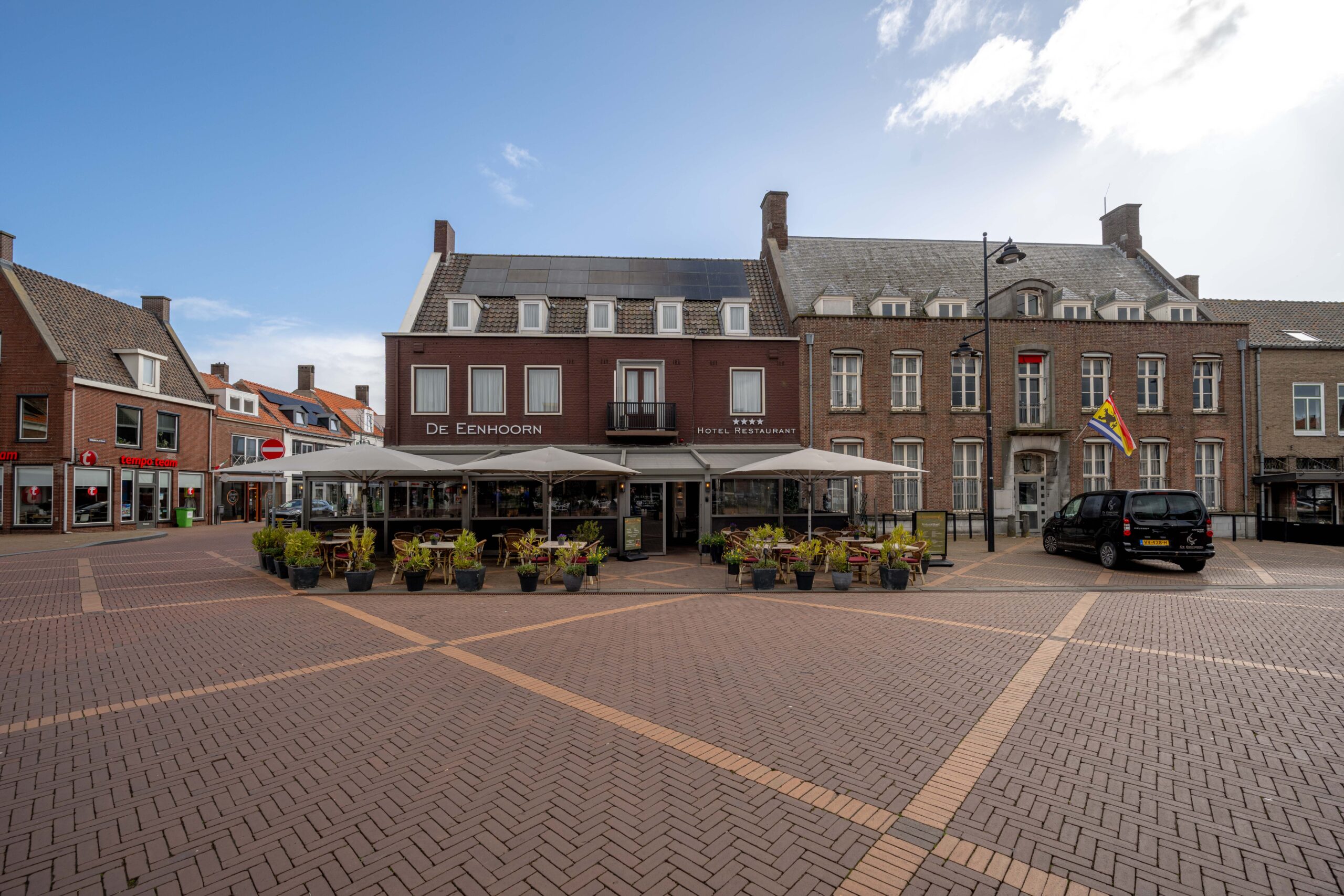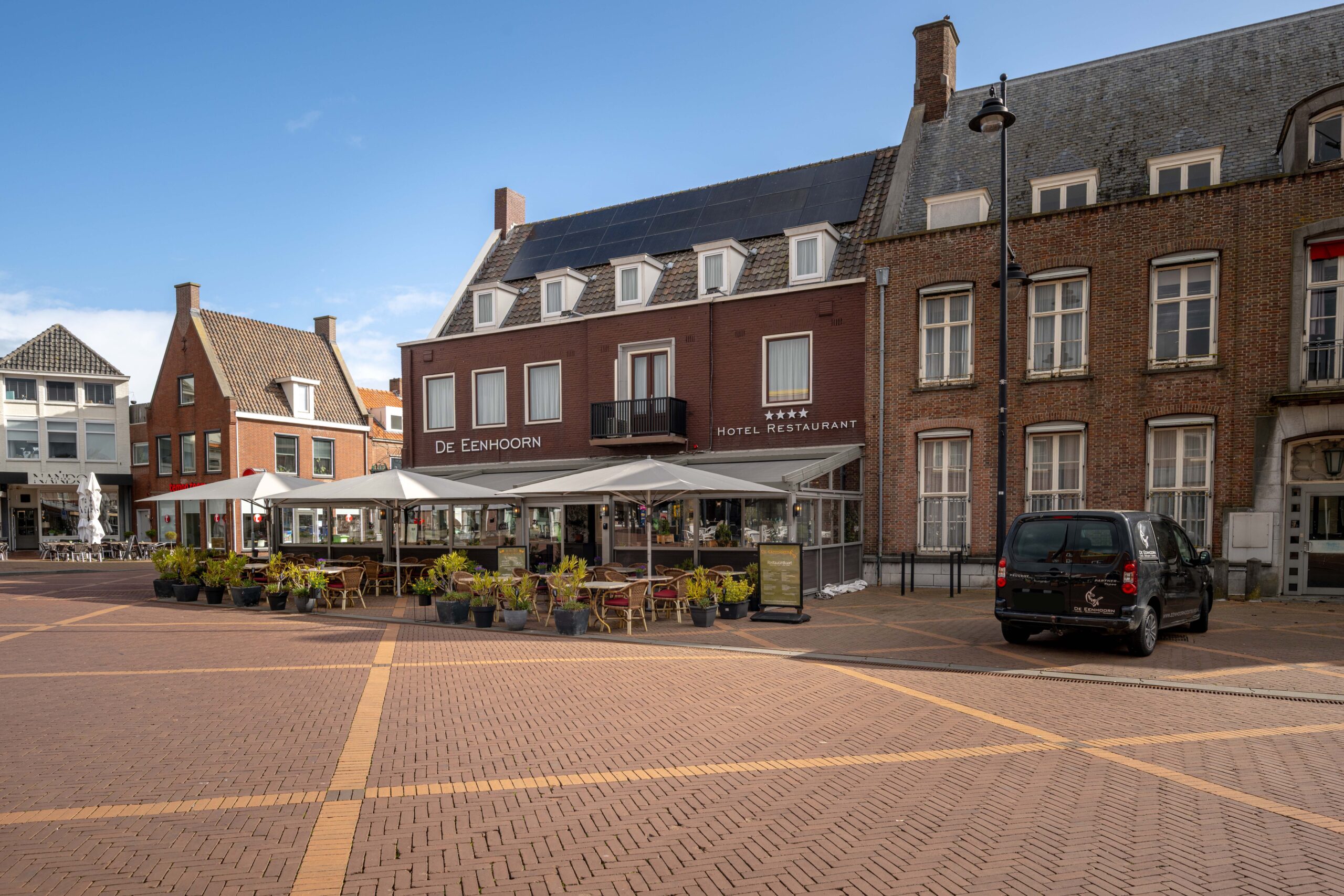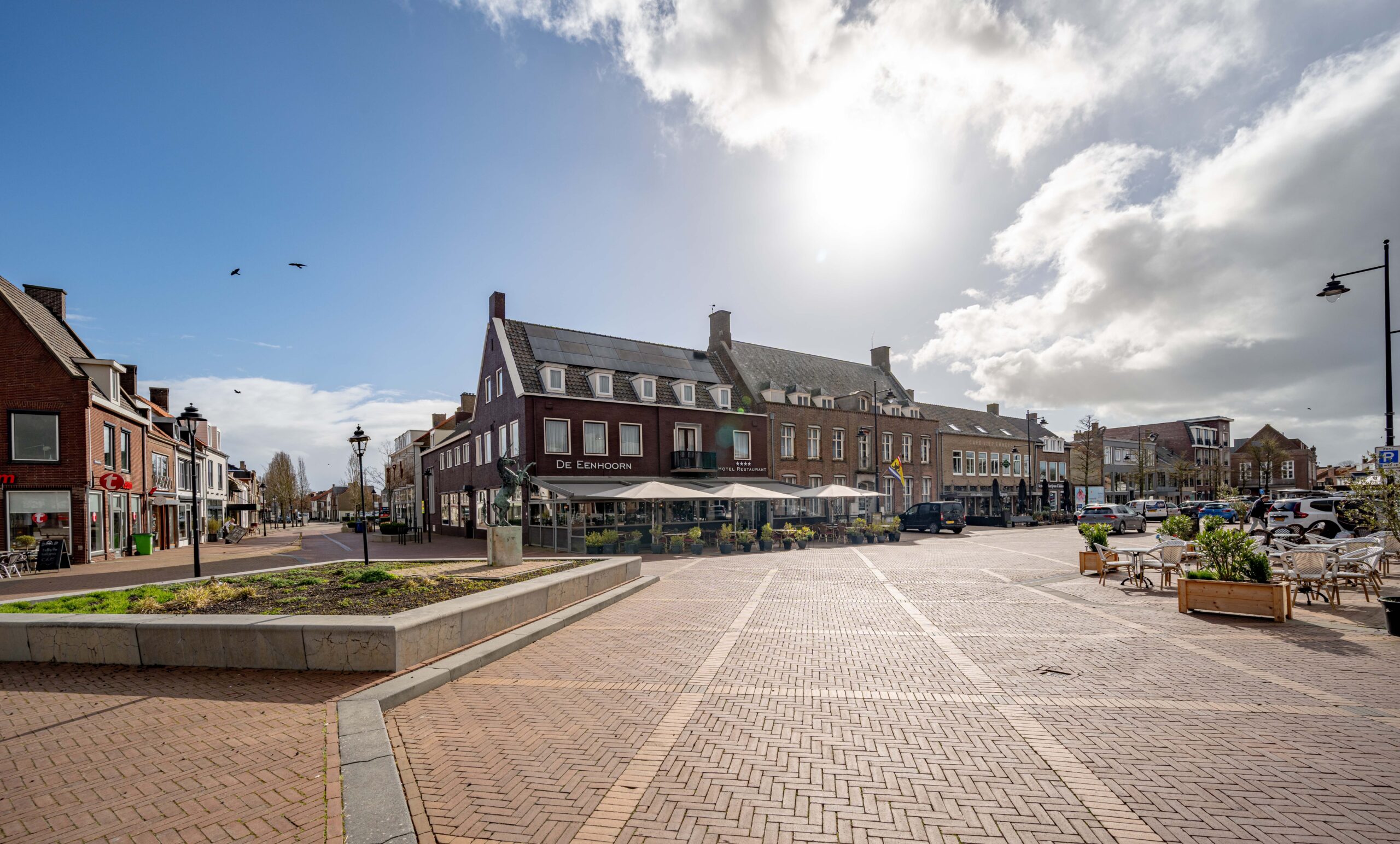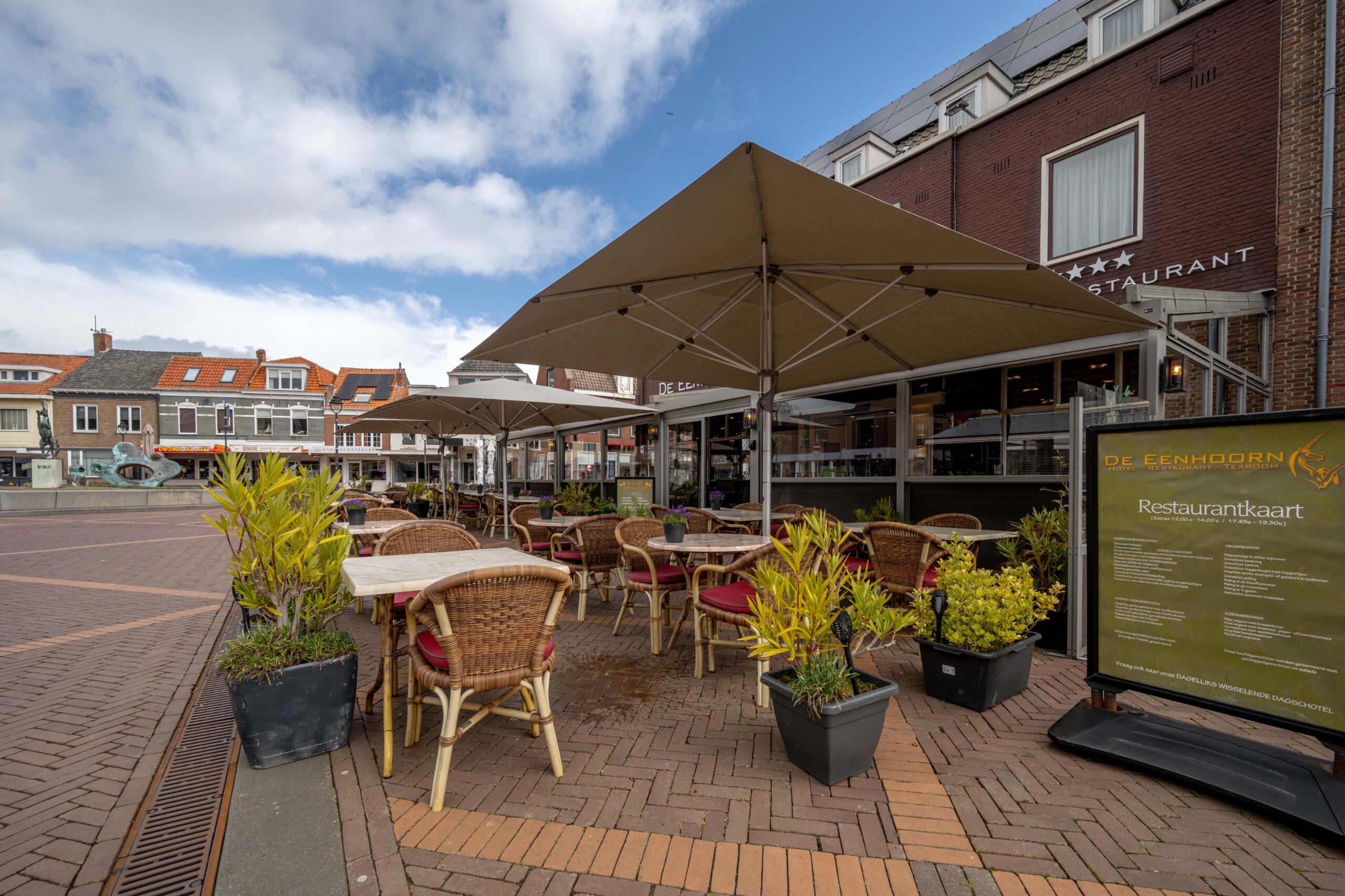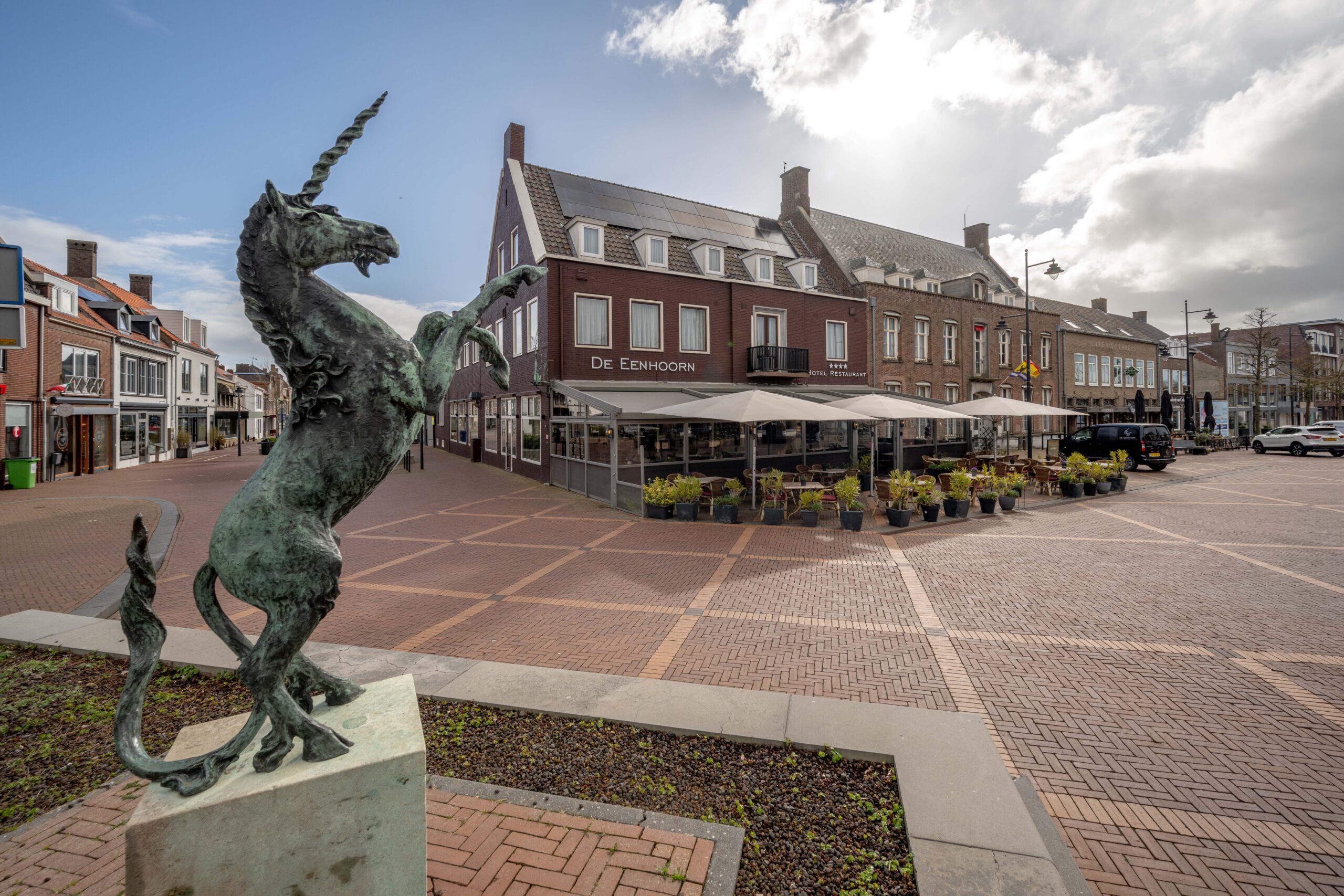 In Oostburg vind je lokale gezelligheid en Zeeuws-Vlaamse charme. Het dorp ligt nog geen tien kilometer van de populaire West-Zeeuwse kust en trekt daardoor toeristen die rust, cultuur en authentieke beleving zoeken. De Eenhoorn op de Markt vormt de perfecte uitvalsbasis voor dagjesmensen, vakantiegangers en zakenmensen. Gelegen middenin het dorpsleven, omringd door winkels, cafés en wekelijkse markten, geniet het hotel-restaurant van constante zichtbaarheid, een natuurlijke stroom passanten én de sfeervolle ambiance die gasten aantrekt voor een lunch, diner borrel of een overnachting.