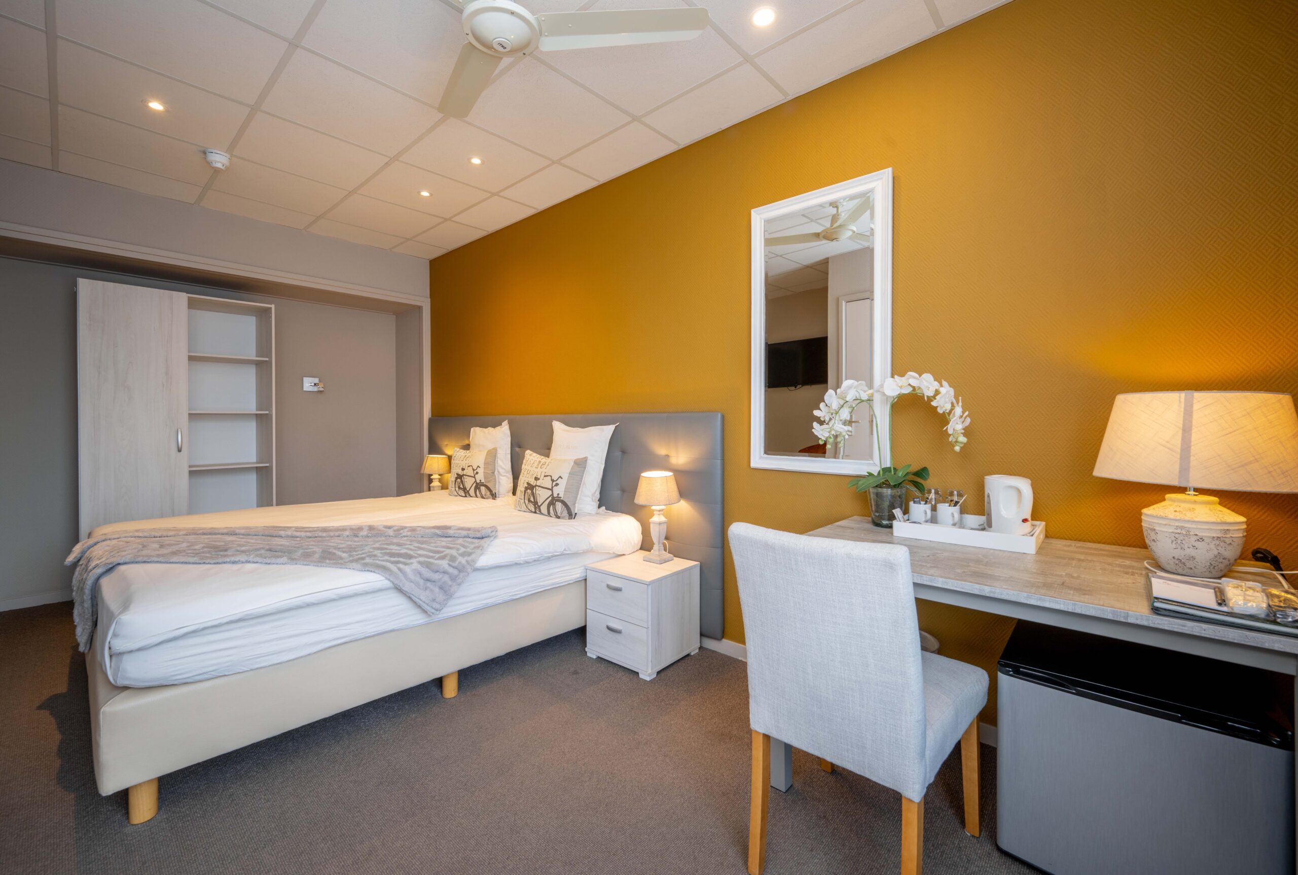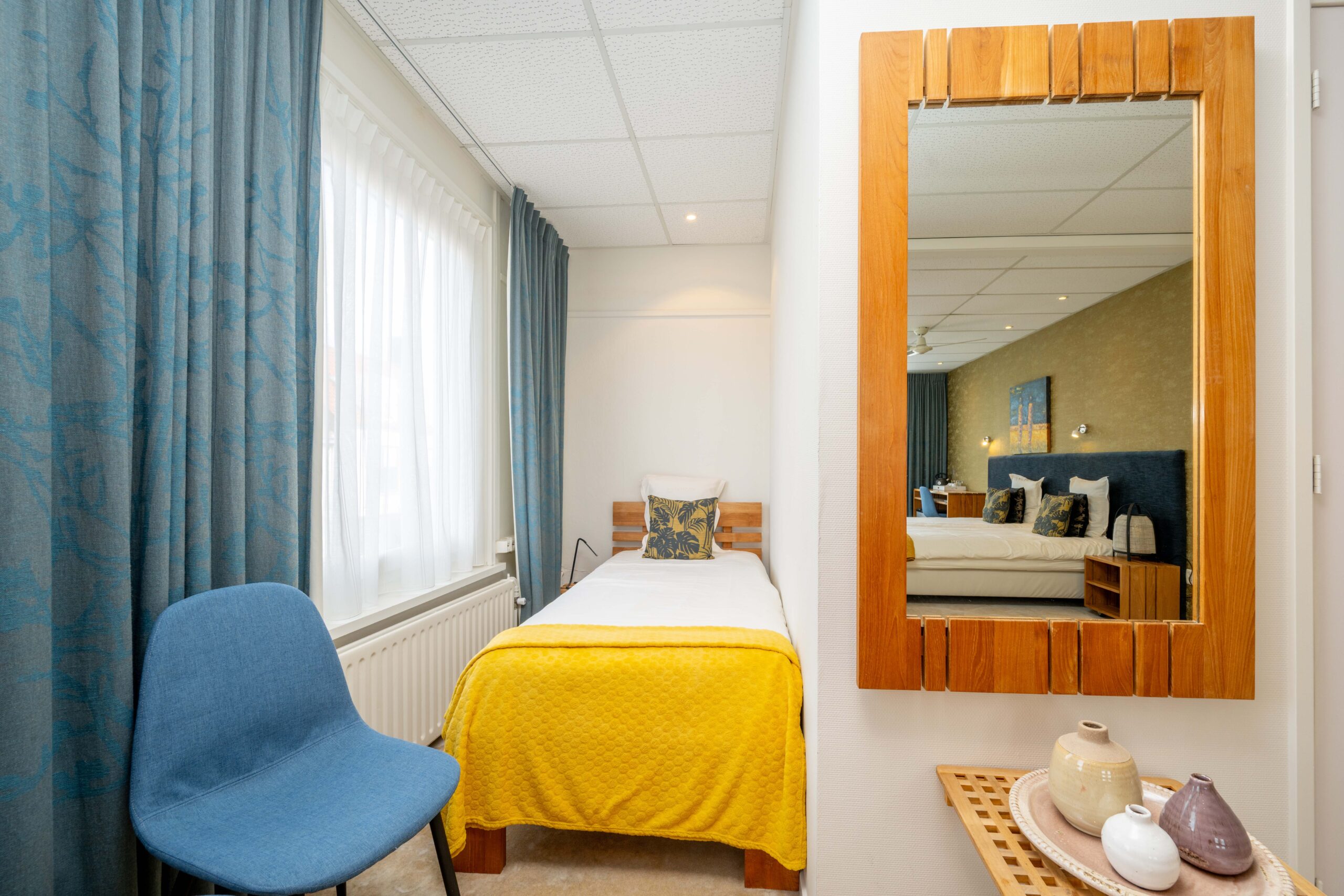 Het viersterrenhotel beschikt over 11 sfeervolle kamers en scoort een mooie 8,9 op Booking.com. Op de eerste verdieping zijn acht kamers gelegen: vijf comfort tweepersoonskamers (met douche en toilet), één ruime comfort tweepersoonskamer met douche en toilet, één comfort tweepersoonskamer met zithoek en bad/toilet, en een gezellige grote familiekamer met slaap- en zitbank, geschikt voor drie volwassenen en twee kinderen. Op de tweede verdieping bevinden zich drie knusse (retro)kamers, elk voorzien van een mooie douche en toilet in één ruimte. Vier comfortkamers zijn uitgerust met airconditioning, en ook de gangen zijn voorzien van airco voor extra comfort. Hotelgasten kunnen desgewenst iedere maaltijd gebruiken in het restaurant.