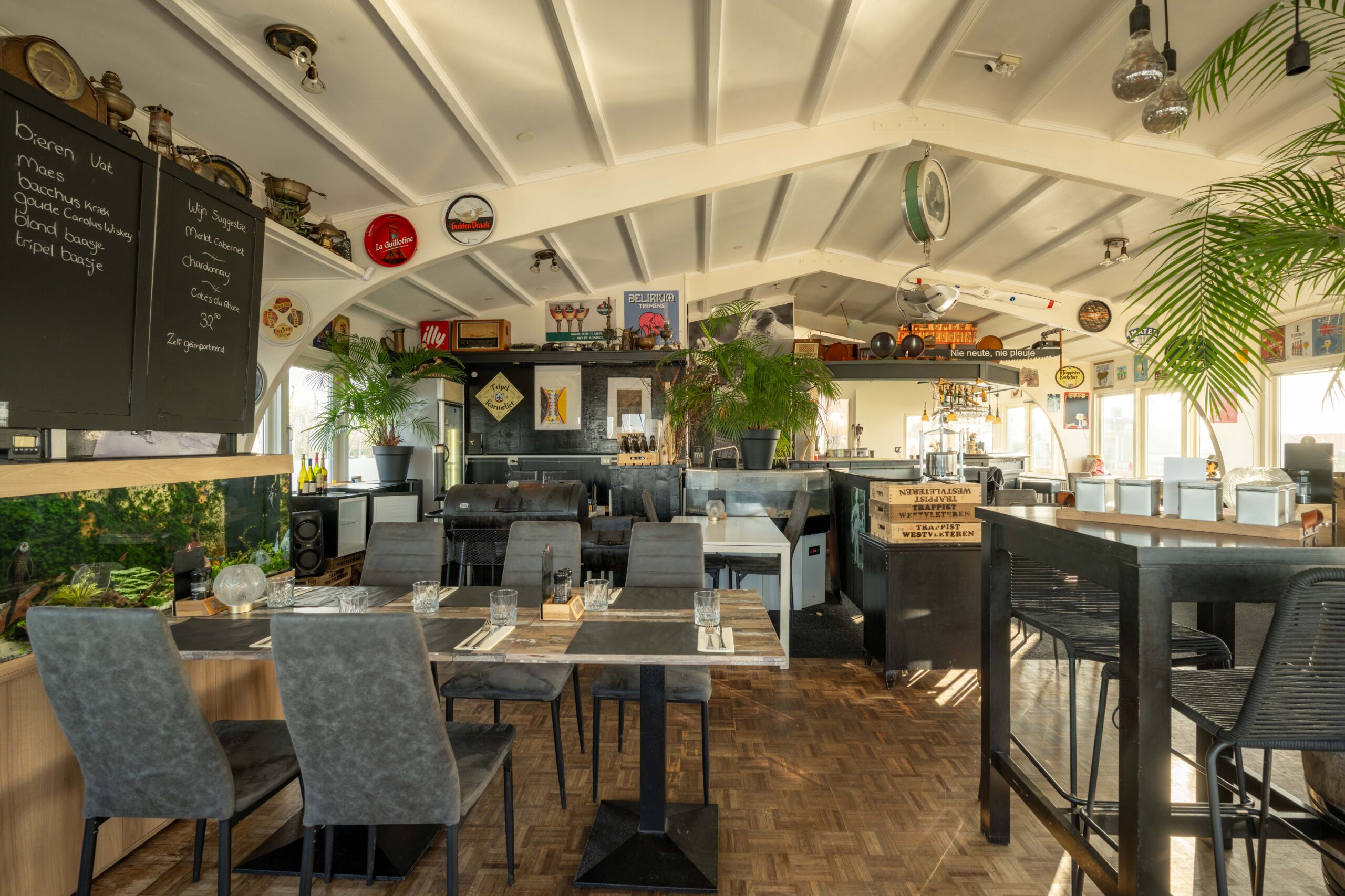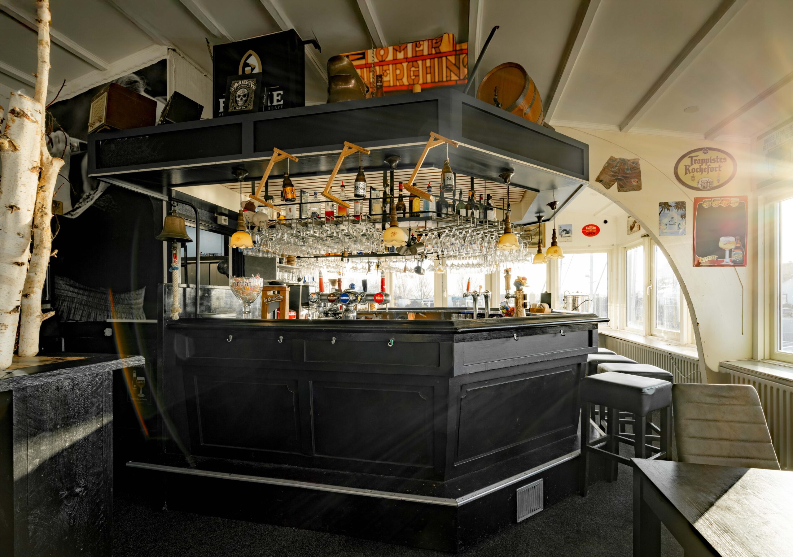 Binnen biedt het restaurant van circa 100 vierkante meter plek aan zo’n 70 gasten. De inrichting is zowel sfeervol als functioneel. Voor wie liever aan de bar zit is er ruimte voor 12 tot 15 personen. De bar zelf is volledig uitgerust met onder andere een pistonkoffiemachine, koffiemolen, lattice, koelingen, spoelbak, kassasysteem en maar liefst 10 tappunten. Het is duidelijk dat hier volop genoten wordt van (speciaal)biertjes. Al het glaswerk hangt praktisch en stijlvol boven de bar.