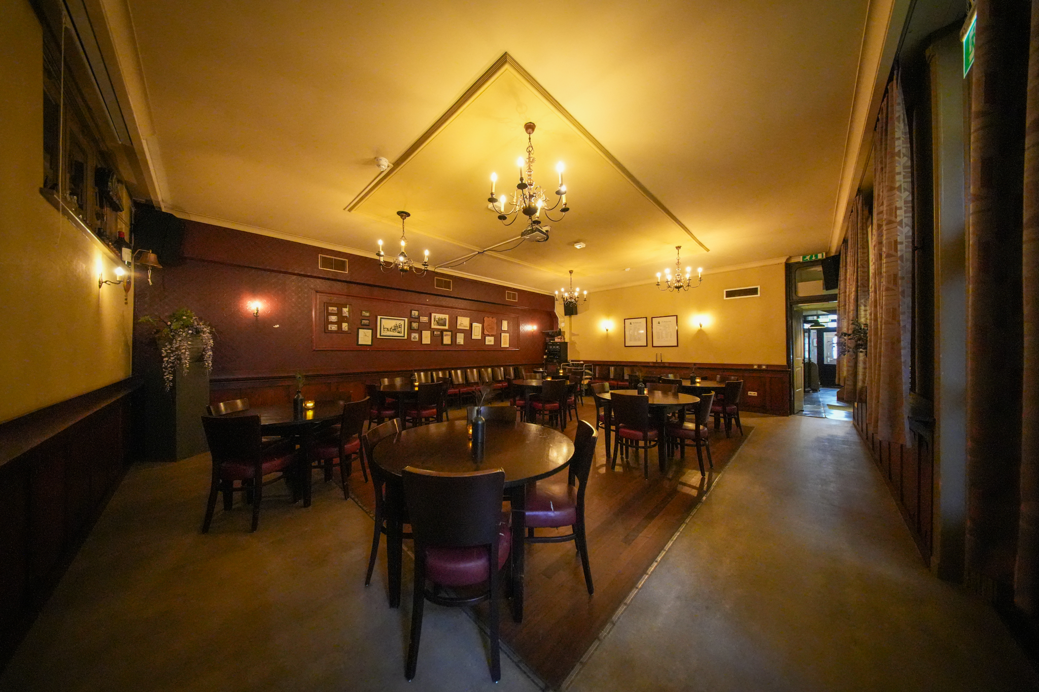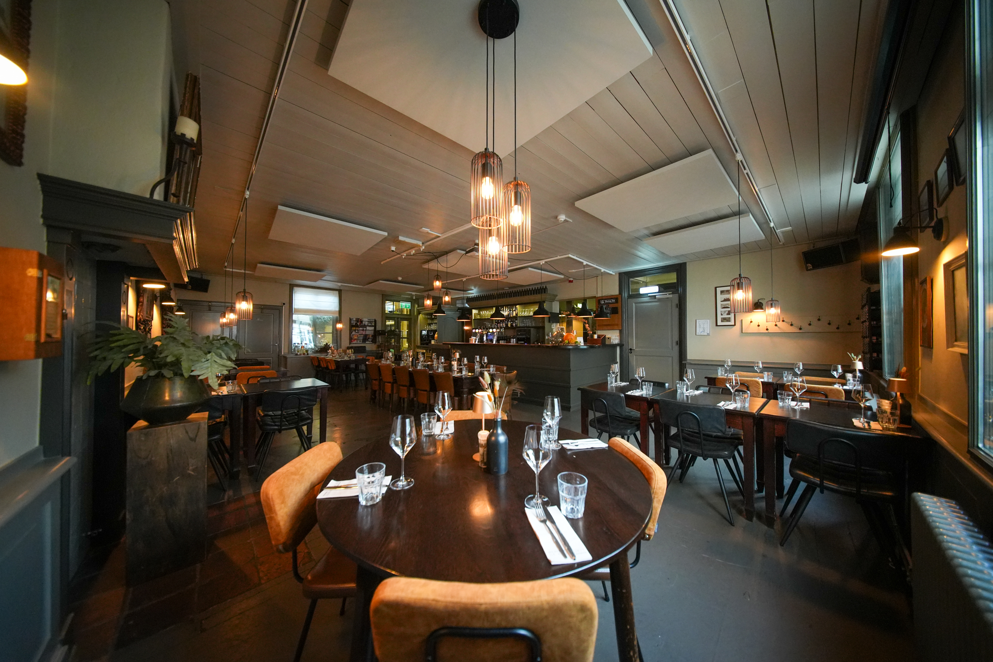 Via het terras komt men in de hal. Aan de linkerzijde van de hal vindt men het restaurant gedeelte met bar, ca. 40 zitplaatsen en gescheiden toiletgroep. Aan de rechterzijde van de hal vindt men het de eetkamer (ontbijtruimte & private-dining) met ca. 20 zitplaatsen en de keuken. Gaat men rechtdoor in de hal dan komt men in de multifunctionele zaal met daarachter gescheiden toiletgroep en opslagruimte. Aan de achterzijde vindt men een binnenplaats welke te overkappen is middels een luifel.