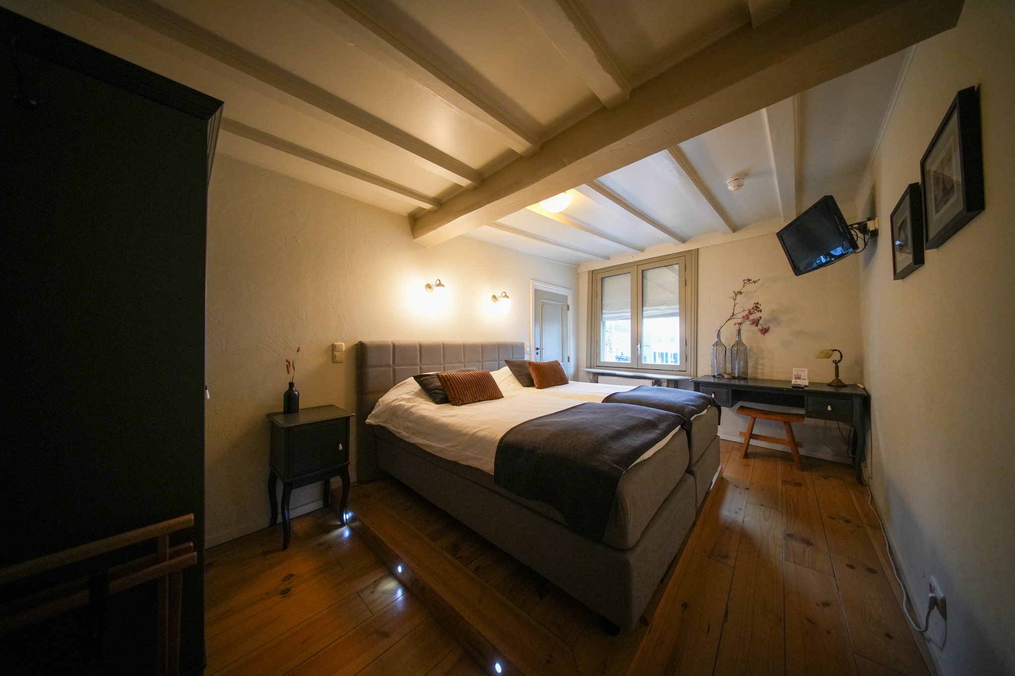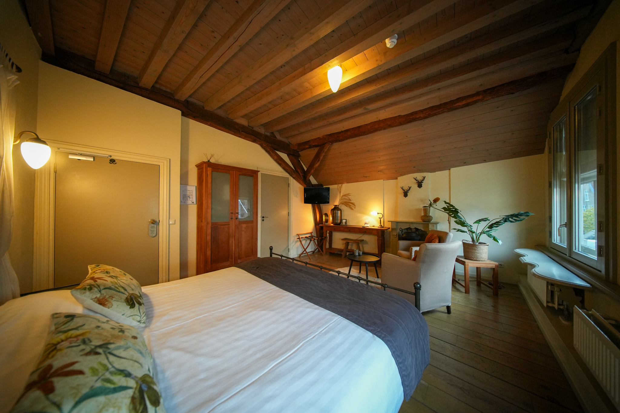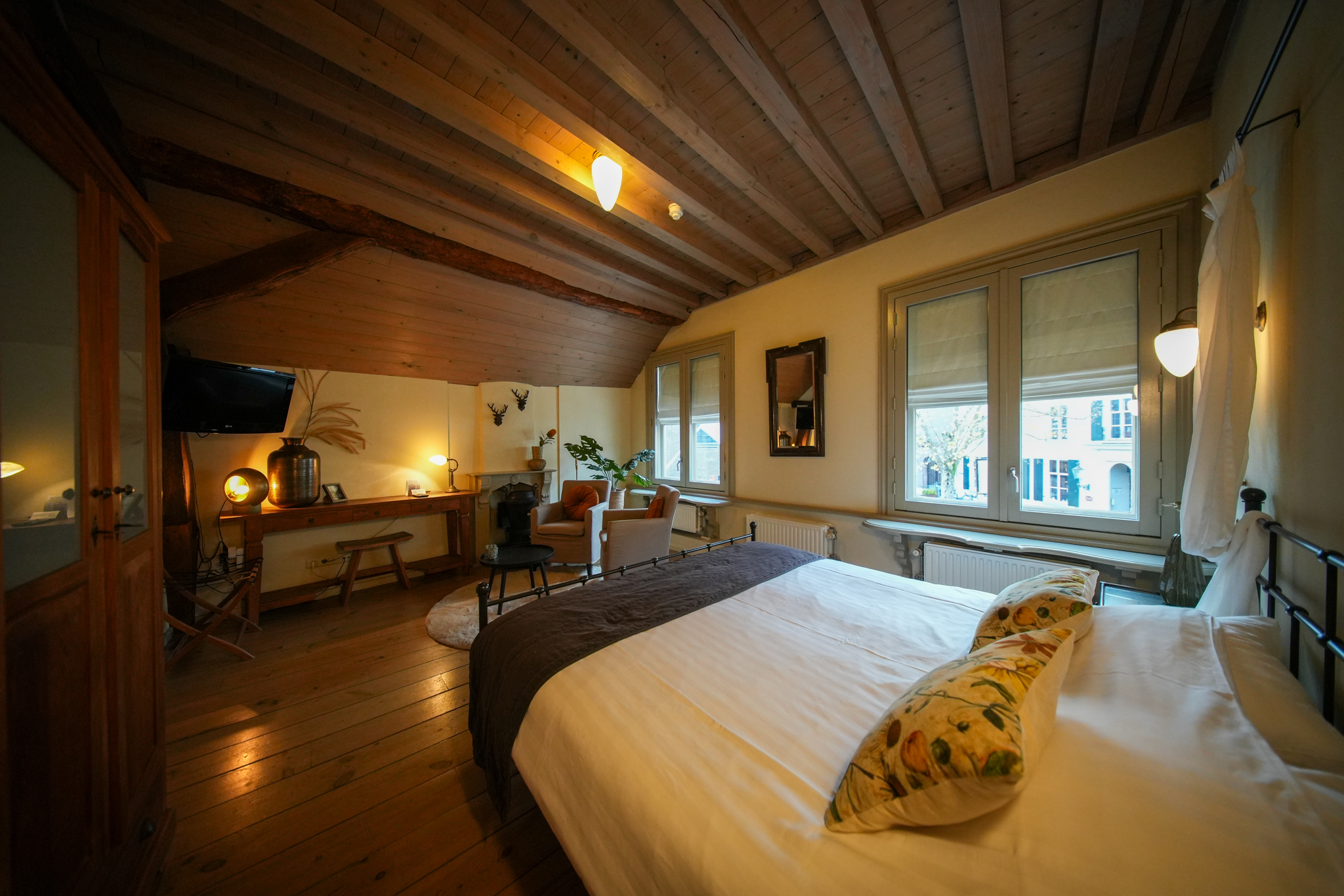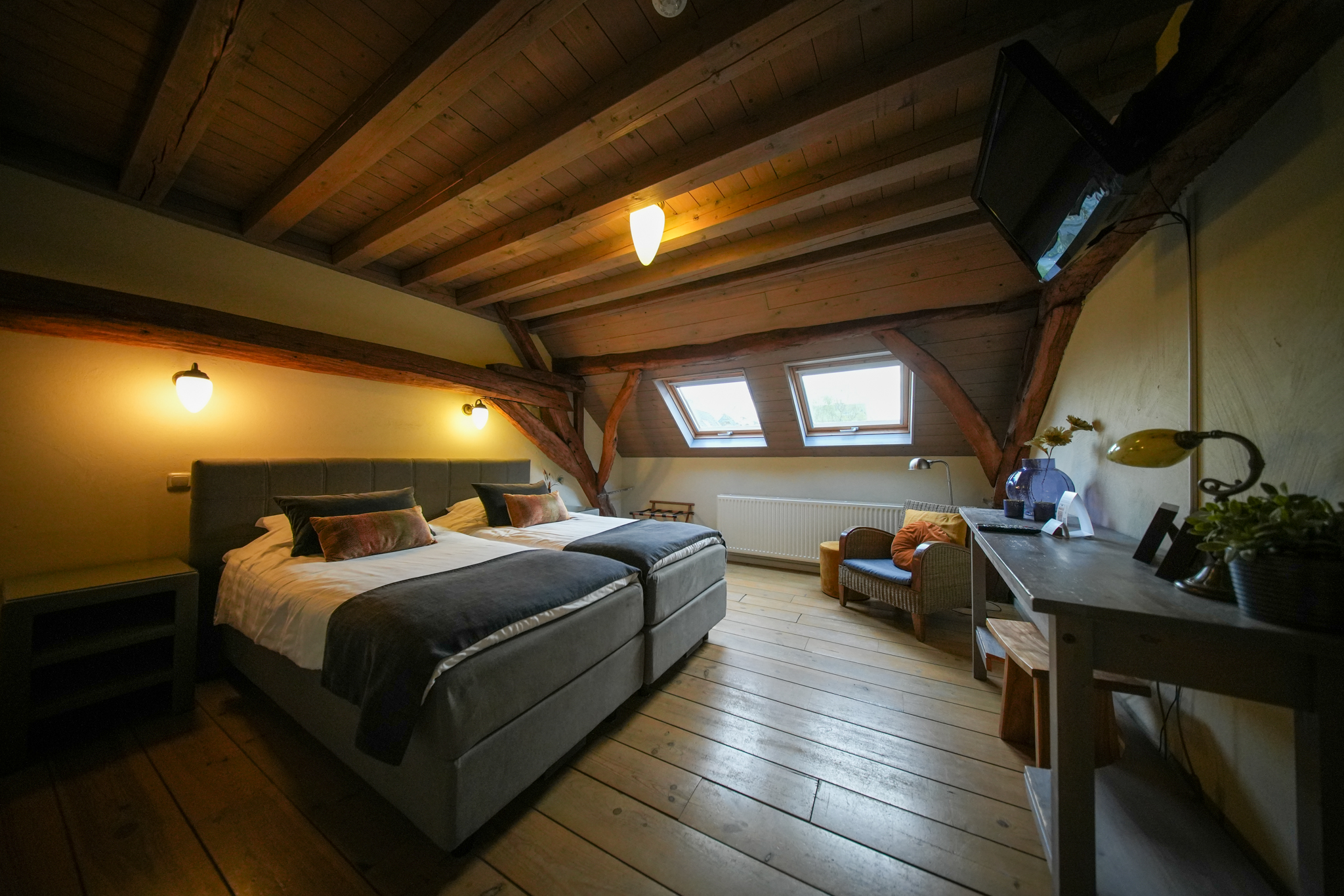 Op de tweede verdieping vindt men 2 x 2-persoonskamers voorzien van eigen sanitair en een kantoor. Tevens heeft men de beschikking over een bergzolder.