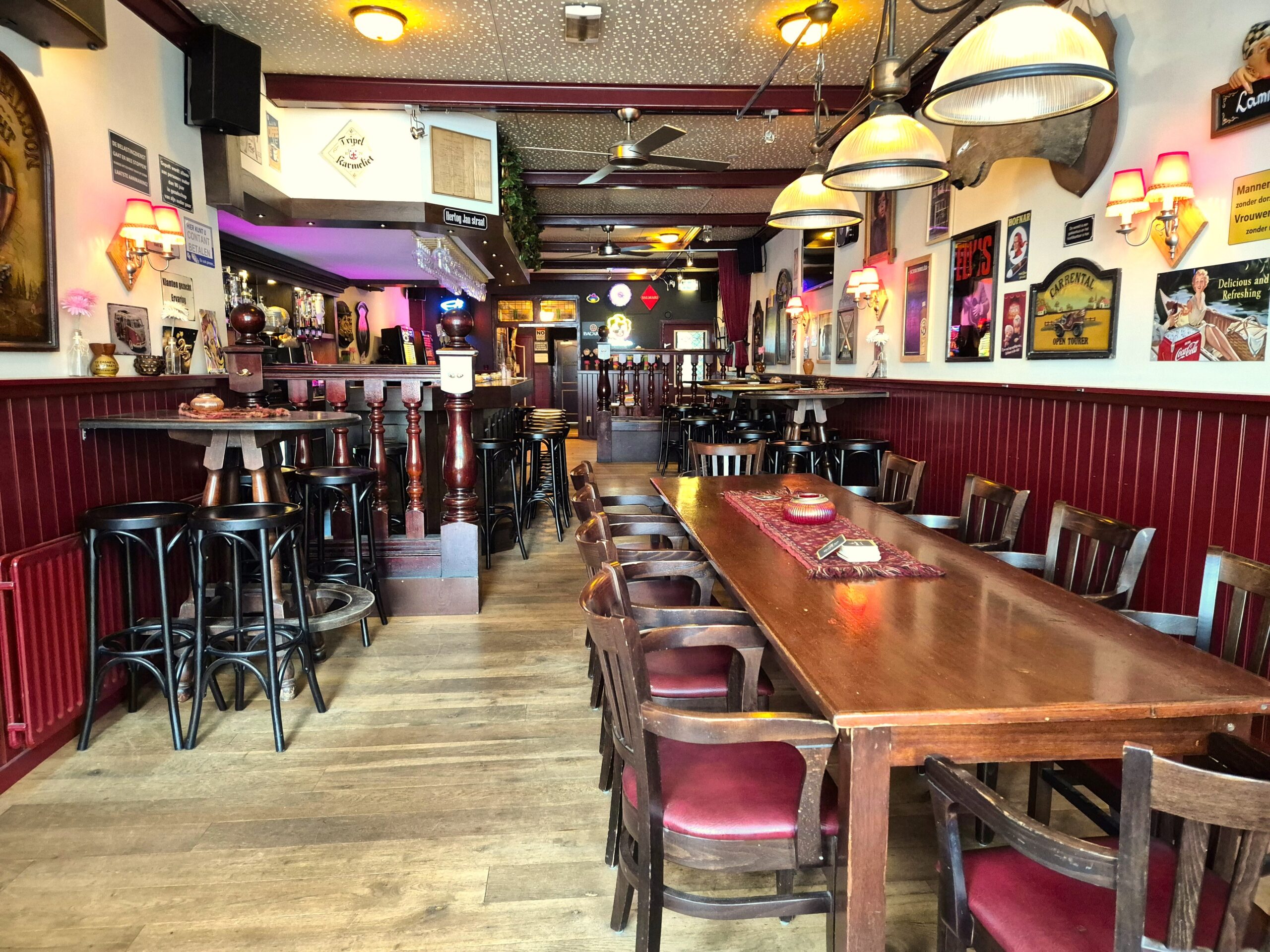 Binnen vind je twee dartbanen waar vaste gasten of dartteams zich helemaal kunnen uitleven. Er is geen terras, maar binnen is het sfeervol en knus, met de uitstraling van een ouderwetse bruine kroeg waar iedereen zich meteen thuis voelt. Achter de bar ligt een kleine maar complete keuken, perfect om een lekkere barhap of een eenvoudig gerecht te serveren.