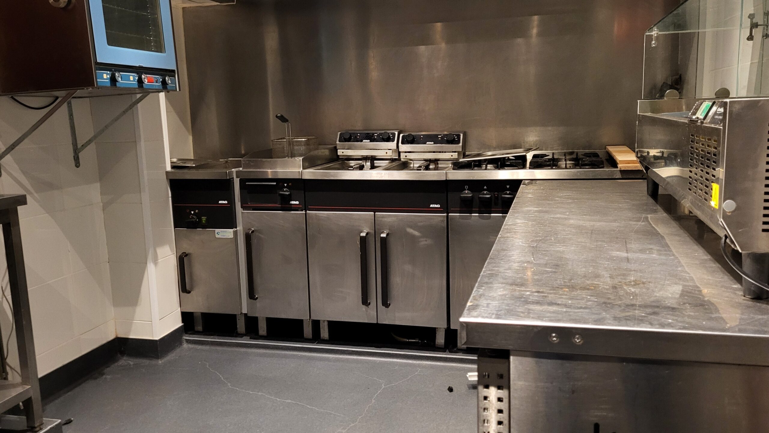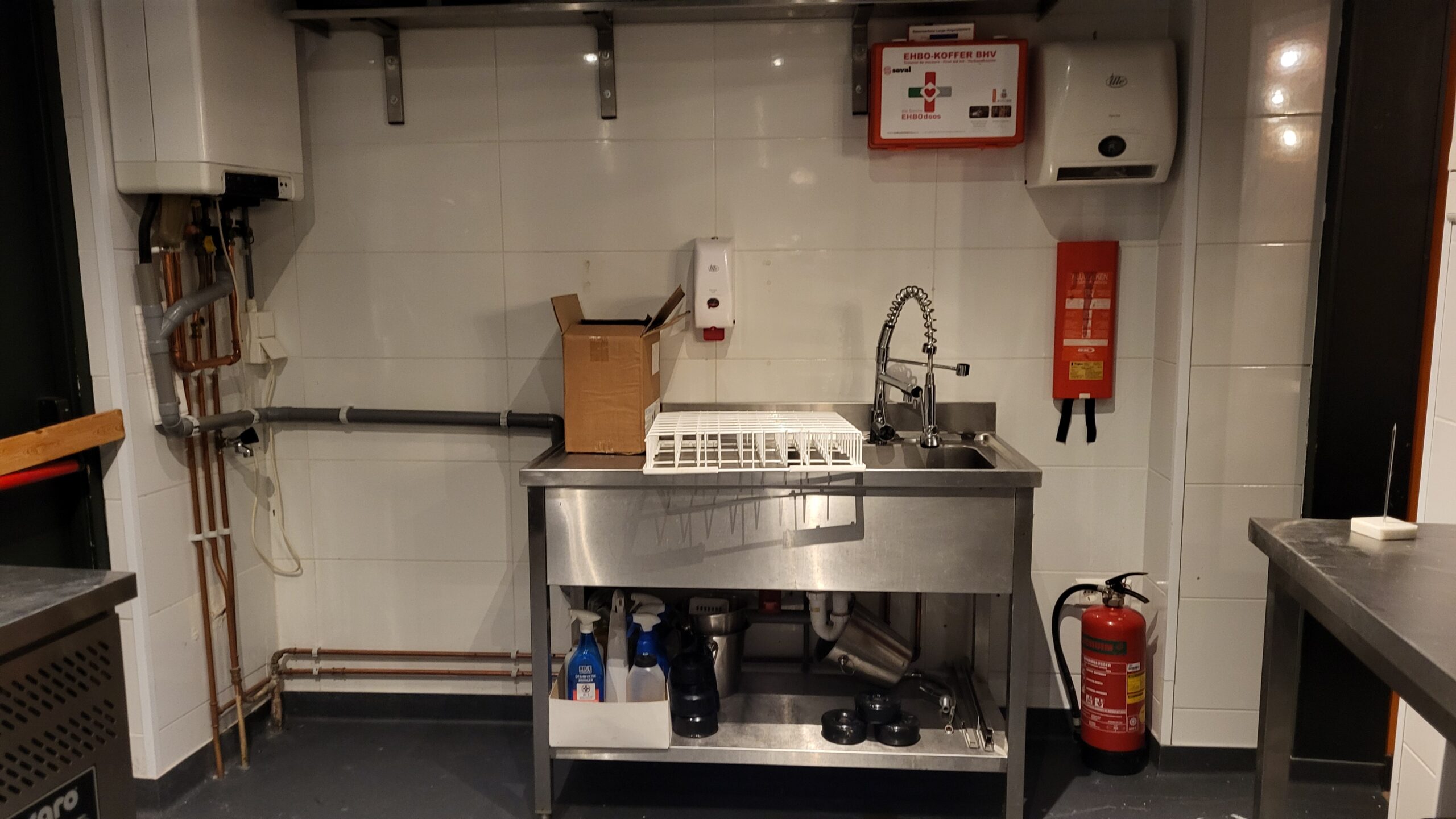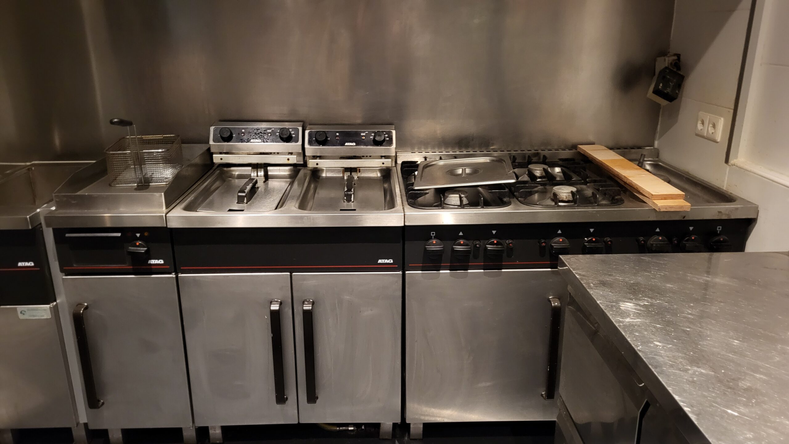 De horecaruimte meet ca 125 m2 begane grond en ca 75 m2 souterrain op stahoogte. De volledig ingericht keuken bevindt zich achterin de bedrijfsruimte. Daar is ook nog een binnenplaats die niet als terras gebruikt mag worden. Voor de deur ligt over de hele breedte van de gevel (8 meter) een terras van totaal ca. 12 m2. Het souterrain is in gebruik als magazijn en hier liggen ook 3 opslagtanks voor bier van 500 liter per stuk.