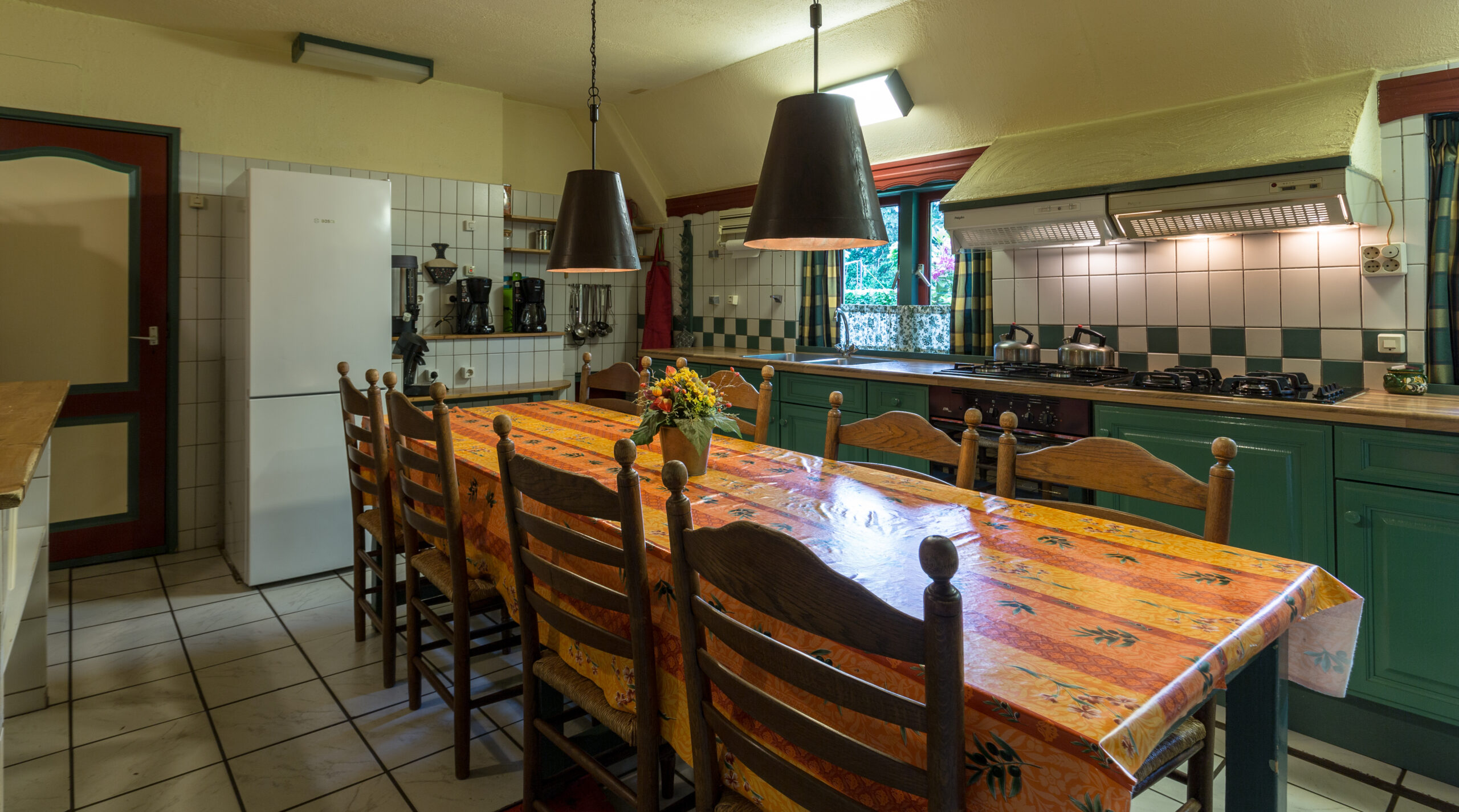 • Een sfeervolle, volledig ingerichte ruime keuken met alle apparatuur en inventaris.