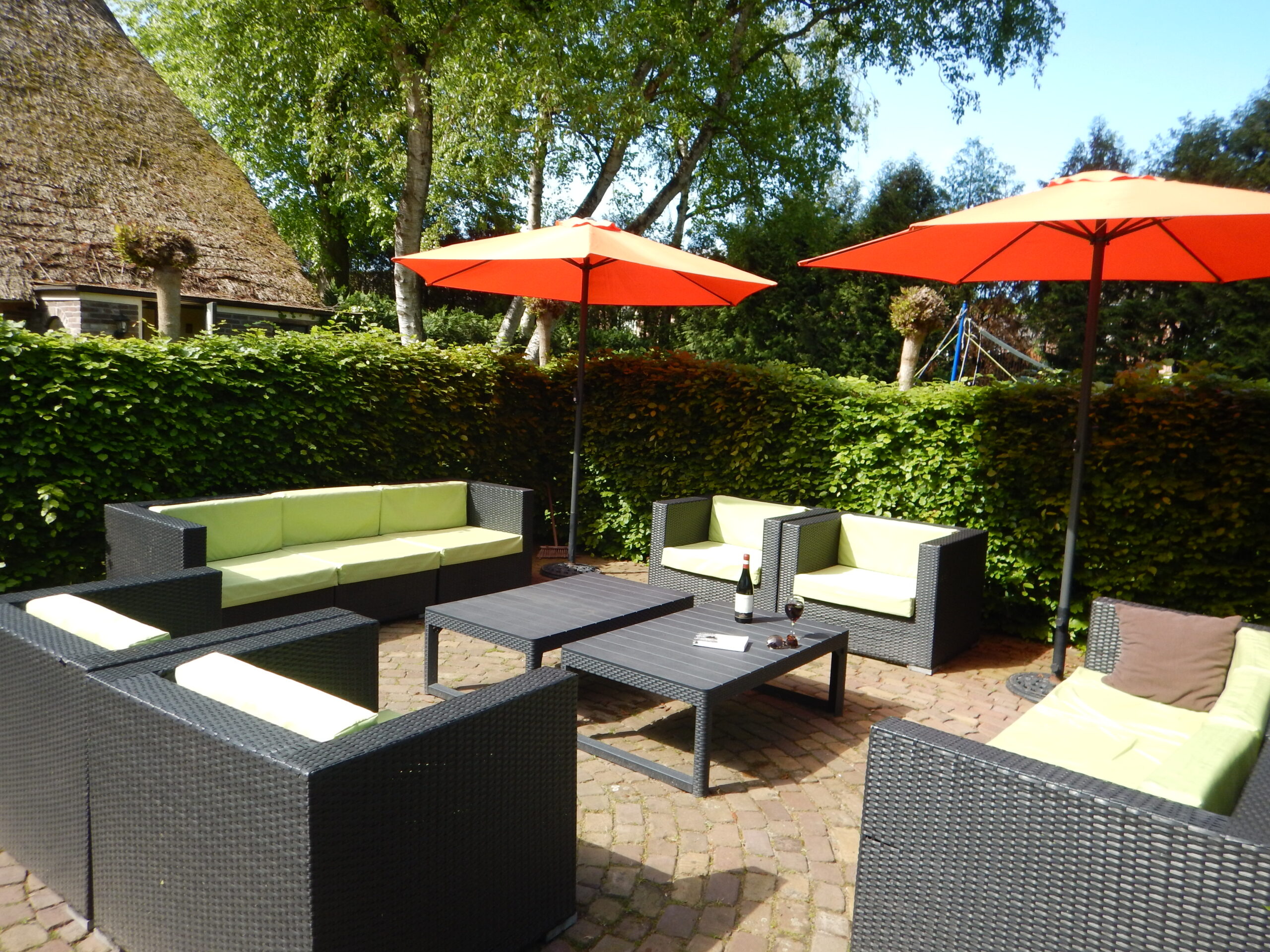 Rondom de boerderij bevinden zich meerdere terrassen, kleine sportveldjes, speeltoestellen en praktische voorzieningen zoals een washok, berging en fietsenstalling.