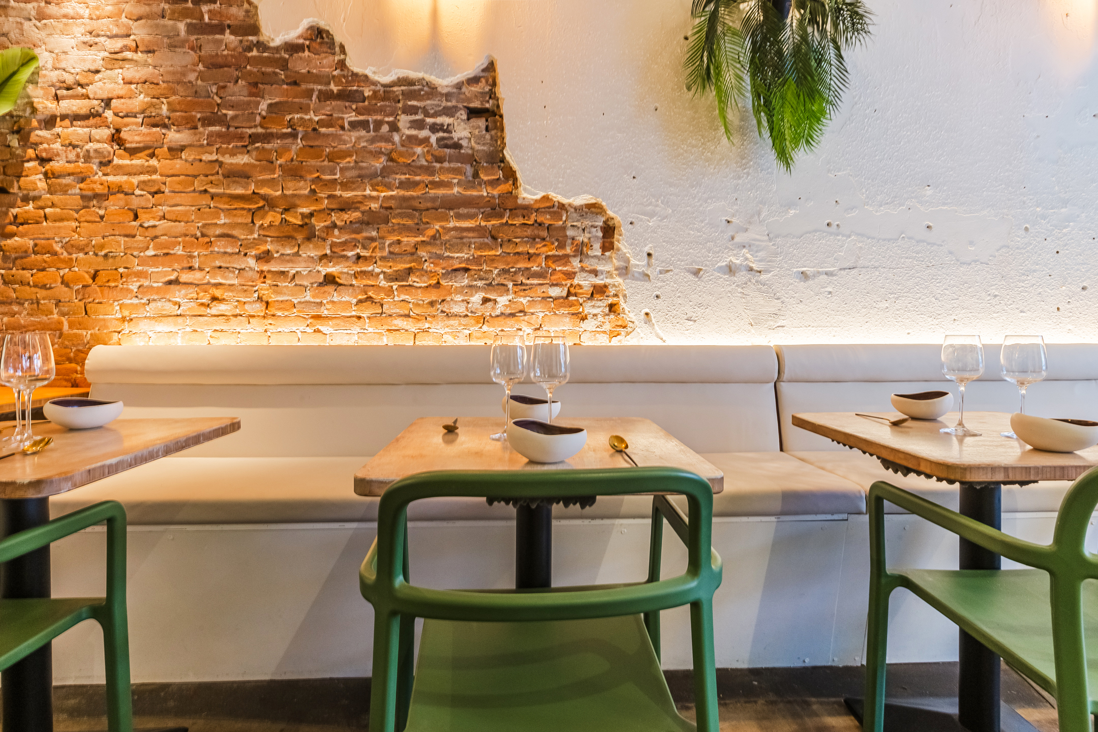 De ruimte kenmerkt zich door een elegante uitstraling en een indeling die zich uitstekend leent voor een intiem restaurant met hoog service niveau. Dankzij het opengebroken stucwerk komen de prachtige originele bakstenen tevoorschijn. Dat tezamen met de brede raampartijen, draagt bij aan een verfijnde ambiance.