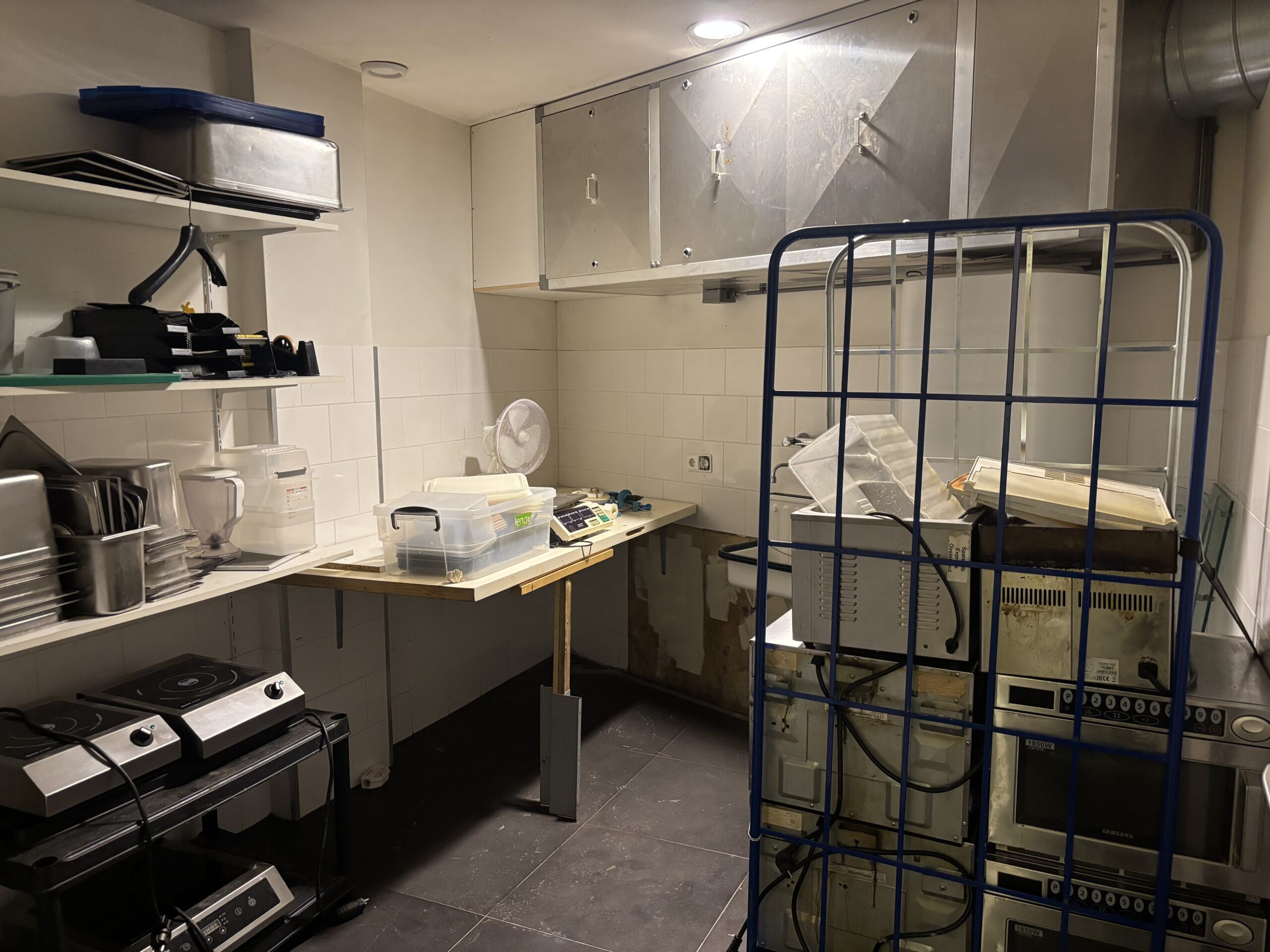 Compacte ontvangstgedeelte aan de voorzijde, ideaal voor klantencontact en het afhandelen van bestellingen en een diepe, ruime keuken. De indelinig is eventueel eenvoudig aan te passen door het verplaatsen van de tussenwand zou er een klein zitgedeelte gecreëerd kunnen worden.