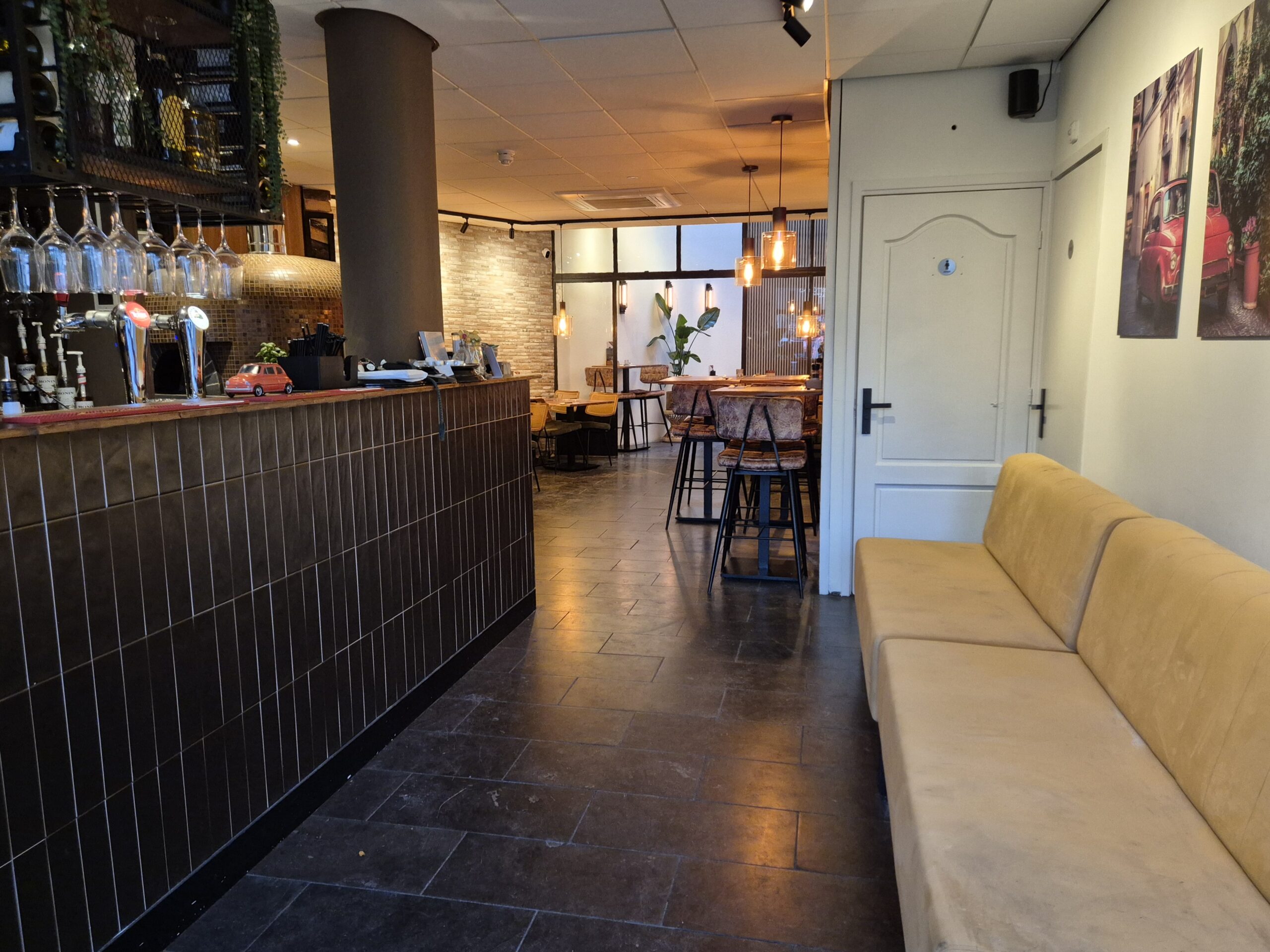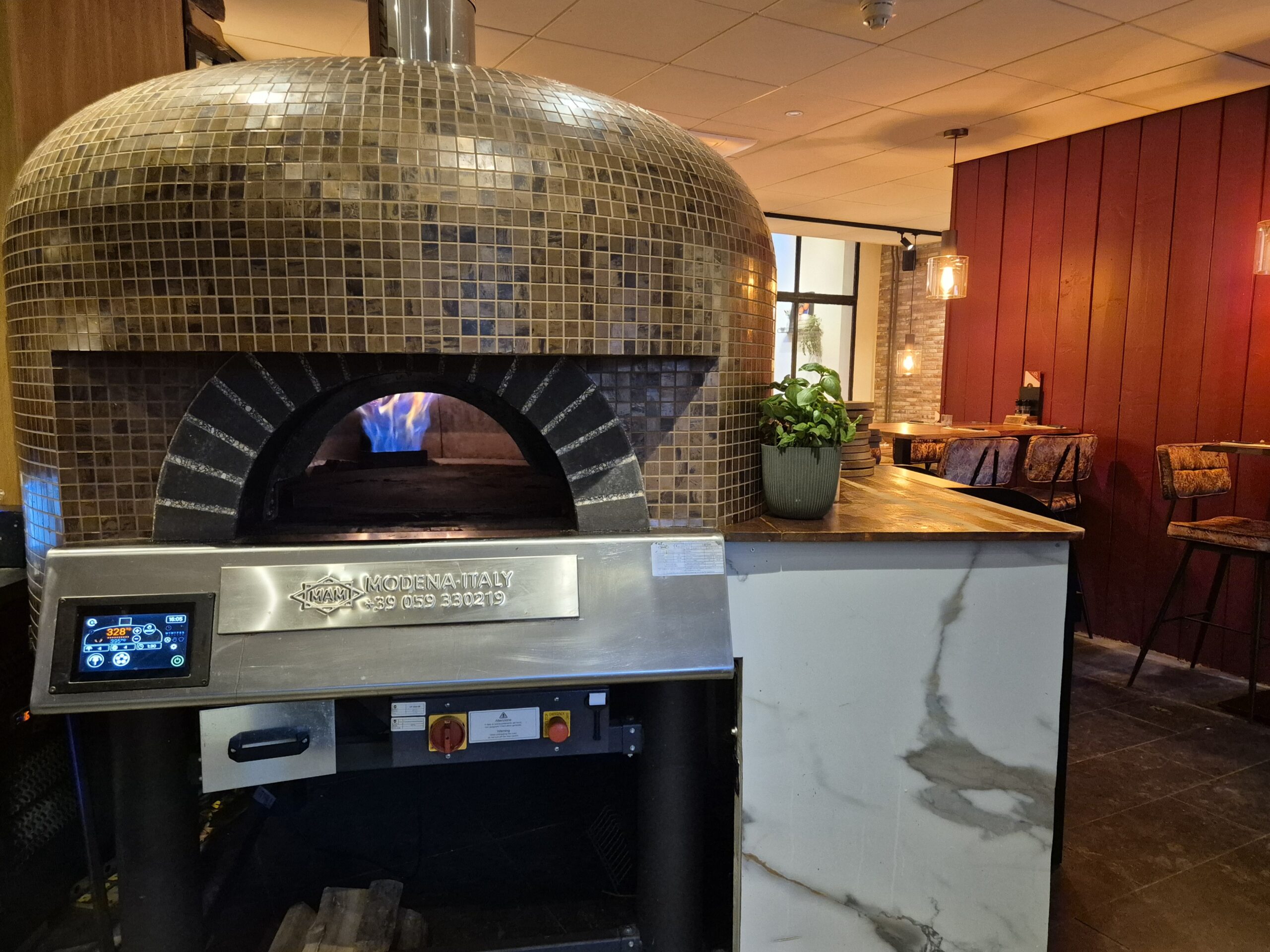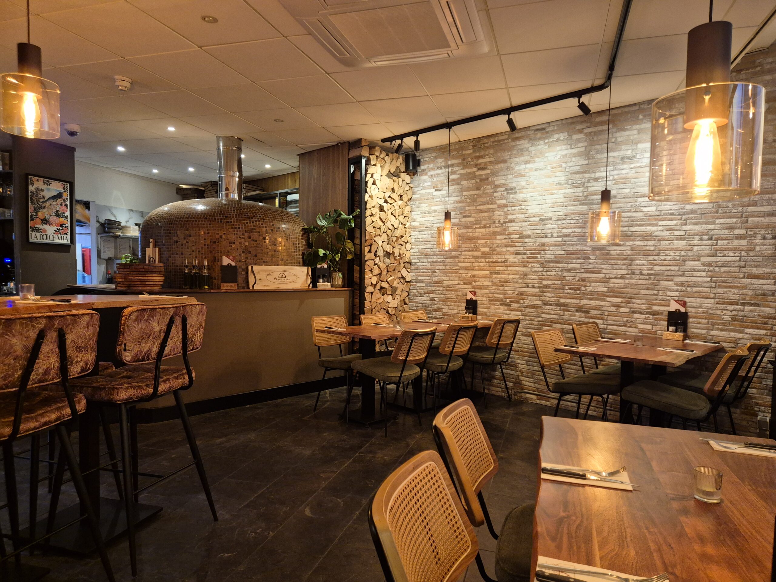 Het pizzarestaurant is recentelijk (circa 2 jaar geleden) volledig (her)ingericht en beschikt over een prachtig grote gas-houtoven, waarmee de authentieke Italiaanse pizza’s worden bereid.