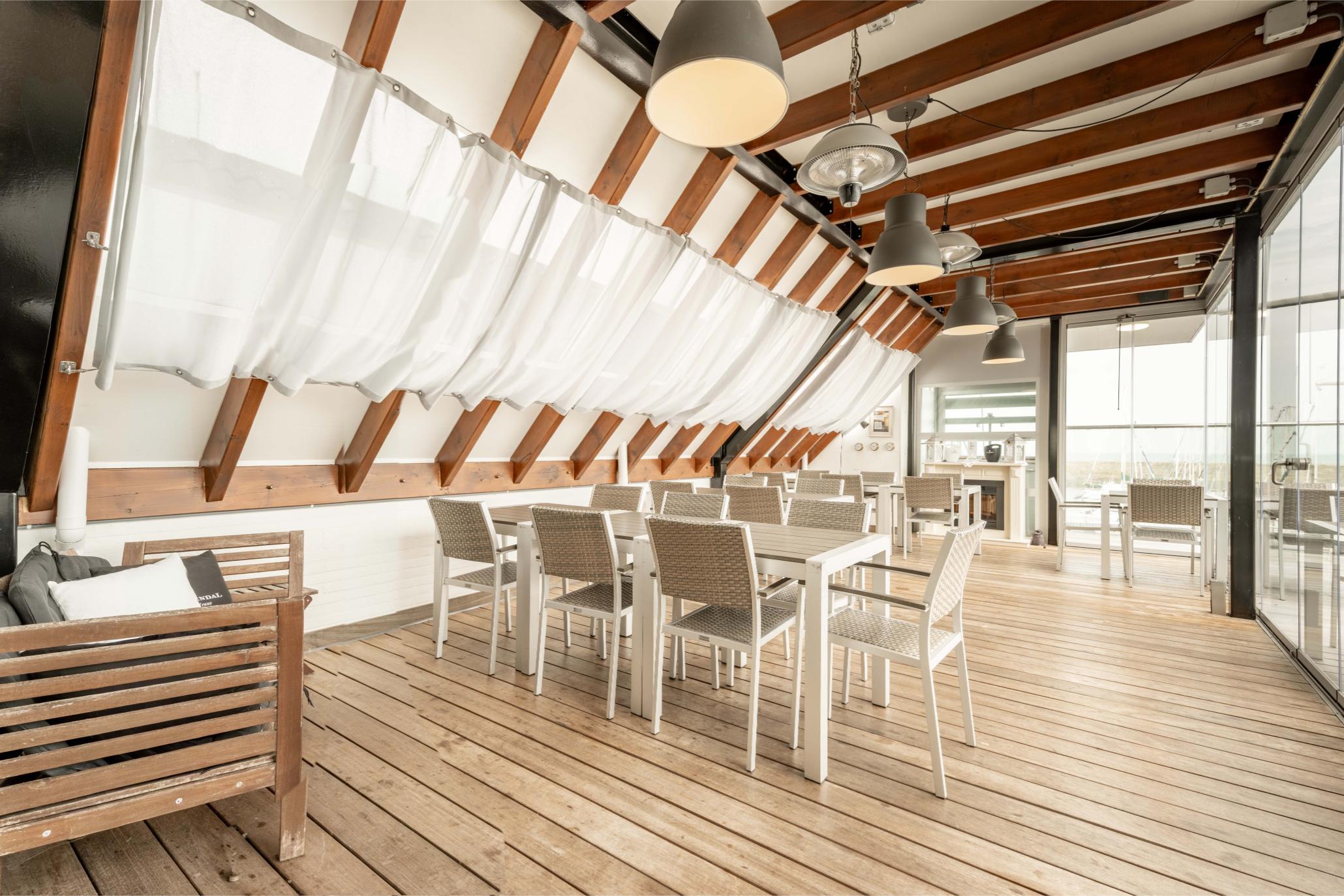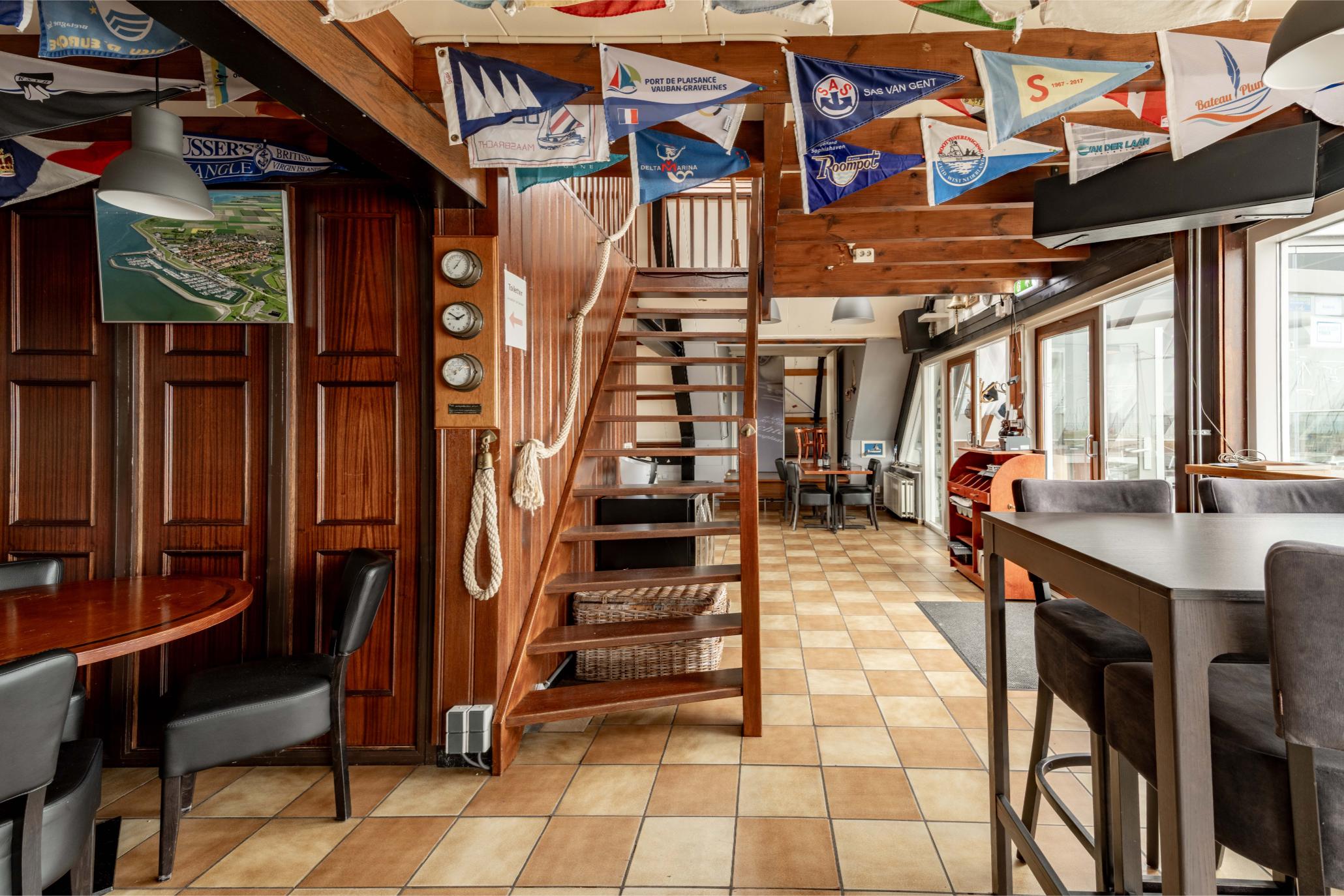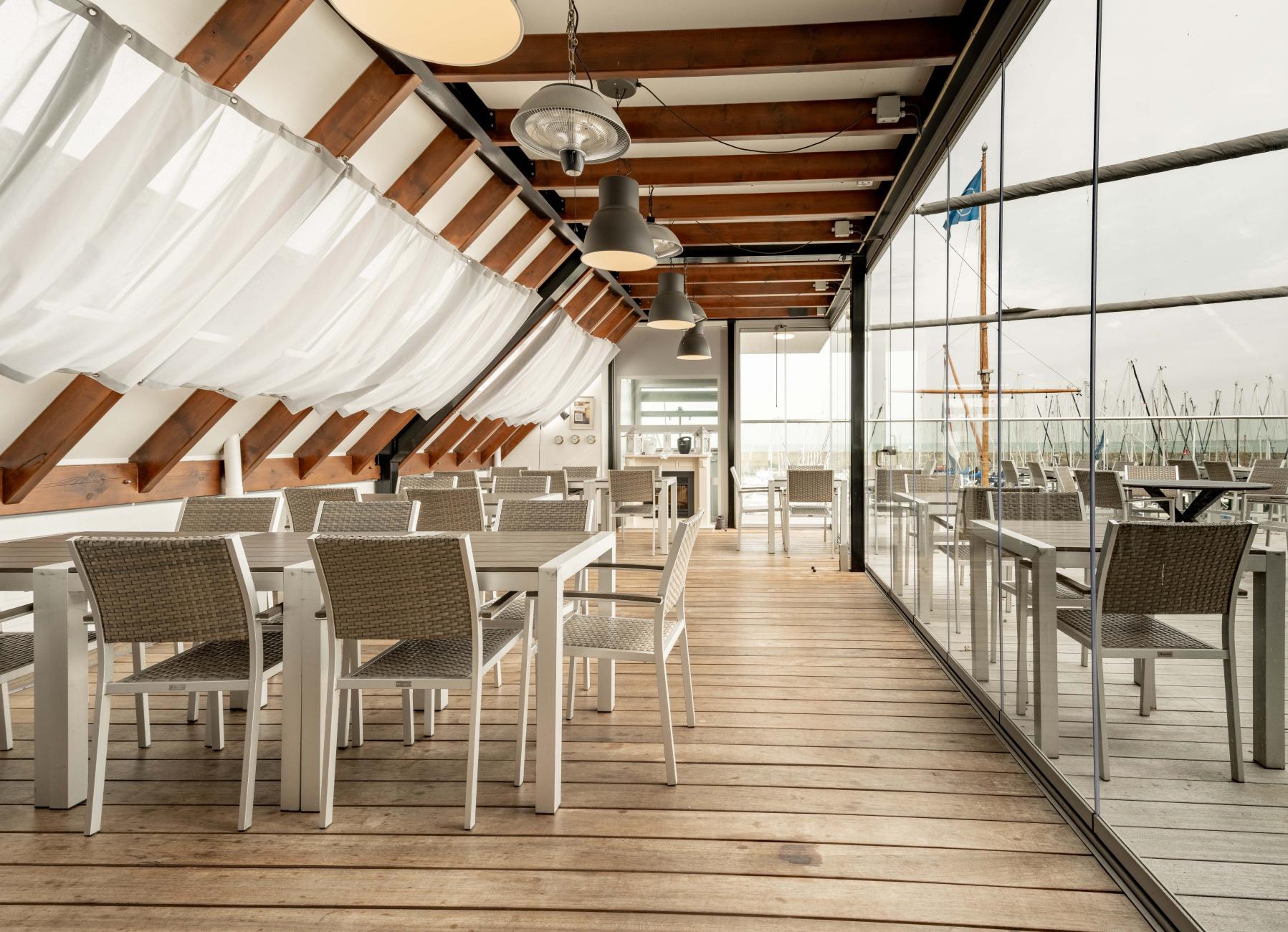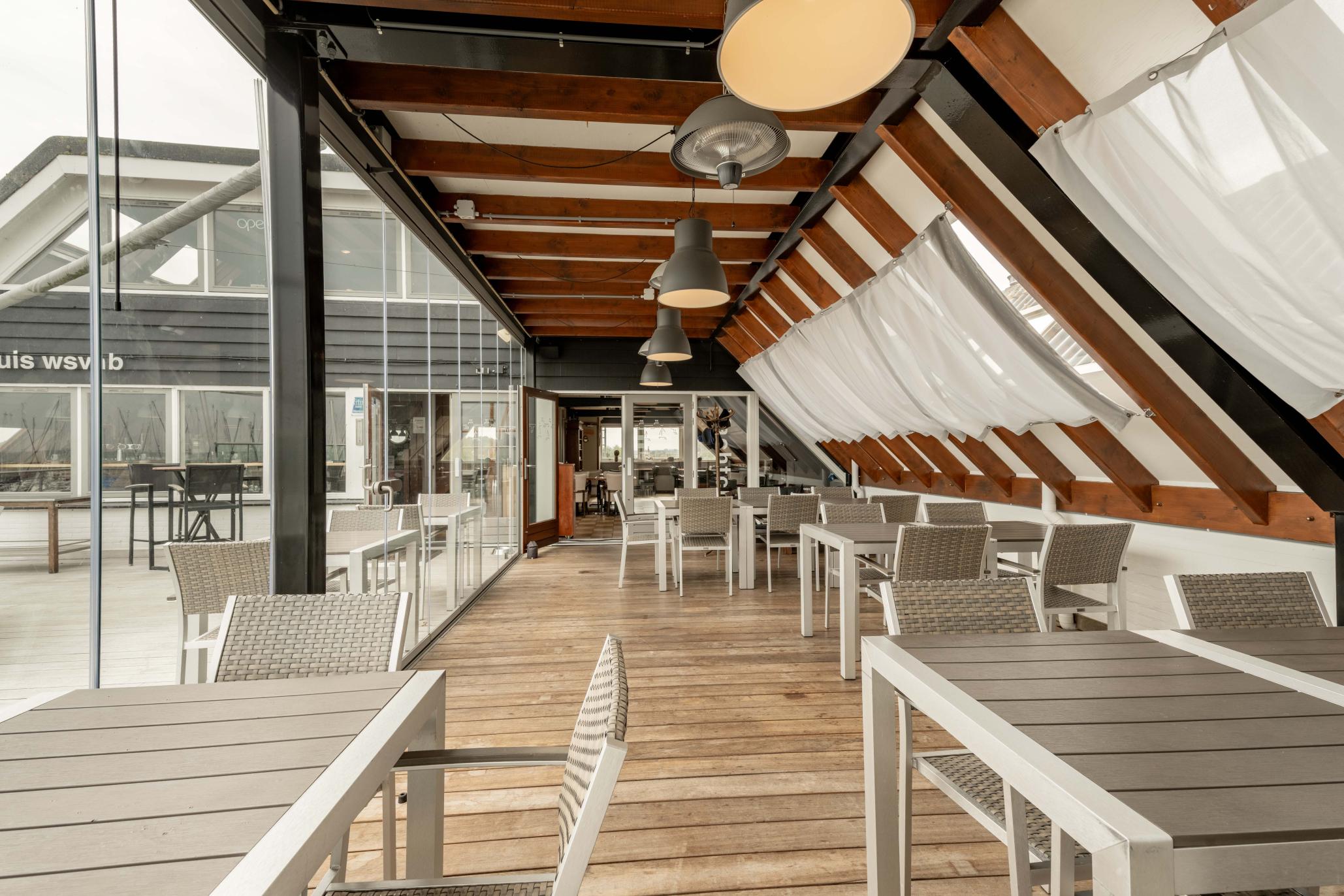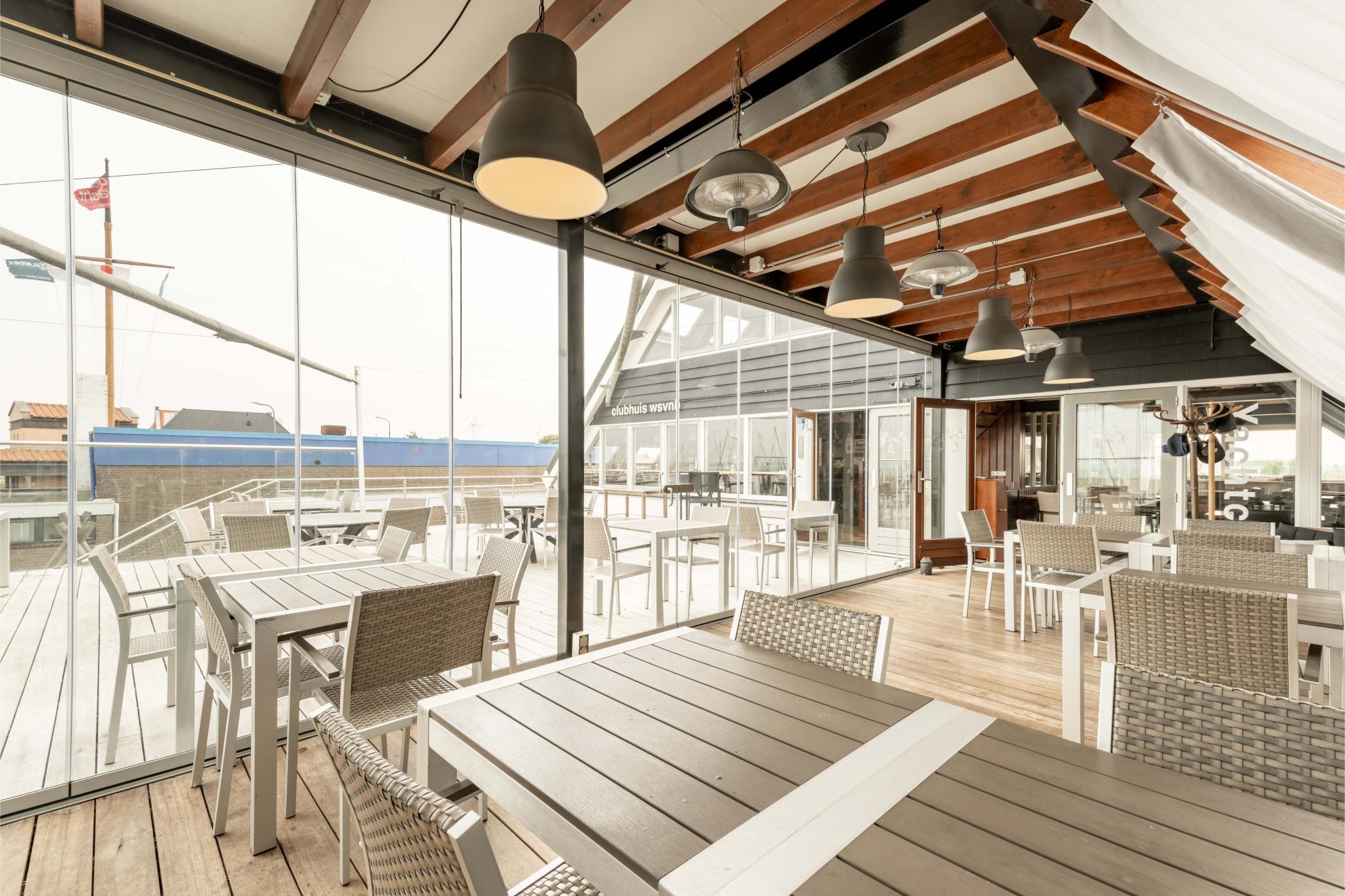 Het clubhuis heeft alles wat je als uitbater je kunt wensen. Op de eerste verdieping vind je zowel de gezellige bar als het restaurant met ongeveer 90 zitplaatsen. Het aansluitende terras biedt plaats aan nog eens 50 gasten. Dankzij de serre kun je flexibel inspelen op het weer. Het uitzicht over de Oosterschelde maakt het plaatje compleet. Er is ook nog een tweede verdieping waar je eventueel gasten kunt ontvangen. De sanitaire voorzieningen zijn op de begane grond. Daar is ook de opslag. Natuurlijk ontvang je iedereen op een vriendelijke, gastvrije manier. Mensen voelen zich thuis omdat je sportiviteit, creativiteit en gezelligheid op een natuurlijke manier weten te combineren. Dat maakt deze plek uniek en daarvoor komen gasten graag terug.