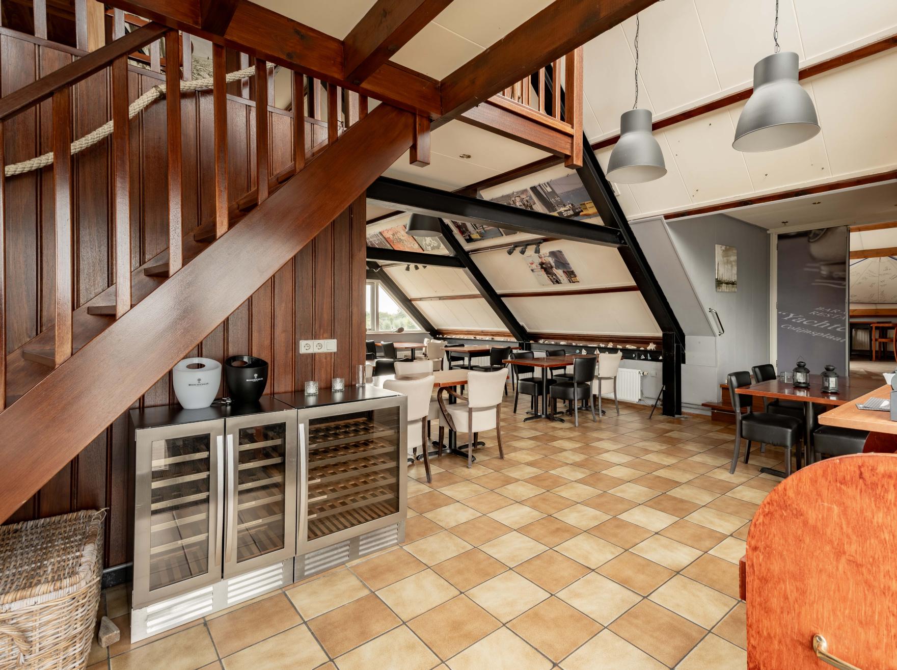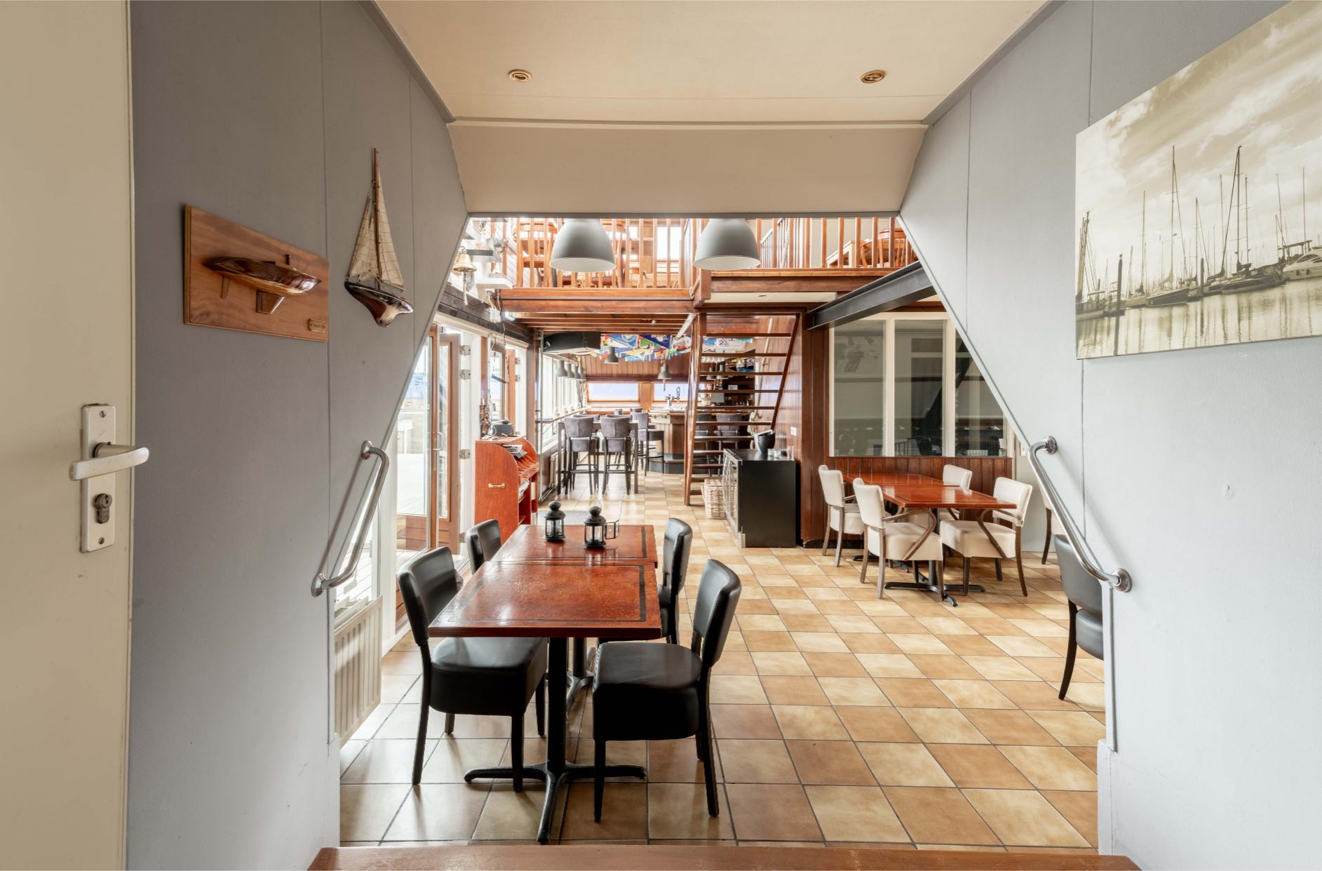 De keuken is praktisch ingericht en voorzien van alle noodzakelijke apparatuur voor een efficiënte exploitatie. Wel is de apparatuur gedateerd. Mogelijk wil je als nieuwe uitbater hier wat verbeteringen aanbrengen. Daarnaast is er een vergaderzaal waar het bestuur en leden vergaderen, maar die je ook kunt gebruiken voor andere groepsontvangsten of evenementen. Het clubhuis is vrij van afnameverplichtingen en brouwerijcontracten. Er is geen overname van personeel. Behoudens de verbeteringen aan de keuken, is het clubhuis instapklaar. Het café-restaurant (inclusief mogelijke huur van inventaris) wordt op basis van een pachtconstructie aangeboden. Een professioneel haventeam verzorgt het beheer van de haven en het clubhuis. Daarin zijn ook het havenkantoor en de voorzieningen voor de vereniging gevestigd. Je krijgt de ruimte om dit clubhuis tot een eigen plek te maken en je culinaire creativiteit te ontplooien.