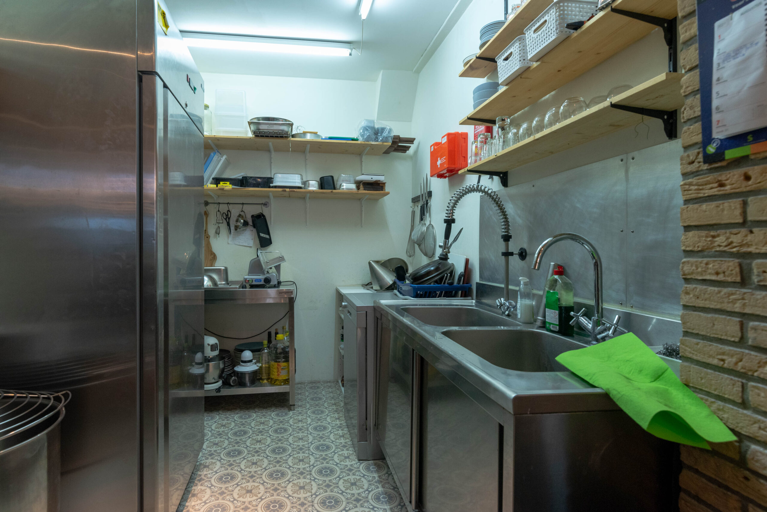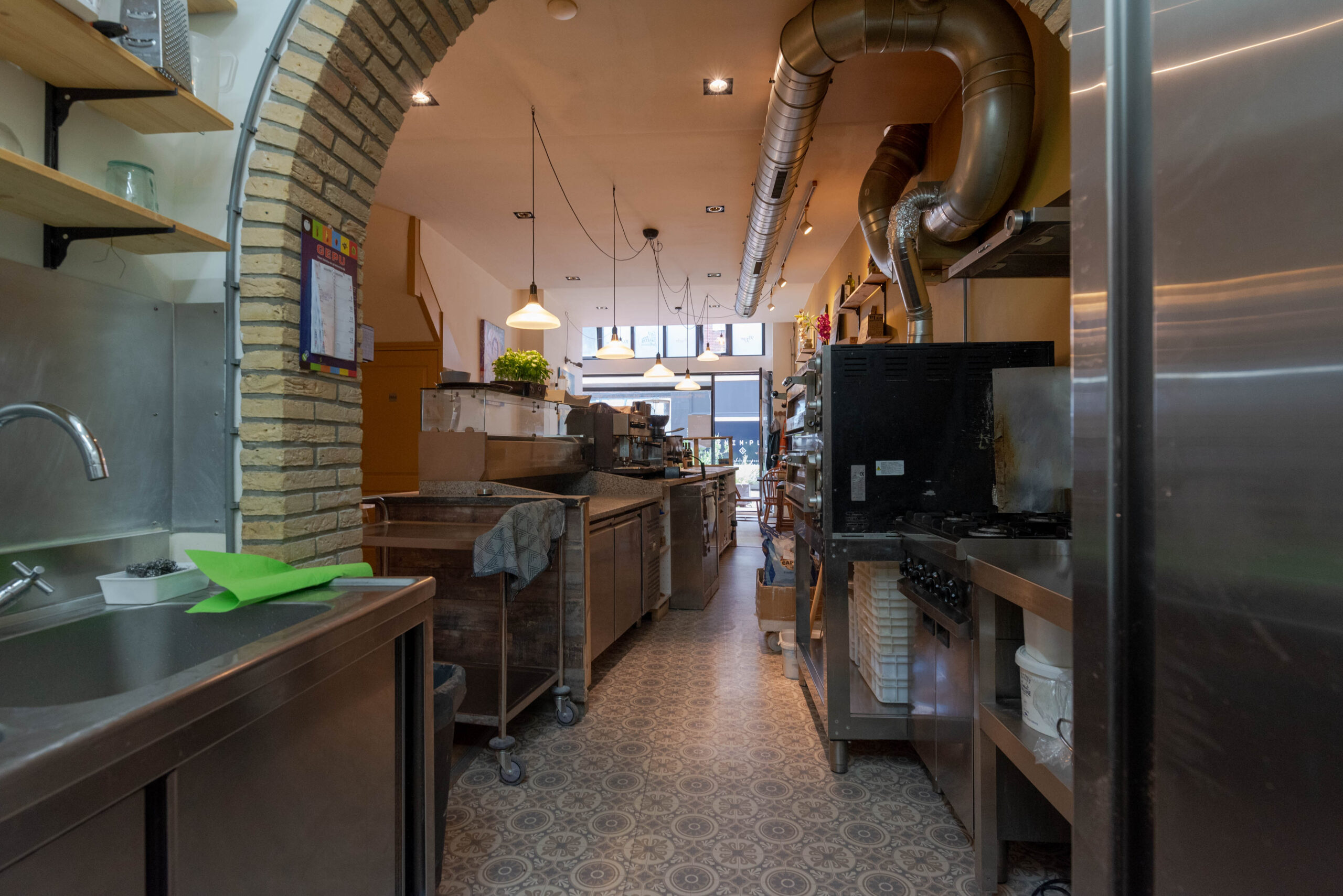 De horecaonderneming (ca. 67 m²) kent nu enkele zitplaatsen. Aan de achterzijde bevindt zich de keuken en de dubbele toiletgroep.