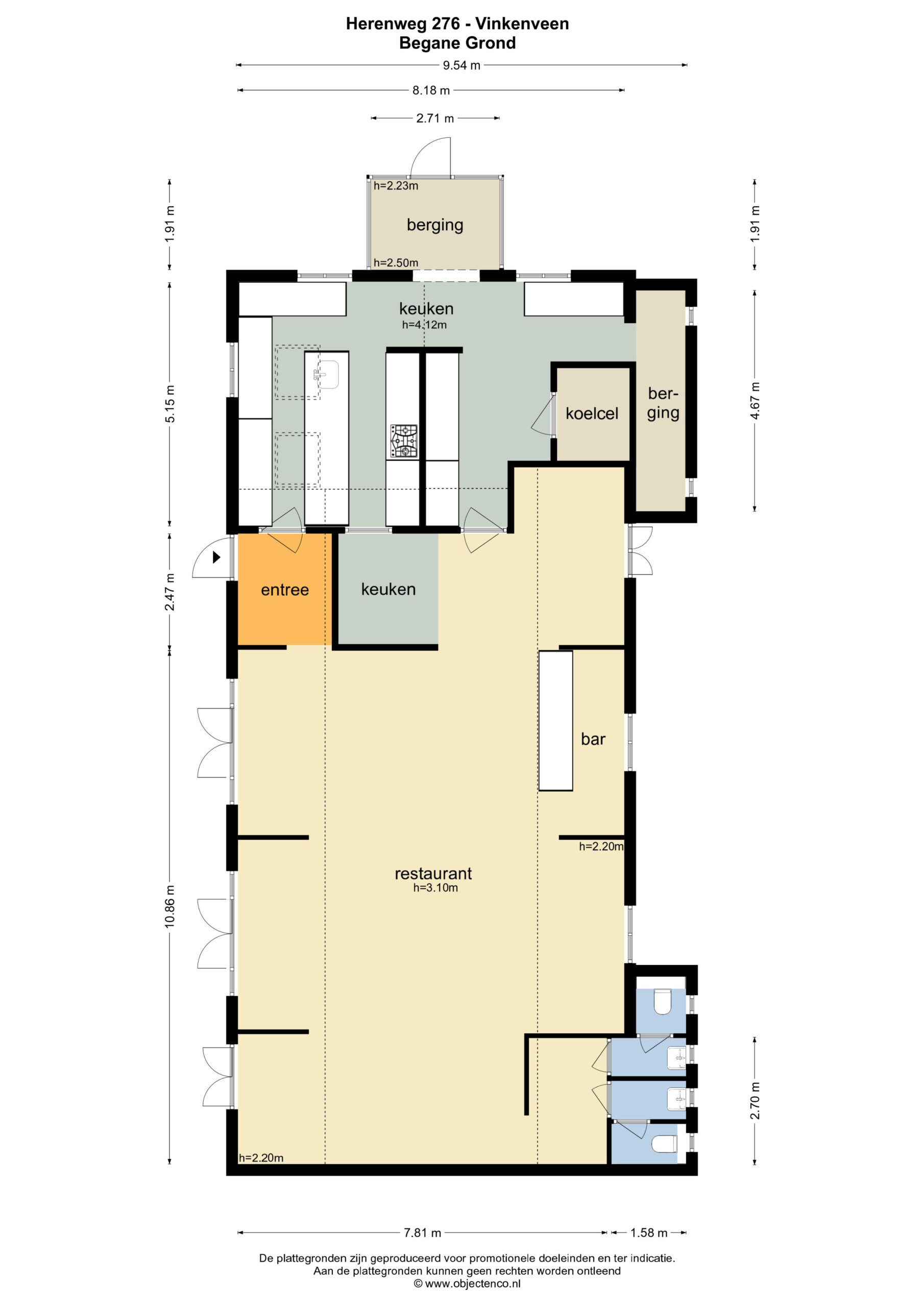 Begane grond: ca. 184 m² BVO (bruto verhuurbaar vloeroppervlak) VVO is ca. 170 m², als volgt verdeeld: