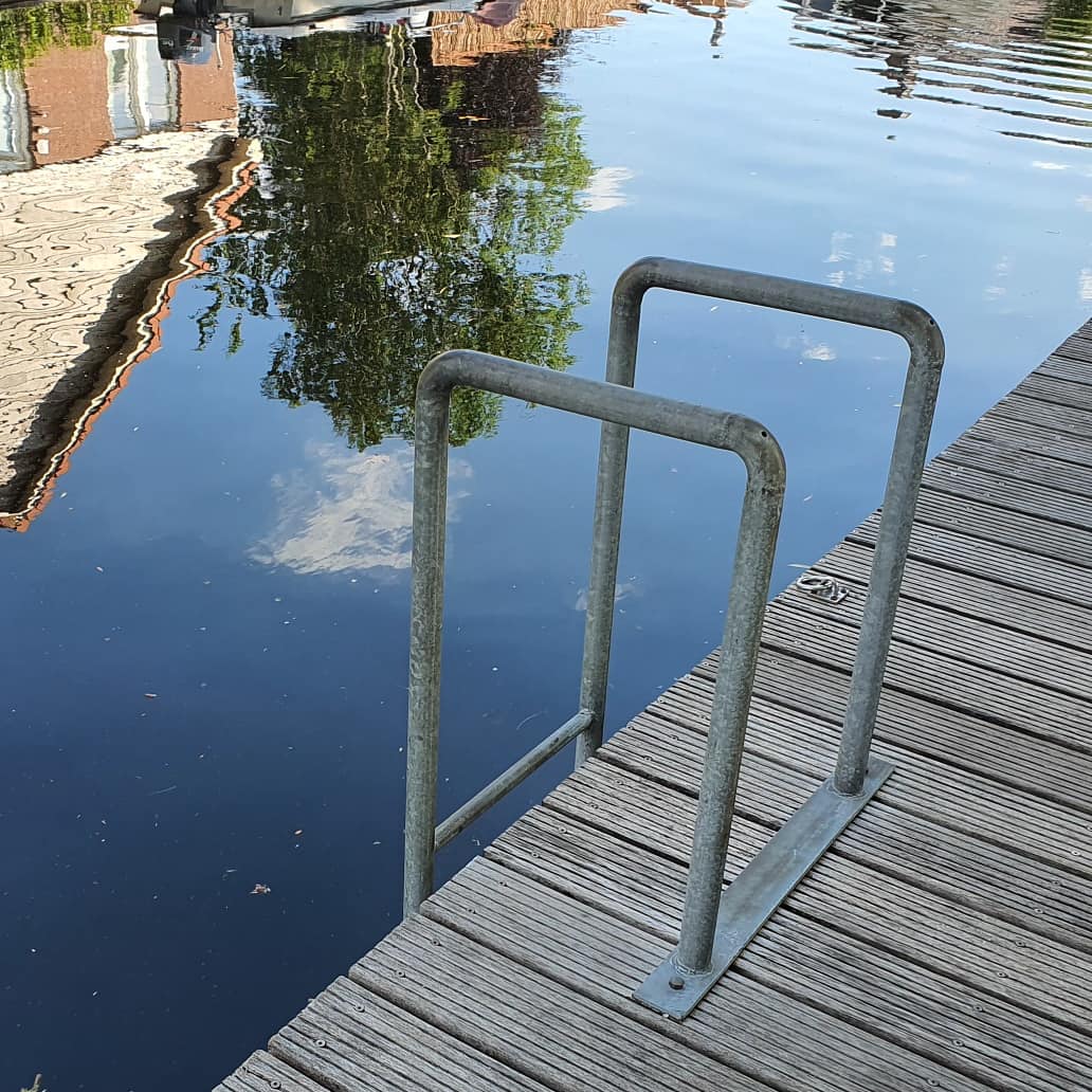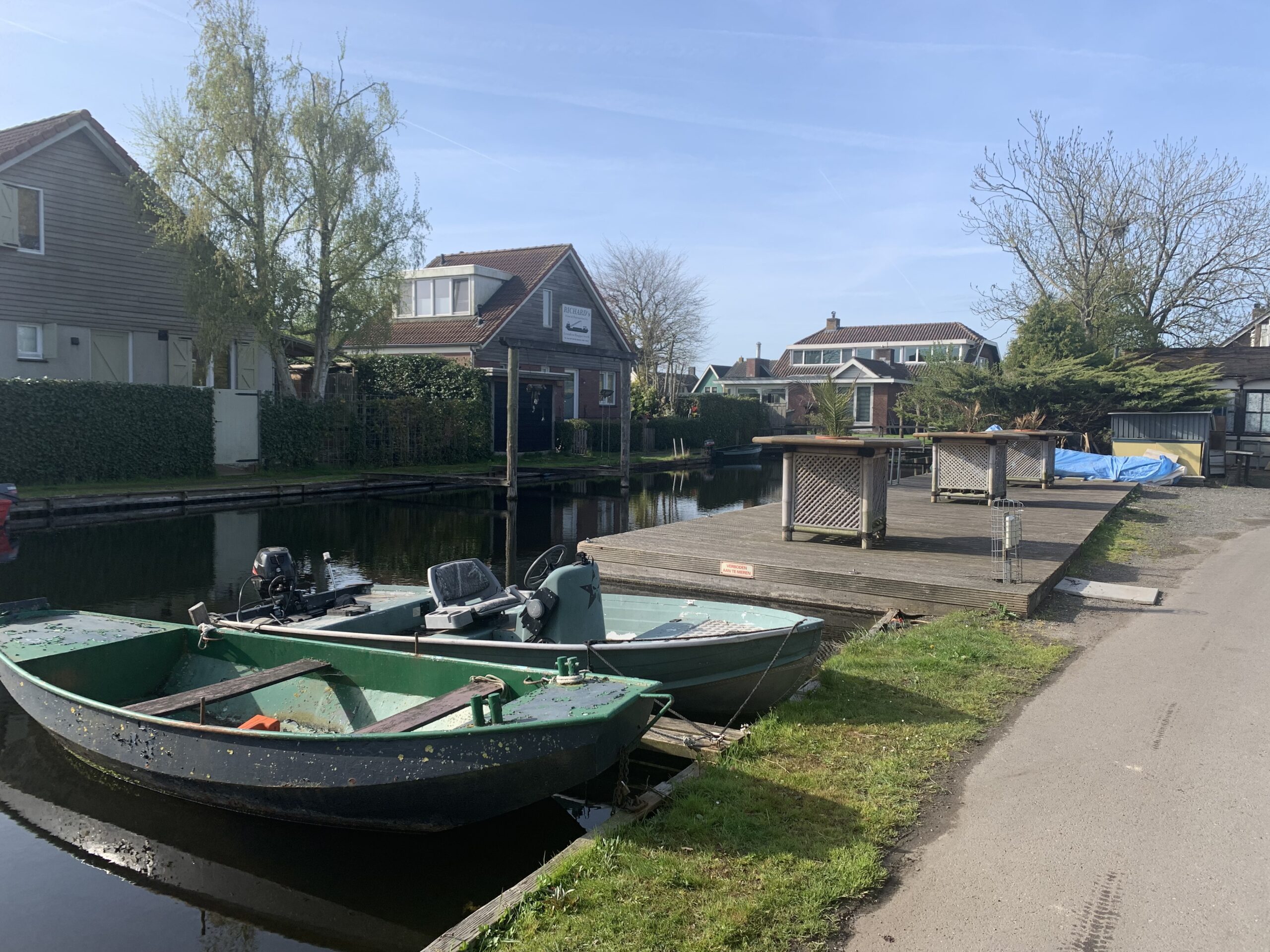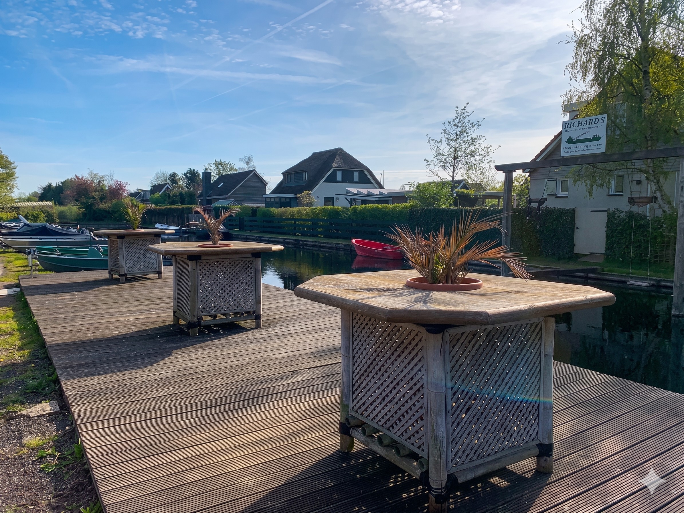 Het terras aan de waterzijde dient ook als boodschappensteiger aanlegplek. Aan de achterzijde nog 1 klein bescheiden waterterras.