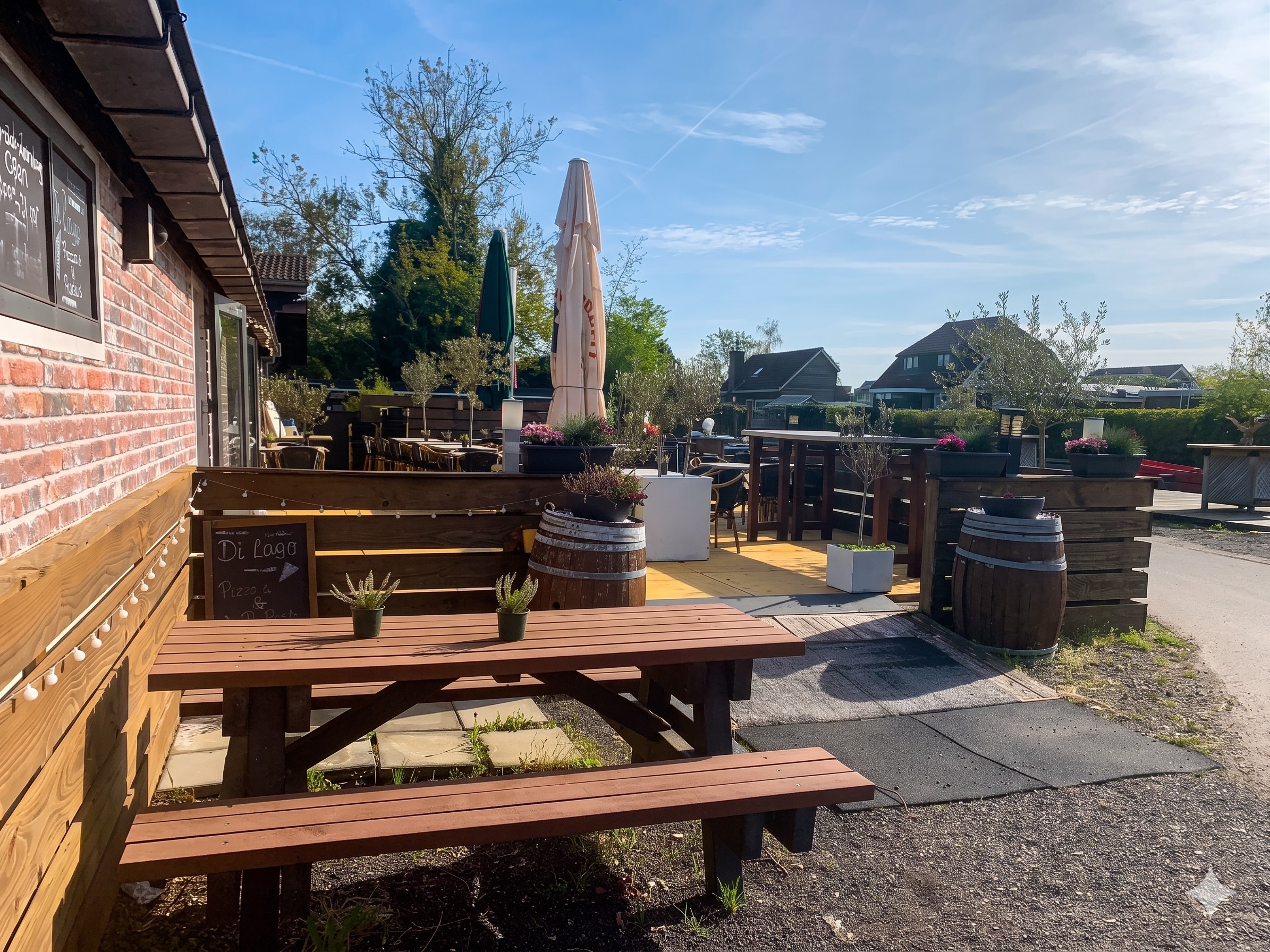 Pizzeria “Di Lago” is een uniek plekje met 2 ruime terrassen, waarvan 1 aan het water. Uniek is de bereikbaarheid per boot van “Di Lago” vanaf de Vinkeveense Plassen.