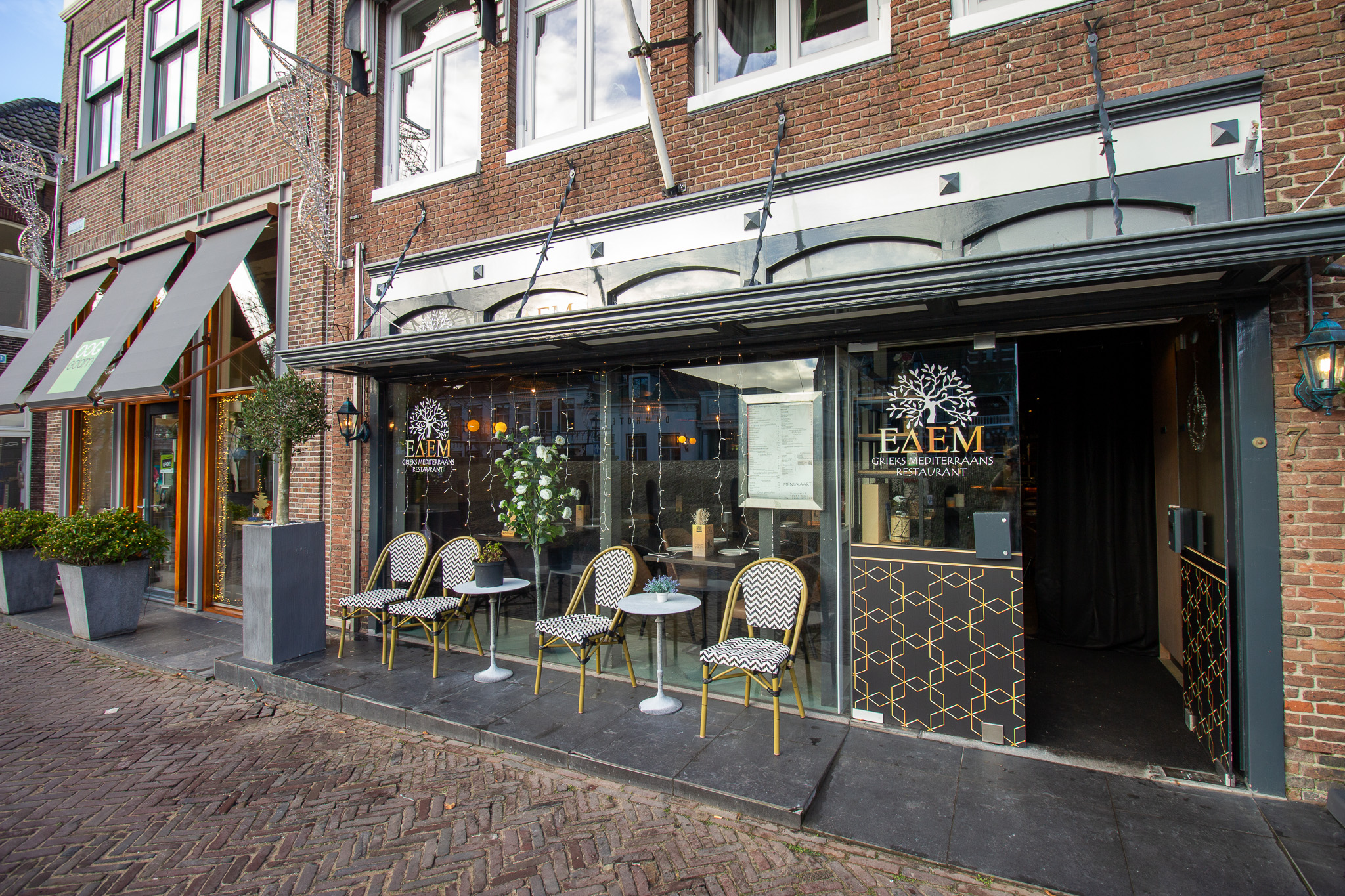 Restaurant Edem is een sfeervol mediterraans restaurant met op dit moment een specialisatie in de Griekse keuken, gelegen op een centrale en goed zichtbare locatie in het hart van Edam. De warme, uitnodigende inrichting creëert een ontspannen ambiance waarin gasten volledig tot rust komen, midden in het historische centrum van de stad.