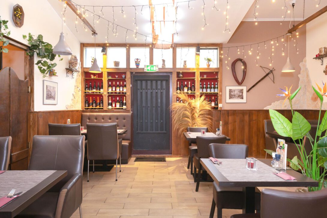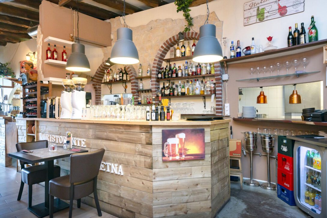 De rechterzijde is voorzien van zitplaatsen, aan de linkerzijde bevindt zich de semi-open keuken en de bar. De ruimte binnen biedt plaats aan ca. 50 gasten. Voor de plattegrond tekening wordt verwezen naar de bijlage.