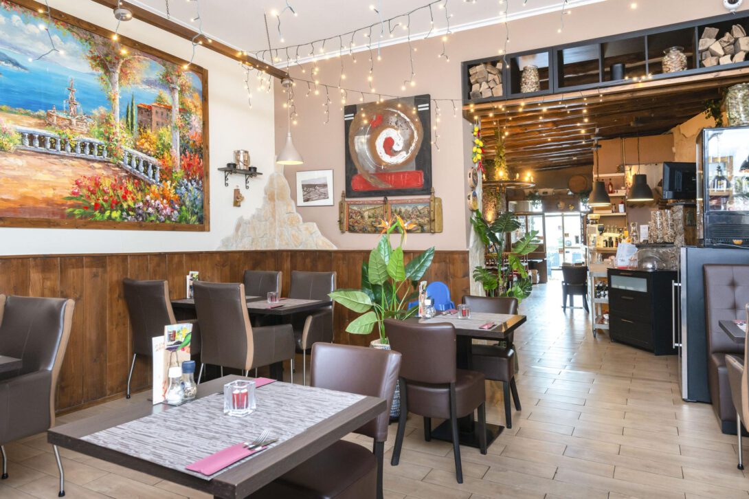 restaurant binnen. Het terras heeft ca. 80 zitplaatsen.