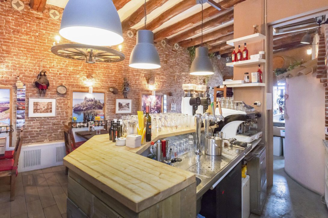 Het pand (150 m²) bestaat uit een sfeervolle bedrijfsruimte met hoge plafonds, zaal achter, ruim opgezette keuken, kelder en een groot terras een de kade. Het biedt 50 zitplaatsen binnen en 80 op het terras. De inrichting omvat een entree, bar, open keuken, zitruimte, toiletgroep en opslag. USP’s: hoekpand met veel licht, centrale locatie, ruim terras.