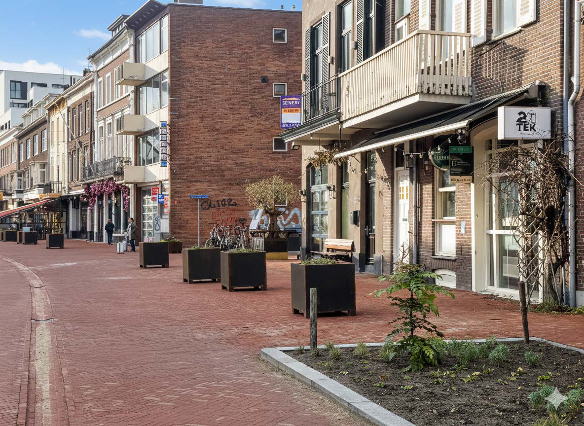 Verschillende (horeca)bedrijven, winkels, woningen, appartementen en kantoren.