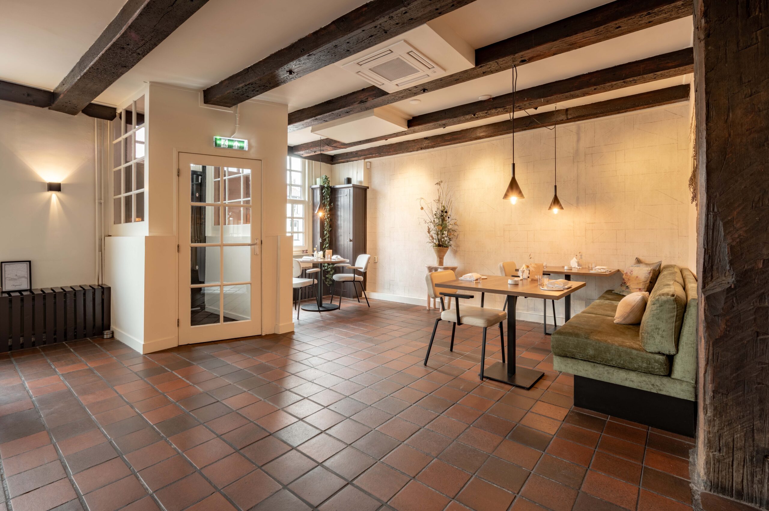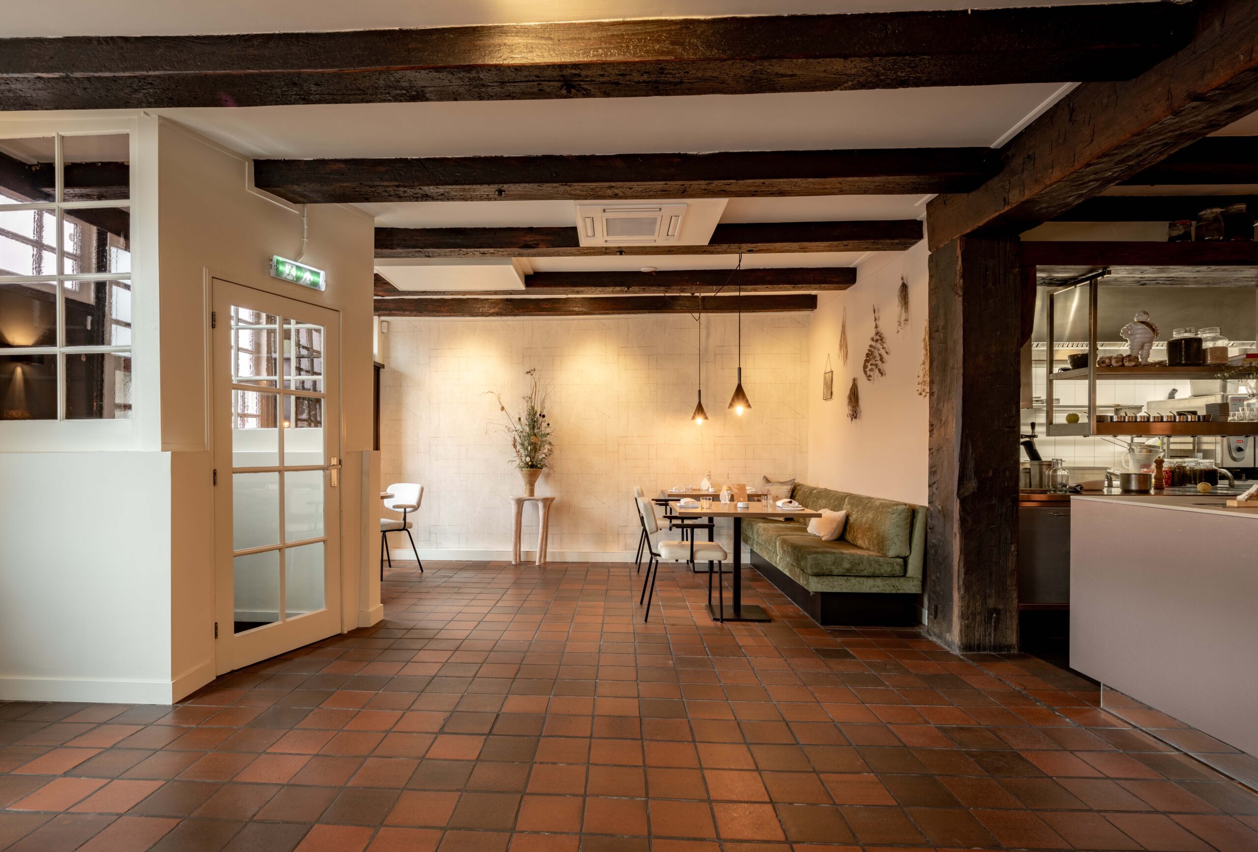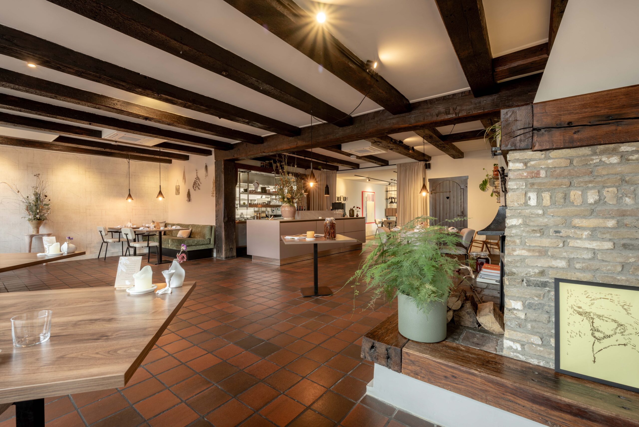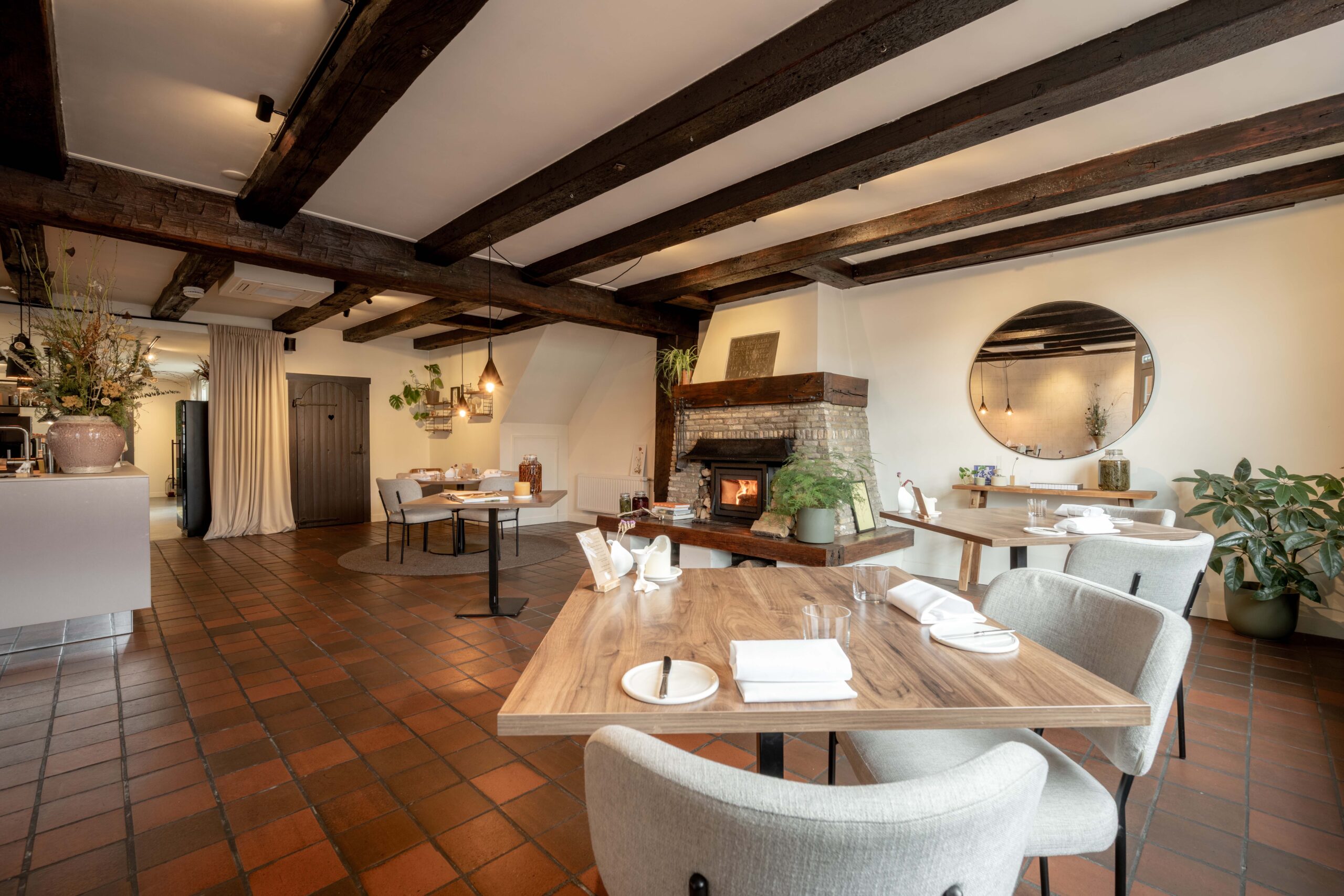 Dit restaurant ligt direct aan de Hoofdstraat en heeft een vriendelijke uitstraling, met kleine ruitjes in de ramen en een sierlijke dakkapel. Het terras aan de voorzijde is ongeveer 60 vierkante meter groot. De voordeur van het restaurant zit in het midden van het pand. Wie binnenkomt, stapt direct het mooie, intieme restaurant binnen. Hier valt gelijk de sfeervolle, authentieke schouw met inzethaard op. Momenteel staan hier ongeveer tien tafels, maar deze opzet is opvallend ruim, zodat meer tafels zeker mogelijk is. De bar bevindt zich vrijwel in het midden van de zaak en is voorzien van onder andere een drankenkoeling, wasbak, lades en opbergruimtes voor glaswerk en bestek. Vanaf de bar is er zicht op de open keuken. Achter in het restaurant bevindt zich een grote eettafel en daarachter de aparte heren- en damestoiletten en een vestiaire.
