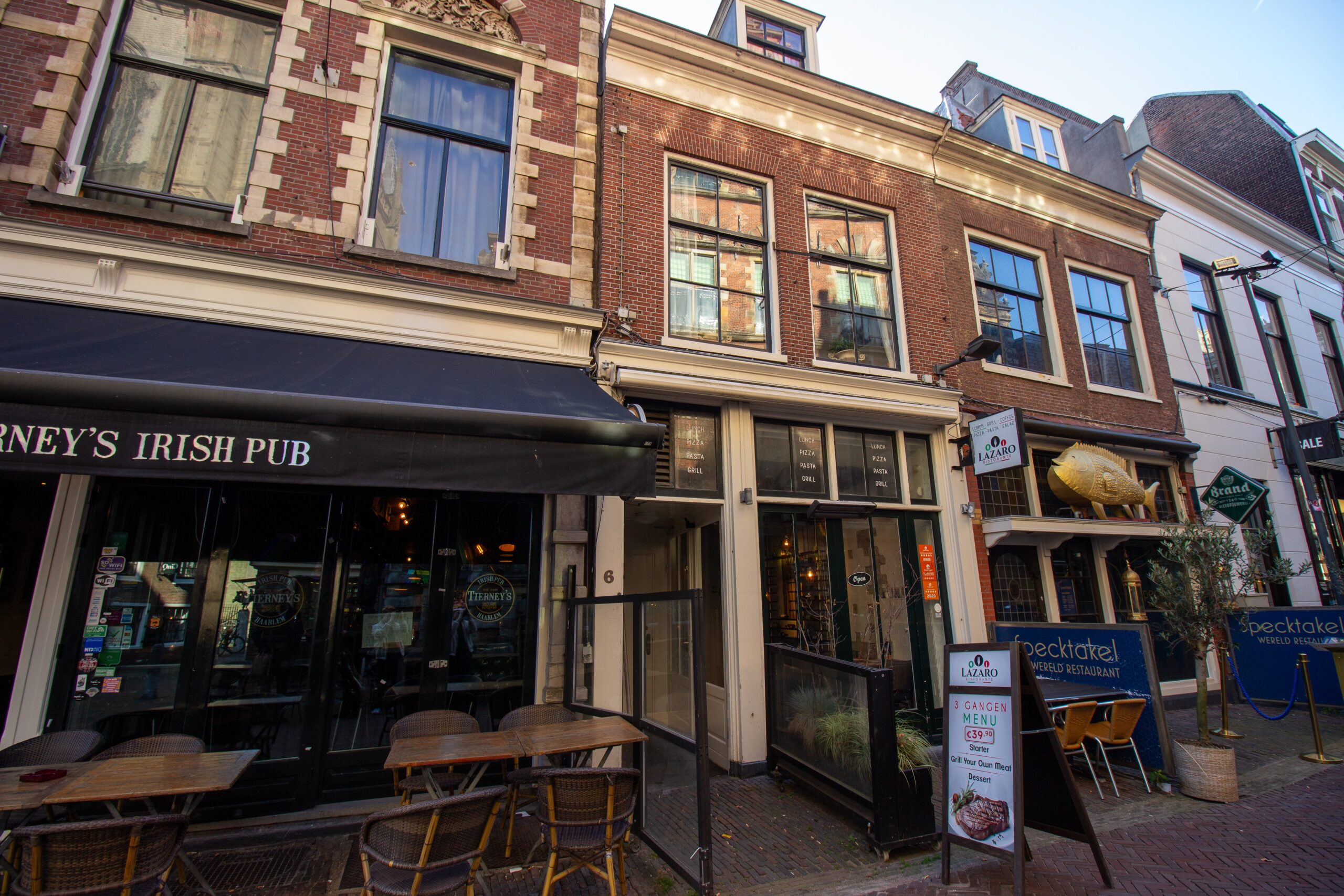 Ristorante Lazaro ligt in het altijd gezellige centrum van Haarlem. Het betreft een tussengelegen (horeca) bedrijfspand op een A1 locatie midden in de binnenstad van Haarlem. Het object ligt aan de Spekstraat, de straat tussen de Grote Kerk aan de Grote Markt en de populaire hoofd winkelstraat de Grote Houtstraat.