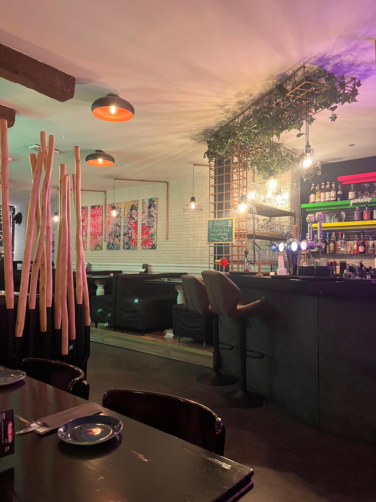 Het bedrijf is werkelijk sleutelklaar ingericht en heeft een moderne en warme uitstraling. Als u het bedrijf binnen loopt, valt direct de gezellige inrichting op. Het restaurant is verdeeld in diverse gezellige zitjes. Achter in de zaak is de grote en volledig ingerichte keuken. Naast de keuken is nog een magazijn en het pand heeft een kelder op stahoogte. Alle apparatuur en inventaris is in eigendom, m.u.v. de tapinstallatie en de koffiemachine.