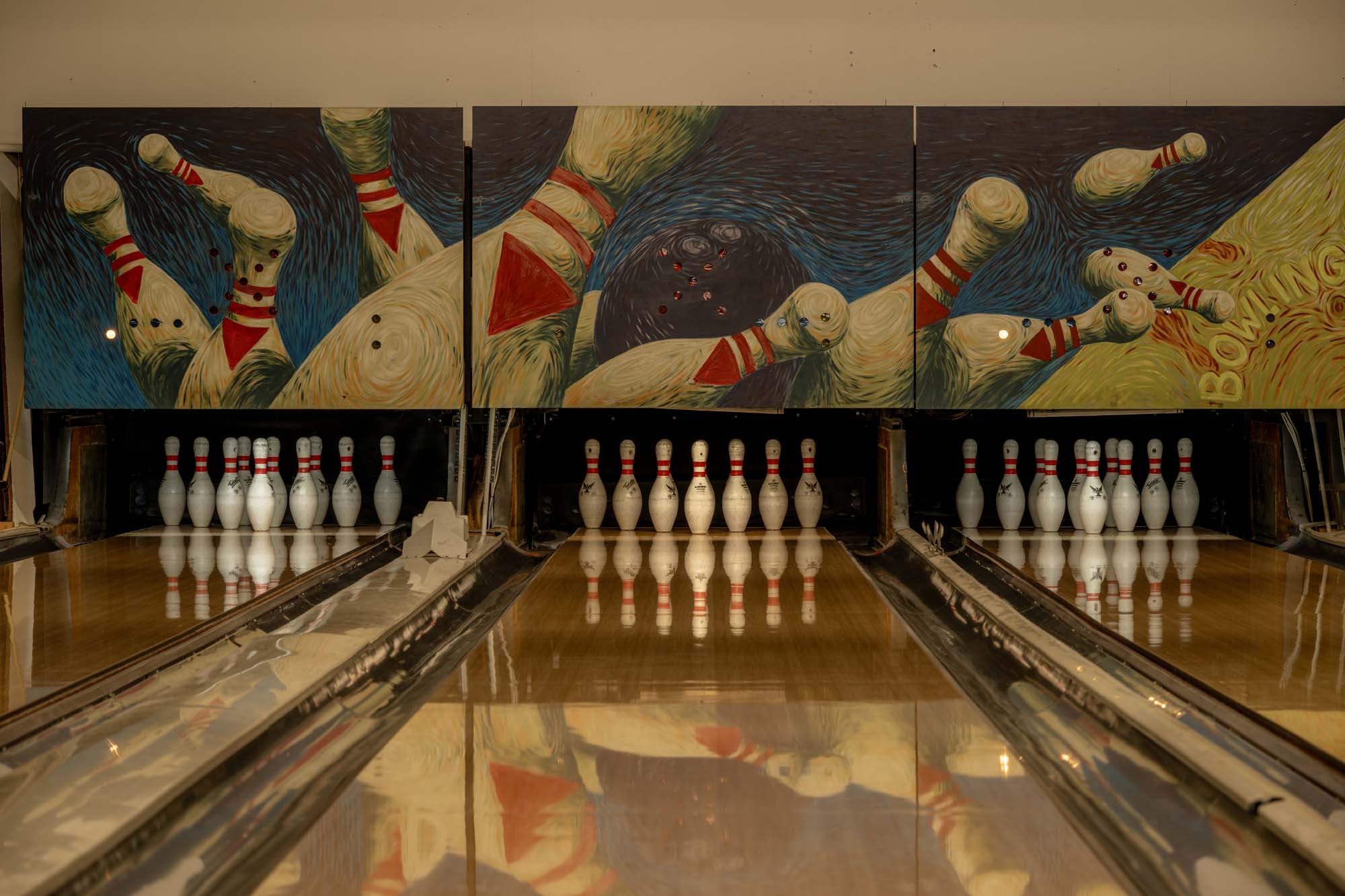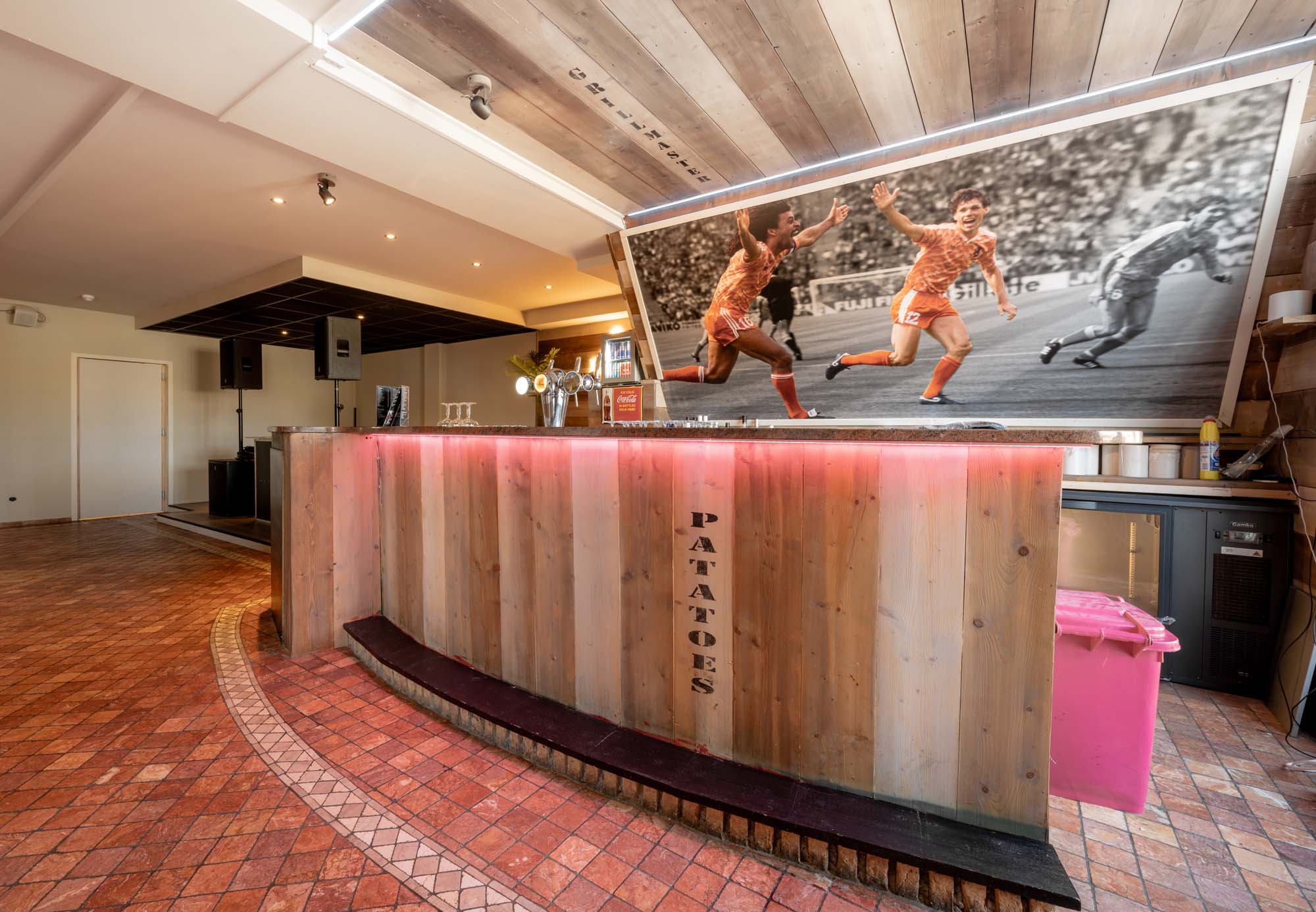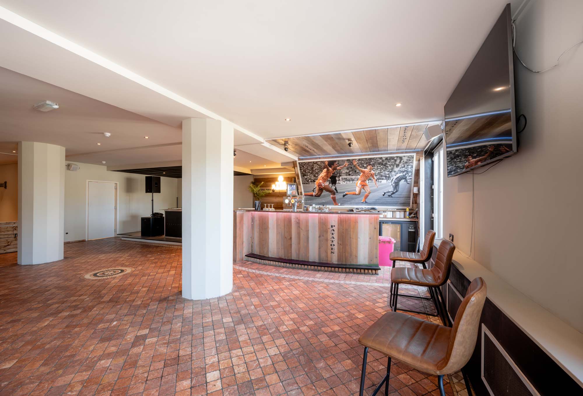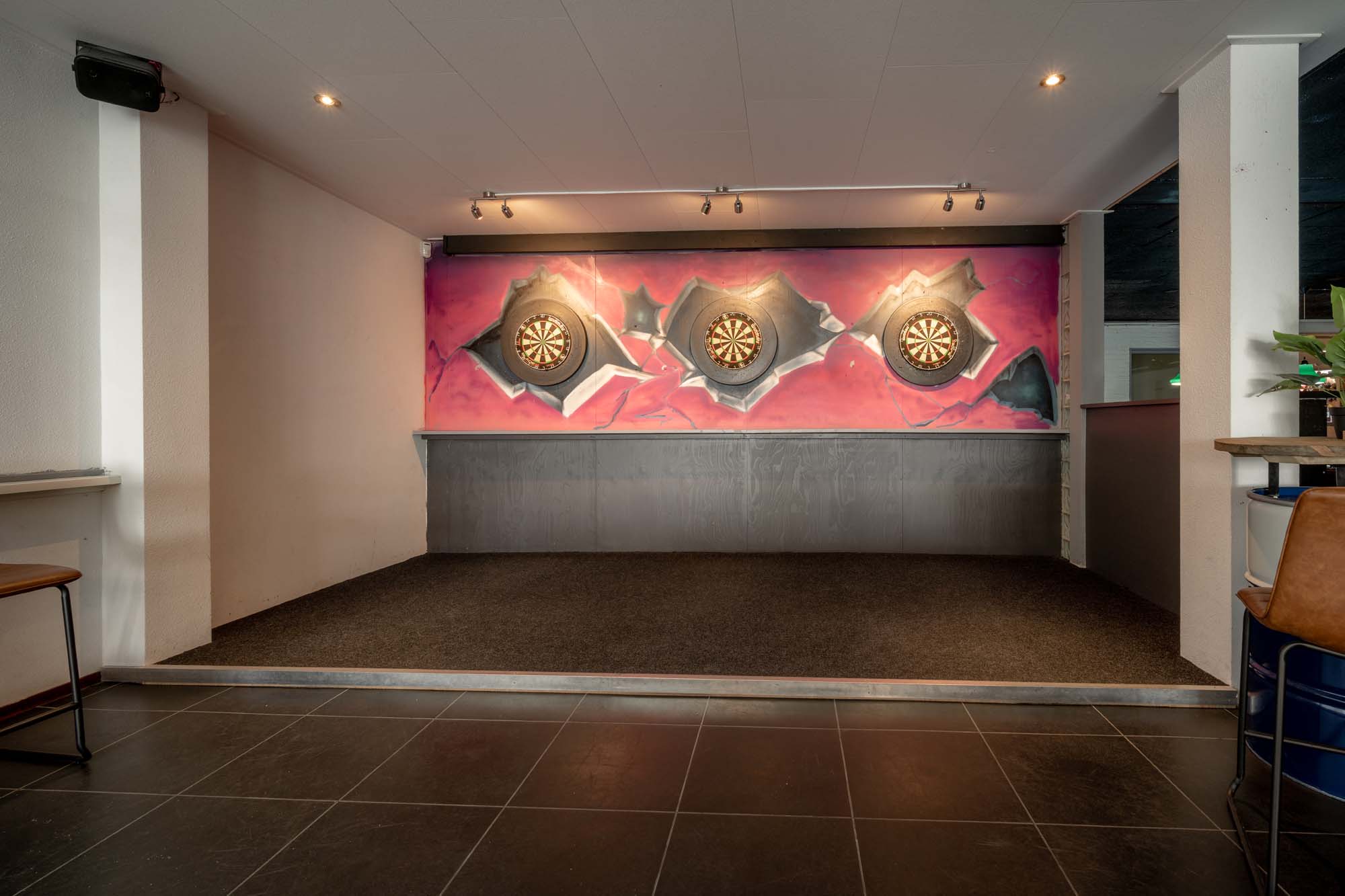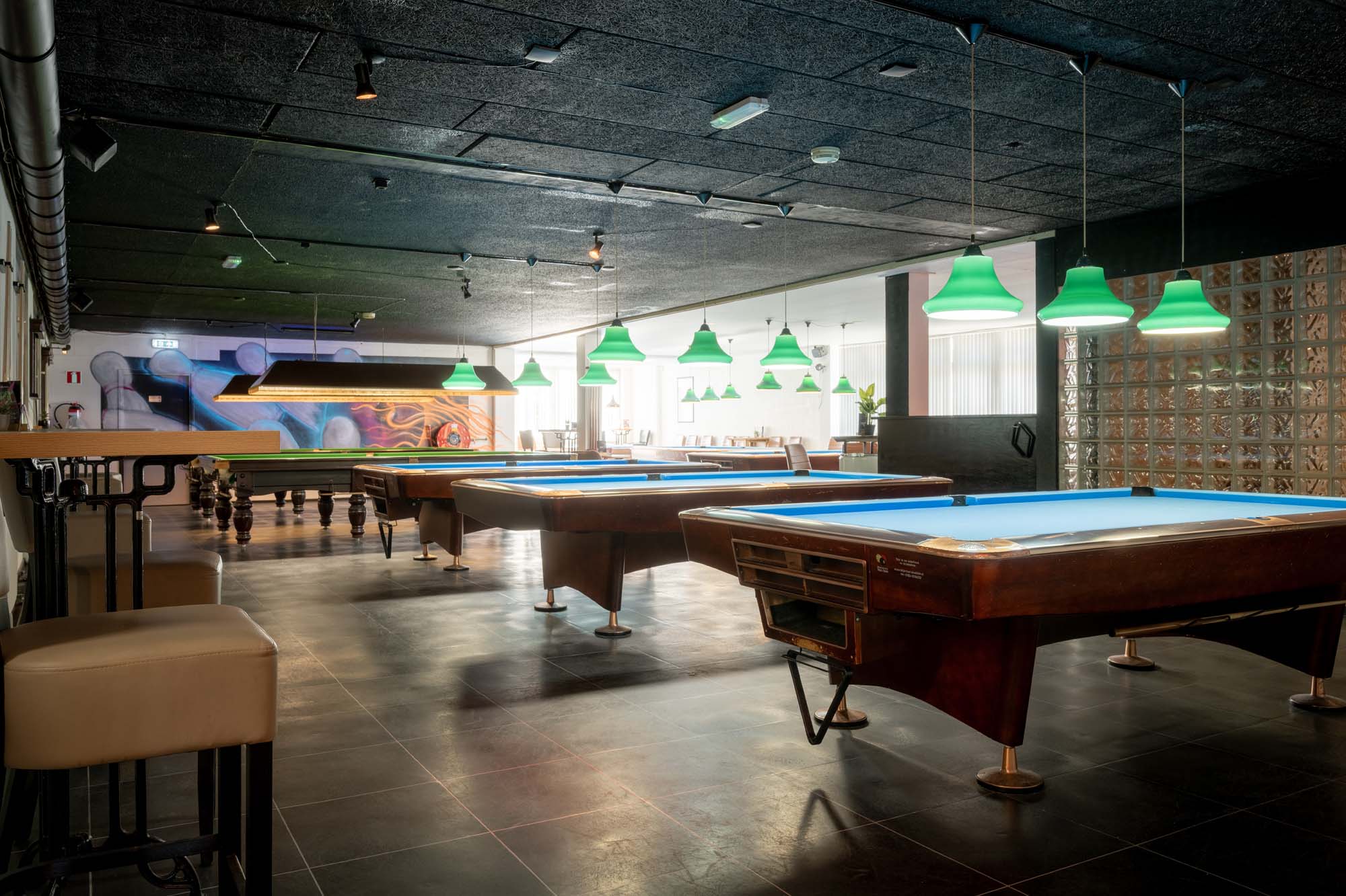Wie de trap naar de eerste verdieping neemt en rechtdoor loopt komt in een grote ruimte van maar liefst 800 m2. Hier vind je 4 bowlingbanen, 5 pooltafels, 2 snookertafels, 1 biljart en 3 dartborden. Tal van sporten dus op één plek. De bowlingbanen zijn zodanig in trek dat reserveren nodig is. Wat betreft de keusporten, kun je binnenlopen en kijken welke tafel vrij is. Darten kan gratis op elk bord dat vrij is. In deze ruimte vind je daarnaast een aantrekkelijke bar van waaruit iedereen bediend wordt. Daar staat onder andere een goede koffiemachine, muziekinstallatie en vitrinekoelkasten. Je vindt hier een frituurhoek voor de snacks die gasten bij hun drankje kunnen bestellen.