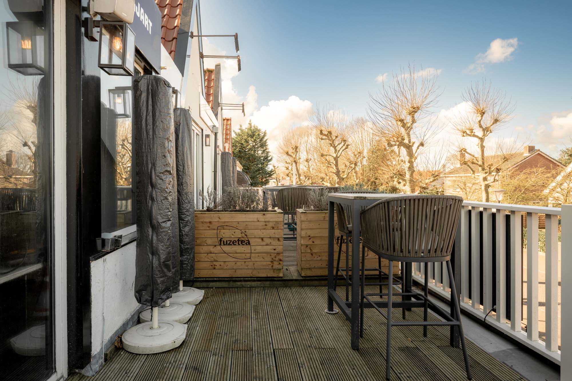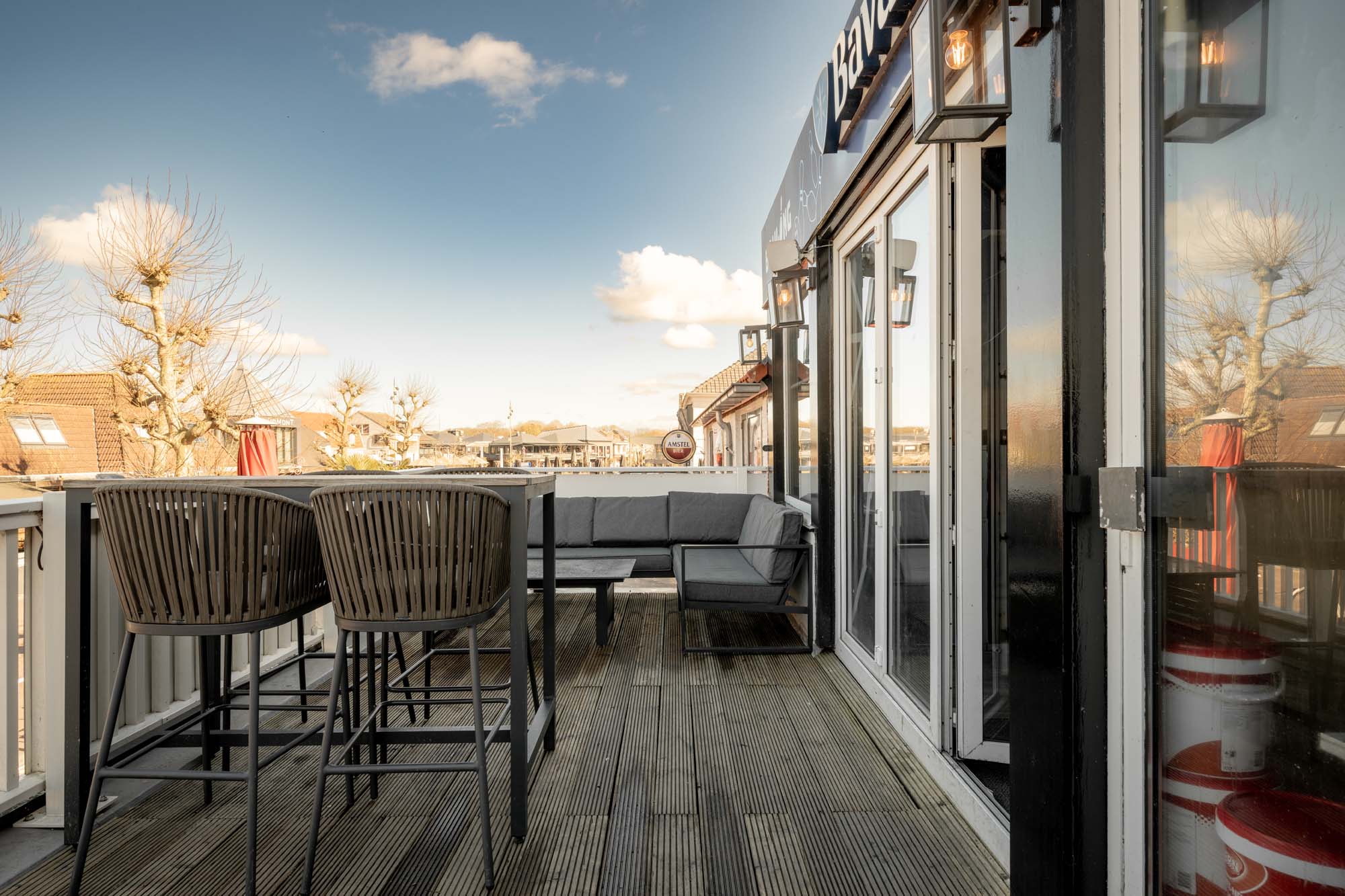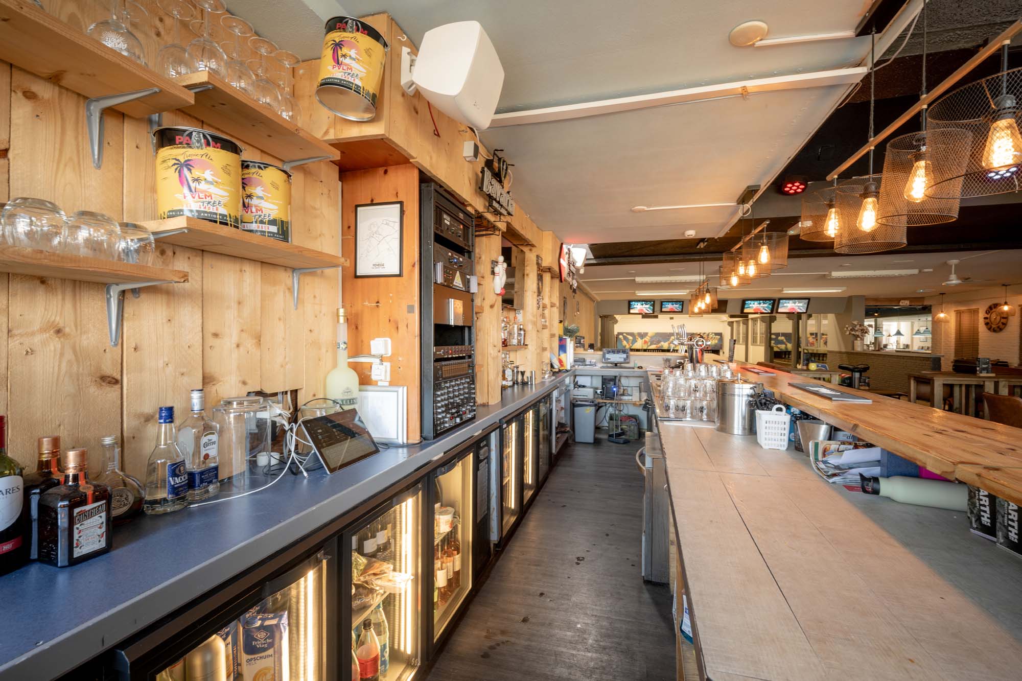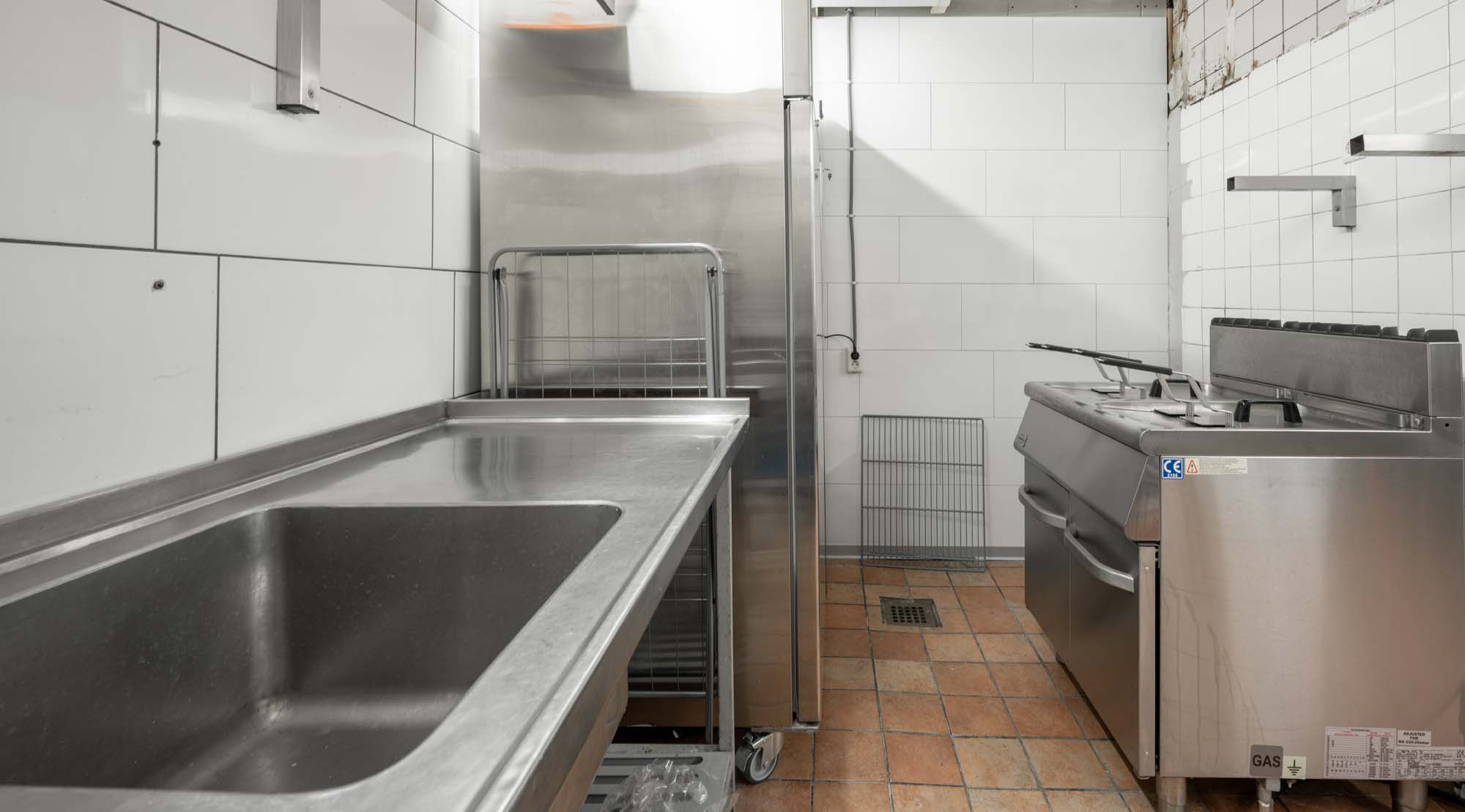 Ga je vanuit de hoofdingang bovenaan de trap rechts, dan kom je in de ruimte die 1 à 2 keer per week gebruikt wordt voor feesten en partijen. Deze kant van de zaak heeft een aparte vergunning voor een restaurantexploitatie. De huidige eigenaren maken daar momenteel geen gebruik van. Hier vind je een flinke bar met onder andere vitrine koelkasten, tapinstallatie met drie aansluitingen, muzieksysteem en een led/discolichtensysteem. De ruimte is recent opgeknapt, maar is, gelet op het huidige gebruik, sober ingericht. Elk feest wordt nu op maat gedecoreerd. Verder is er een keuken, waar onder andere een frituur, koelcel, vriezer, koelbanken en een afwashoek staan. Natuurlijk zijn er aansluitingen voor meer keukenapparatuur. Alle ruimte dus om hier als horecaondernemer je eigen restaurantplannen en -ideeën waar te maken. Daarvoor is zeker nog ruimte in Renesse. Naast de binnenruimte is er tevens een dakterras waar plaats is voor ongeveer 30 gasten.