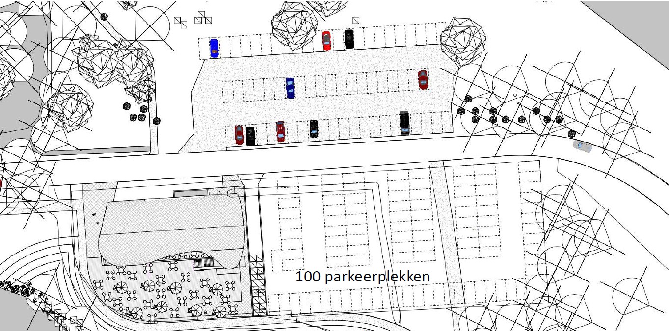 Op eigen terrein zijn ca. 100 parkeerplaatsen. Op het naastgelegen openbare parkeerterrein zijn ca. 200 parkeerplaatsen.
