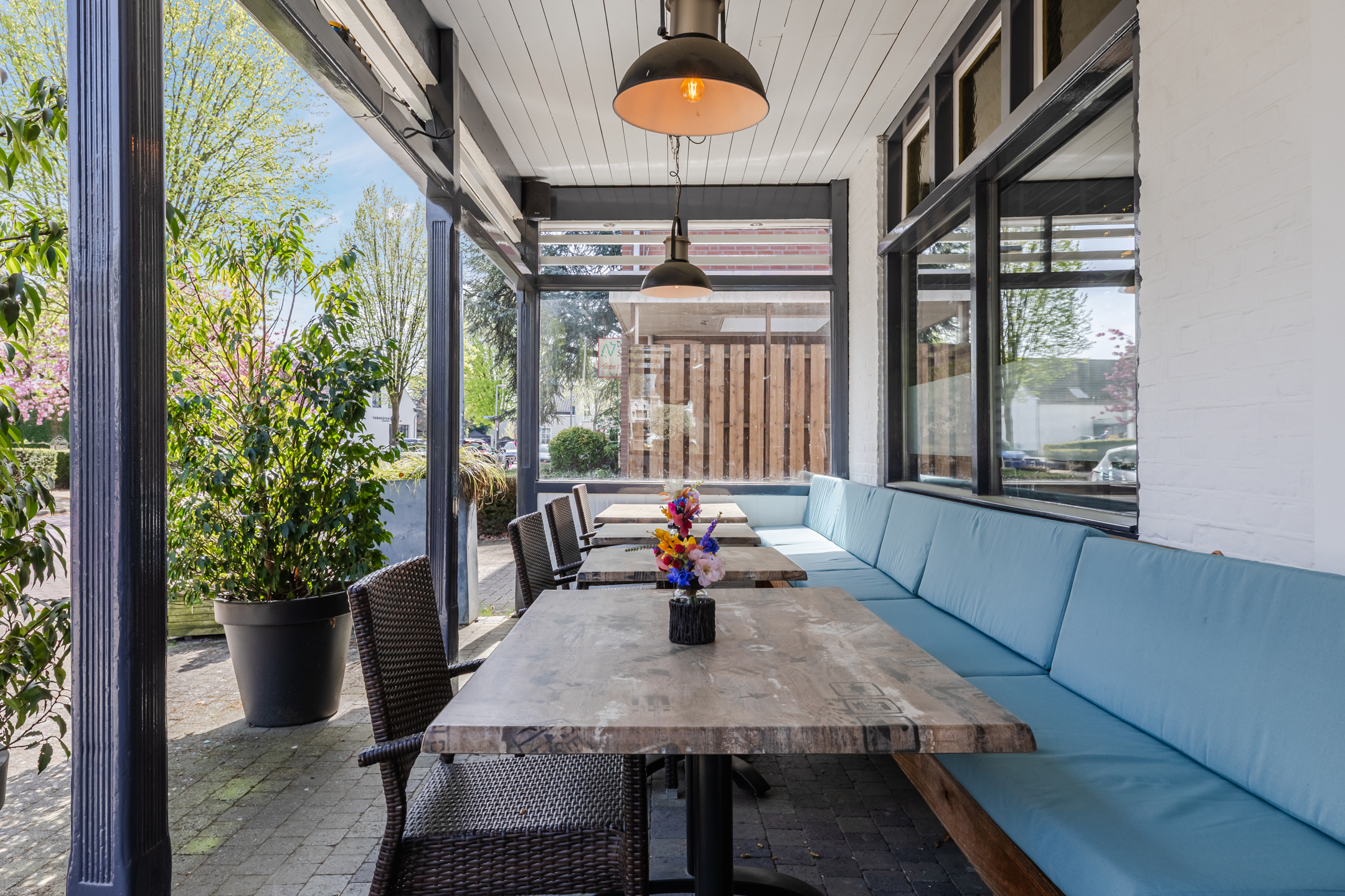 Het pand heeft een fijne indeling met een goed ingerichte zaal en een volledig uitgeruste keuken. Maar de echte blikvanger is het terras aan de achterkant: ruim, rustig en afgeschermd van de straat. Op een mooie dag is dit dé plek waar iedereen wil zitten.