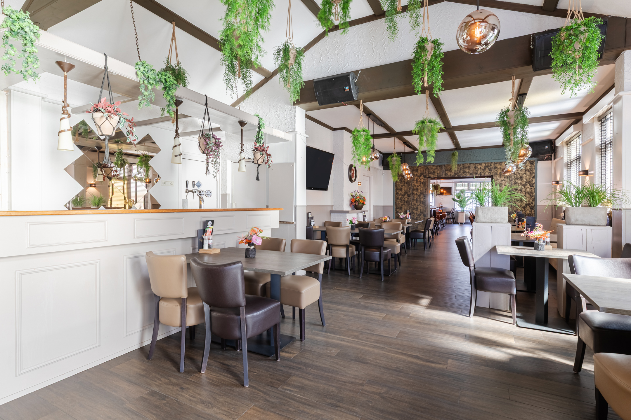 In totaal zijn er binnen 90 zitplaatsen aanwezig. Op het terras aan de voorzijde zijn 14 zitplaatsen aanwezig. Terras aan de achterzijde circa 75 zitplaatsen. Er is ruimte om zowel binnen als buiten uit te breiden in het aantal zitplaatsen.