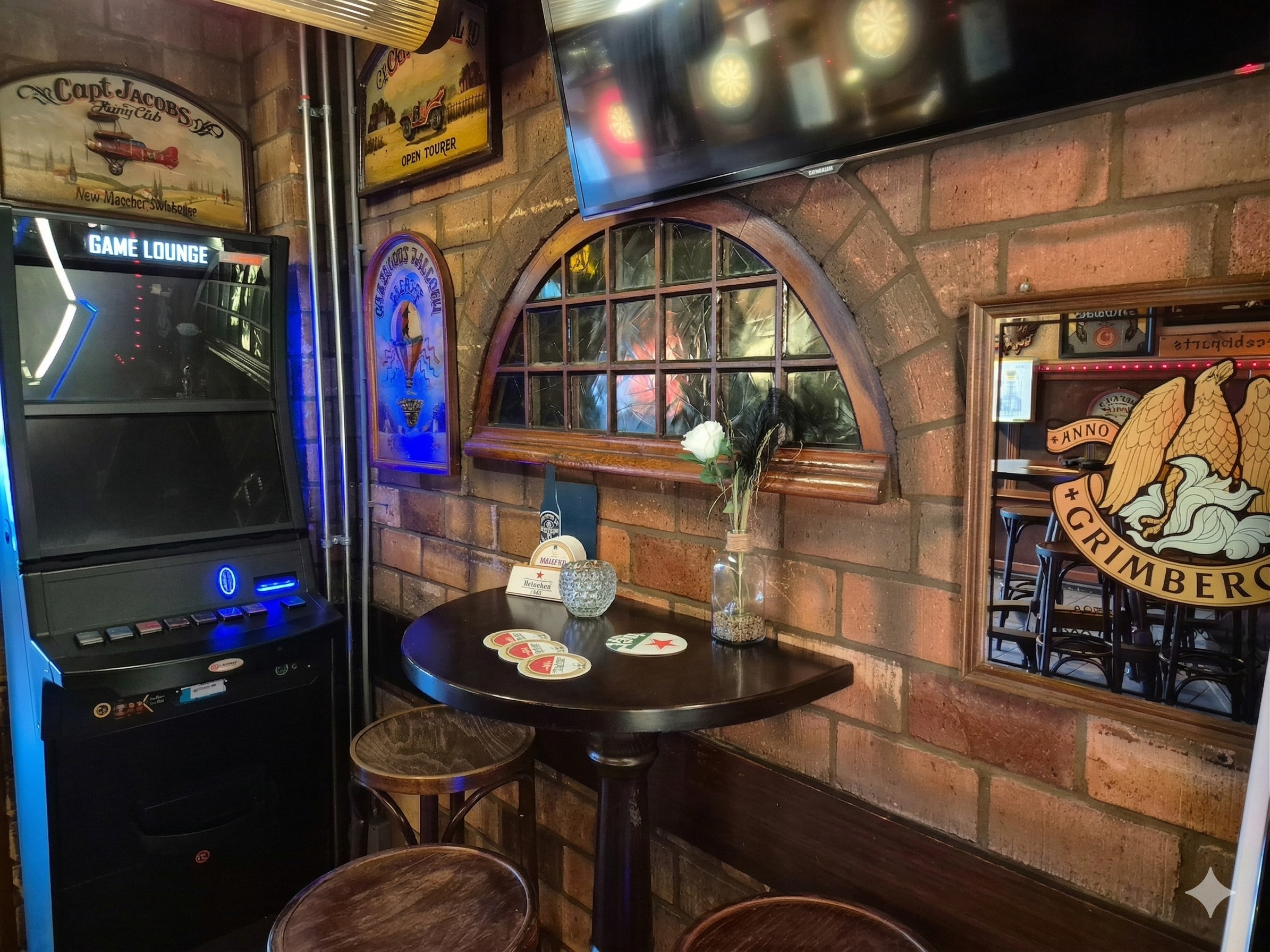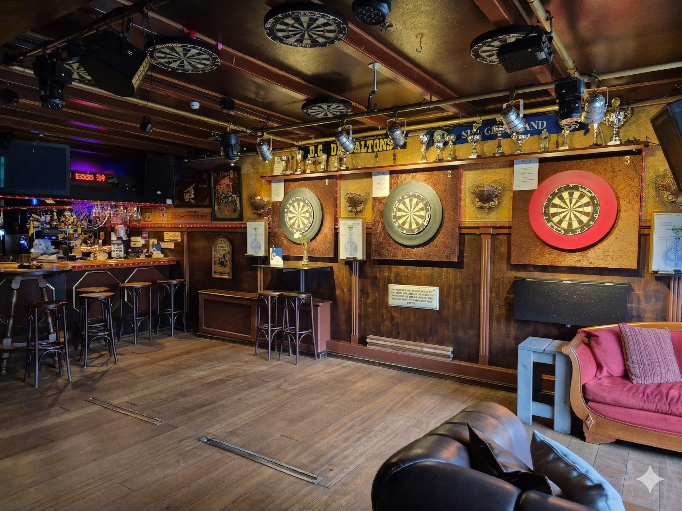 Het café beschikt over een warme en authentieke uitstraling met een traditionele baropstelling, diverse zitgelegenheden en meerdere dartbanen. Deze voorzieningen dragen bij aan een vaste en loyale klandizie. De inrichting sluit aan bij het klassieke concept van een bruin café en richt zich zowel op dorpsbewoners als op recreatieve passanten.