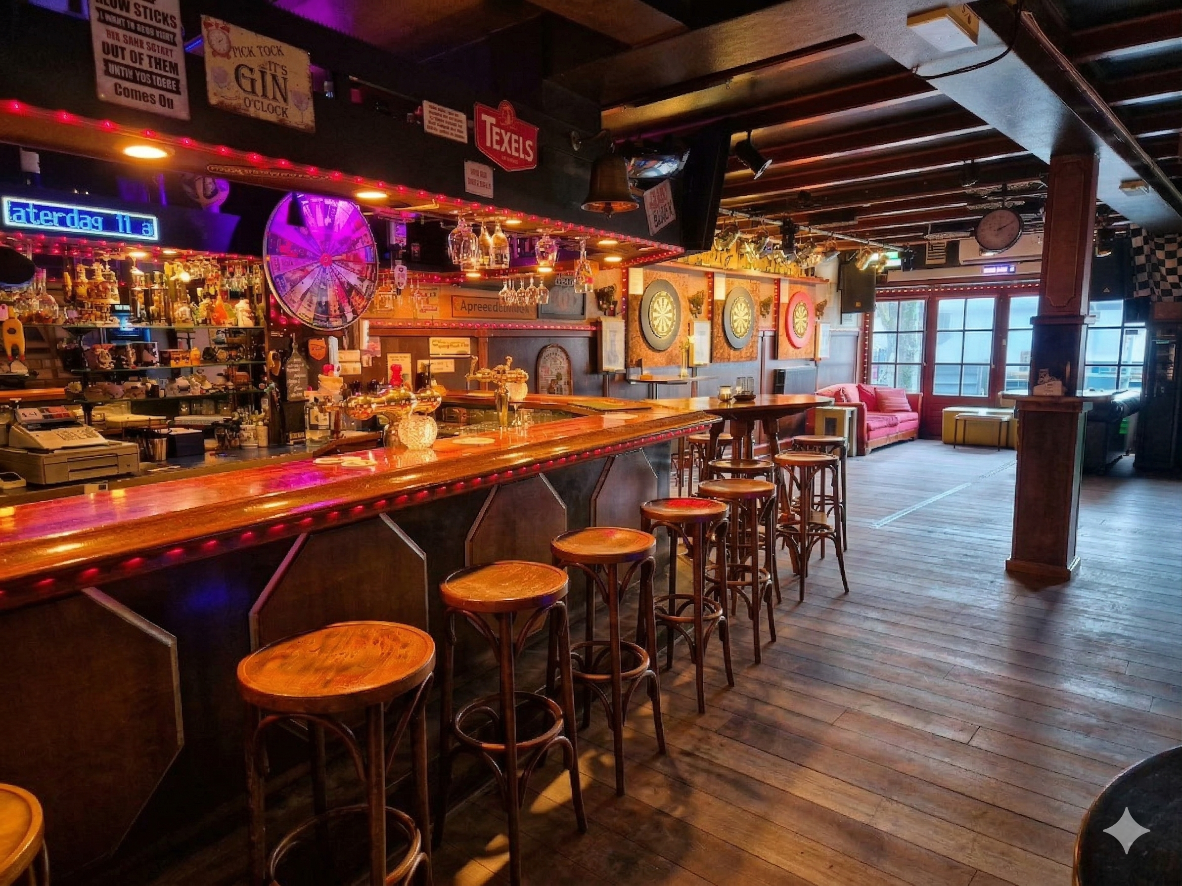 o Authentiek bruin café met herkenbare uitstraling