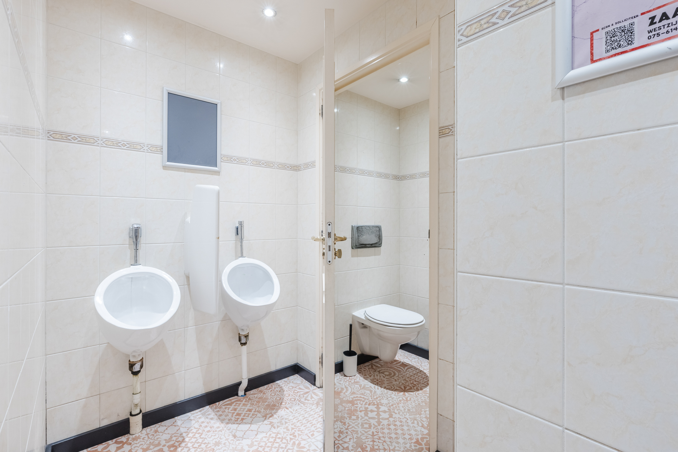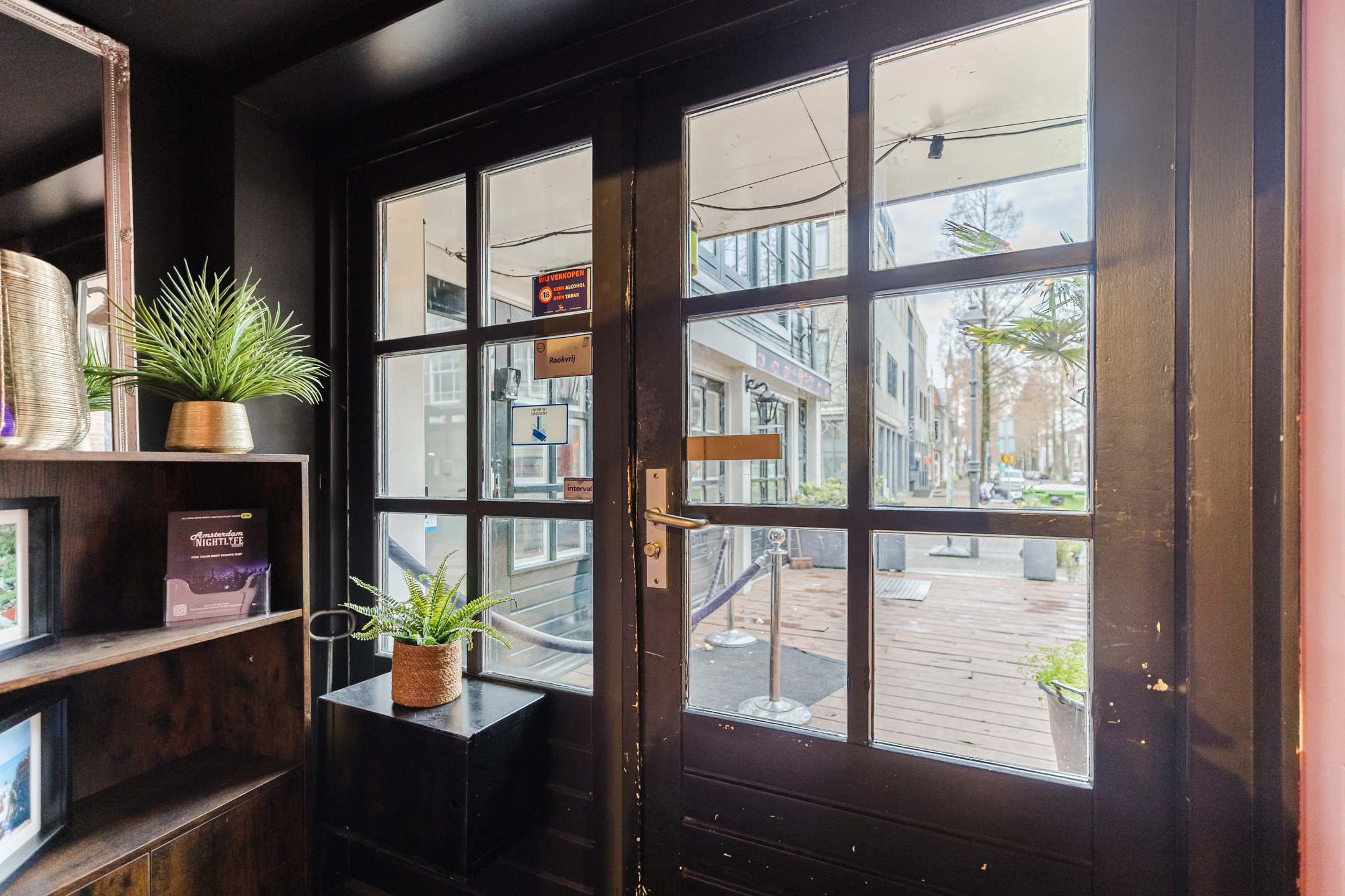Het pand aan Westzijde 50 beschikt over een heldere, functionele indeling die geschikt is voor diverse commerciële doeleinden. De entree bevindt zich direct aan de Westzijde en biedt toegang tot een representatieve ontvangstruimte met grote raampartijen, waardoor de begane grond opvallend licht en uitnodigend is. Op dit moment bevinden zich hier ca. 35 zitplaatsen
